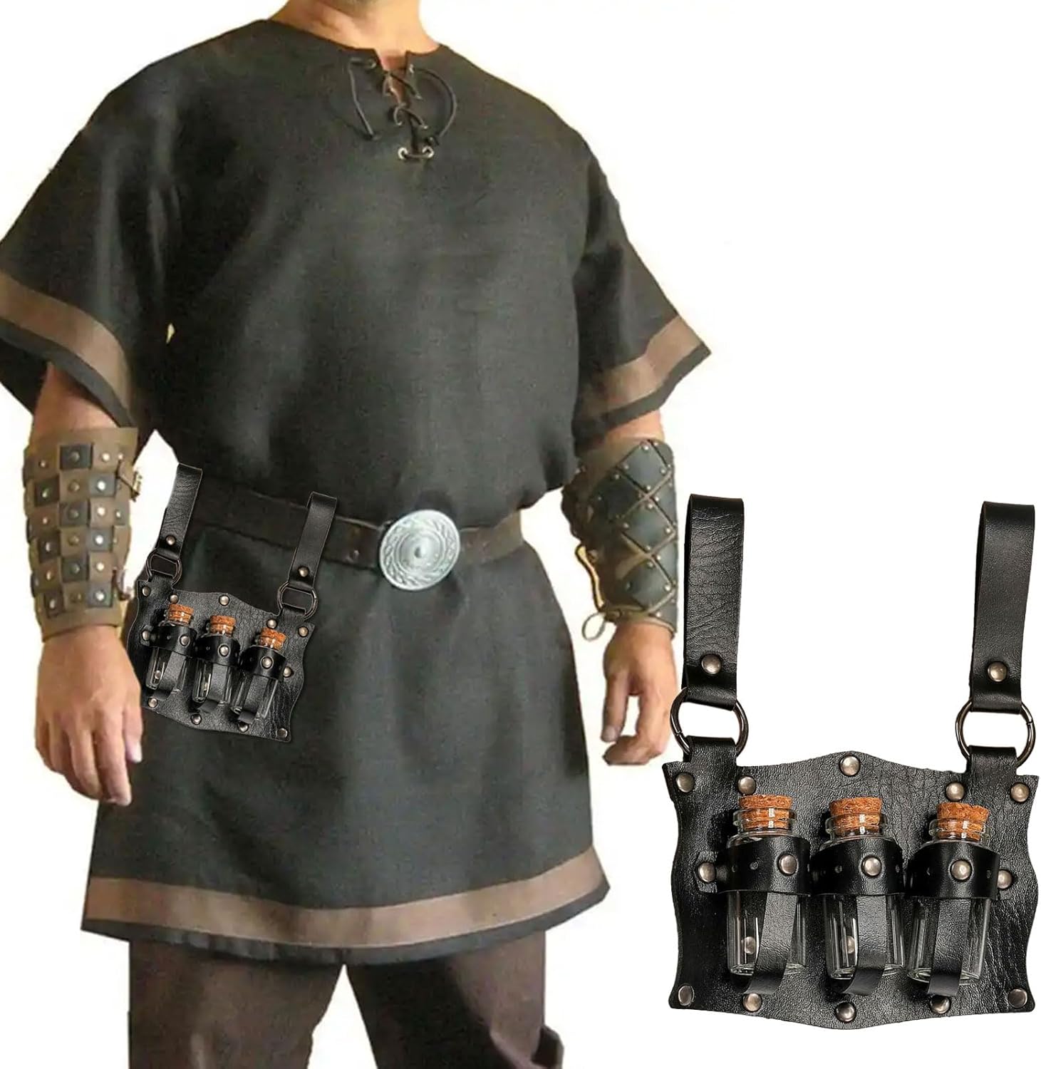 Medieval Renaissances Witch Props Fantasy Wizard Pozione Handmade Cintura Pouch Per Costume Evento Caratteristiche: Bottiglia d'acqua medicinale in ecopelle medievale alchimisti, con una forte atmosfera magica antica, unica aggiunge sensi di mistero. Composto da componenti in ecopelle, una sensazione confortevole e una forte durata. 3 bottiglie d'acqua medicinali in sughero, in grado di contenere diversi tipi di liquidi; squisita fattura artigianale attenzione ai dettagli. Persone che amano la cultura medievale, i giochi di fantasia e le decorazioni da collezione. Come decorazione per la casa posizionata su scaffali e scrivanie. Specifiche tecniche: Colore: tre scelte. Dimensioni: 20 x 13 cm. Componente: pelle PU, vetro. La confezione include: 1 supporto per pozioni medievali. Nota: 1. Si prega di considerare un margine di errore di 1-2 cm dovuto alla misurazione manuale. 2. A causa delle differenze tra i diversi monitor, l'immagine potrebbe non riflettere esattamente il colore reale.