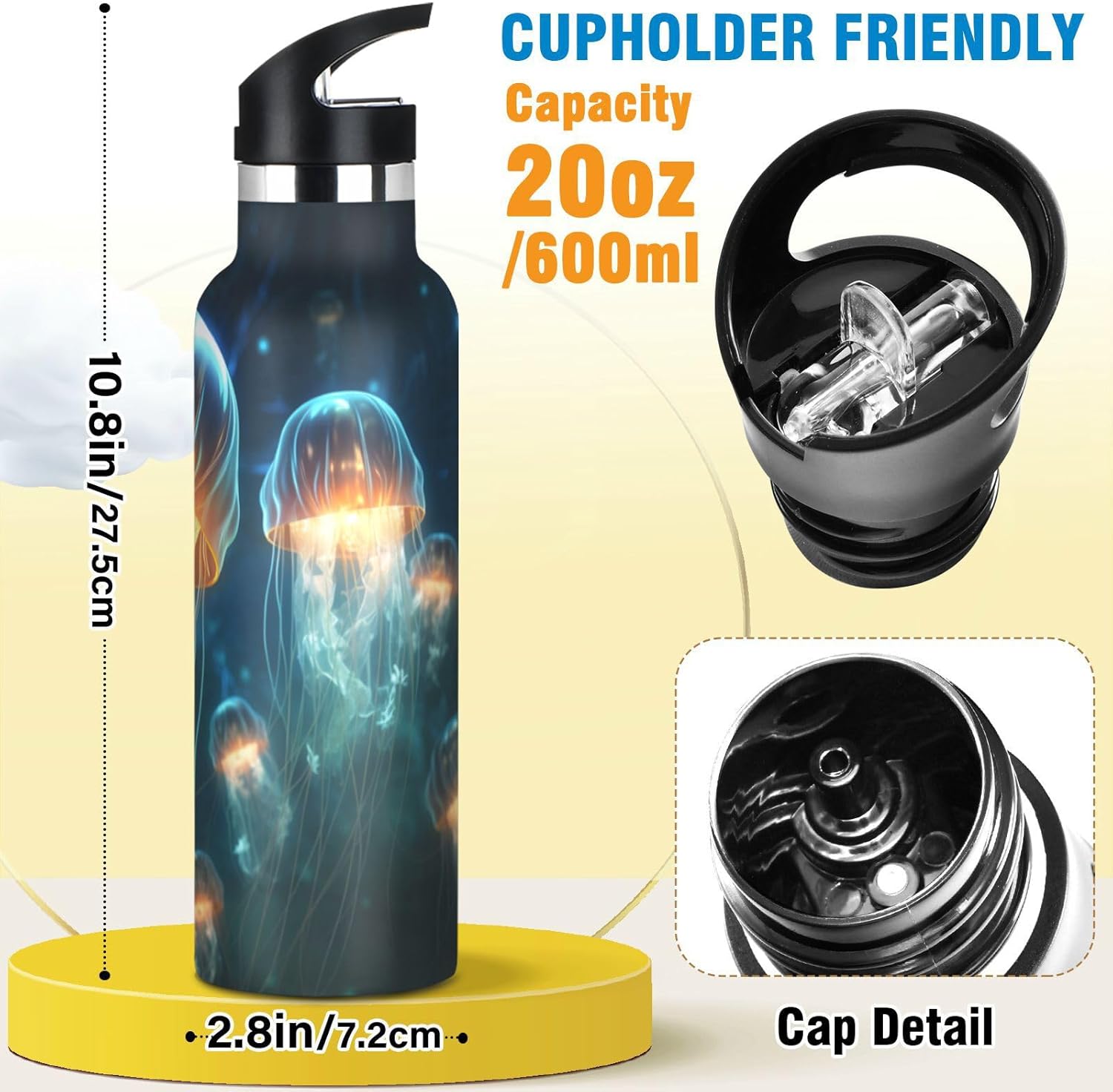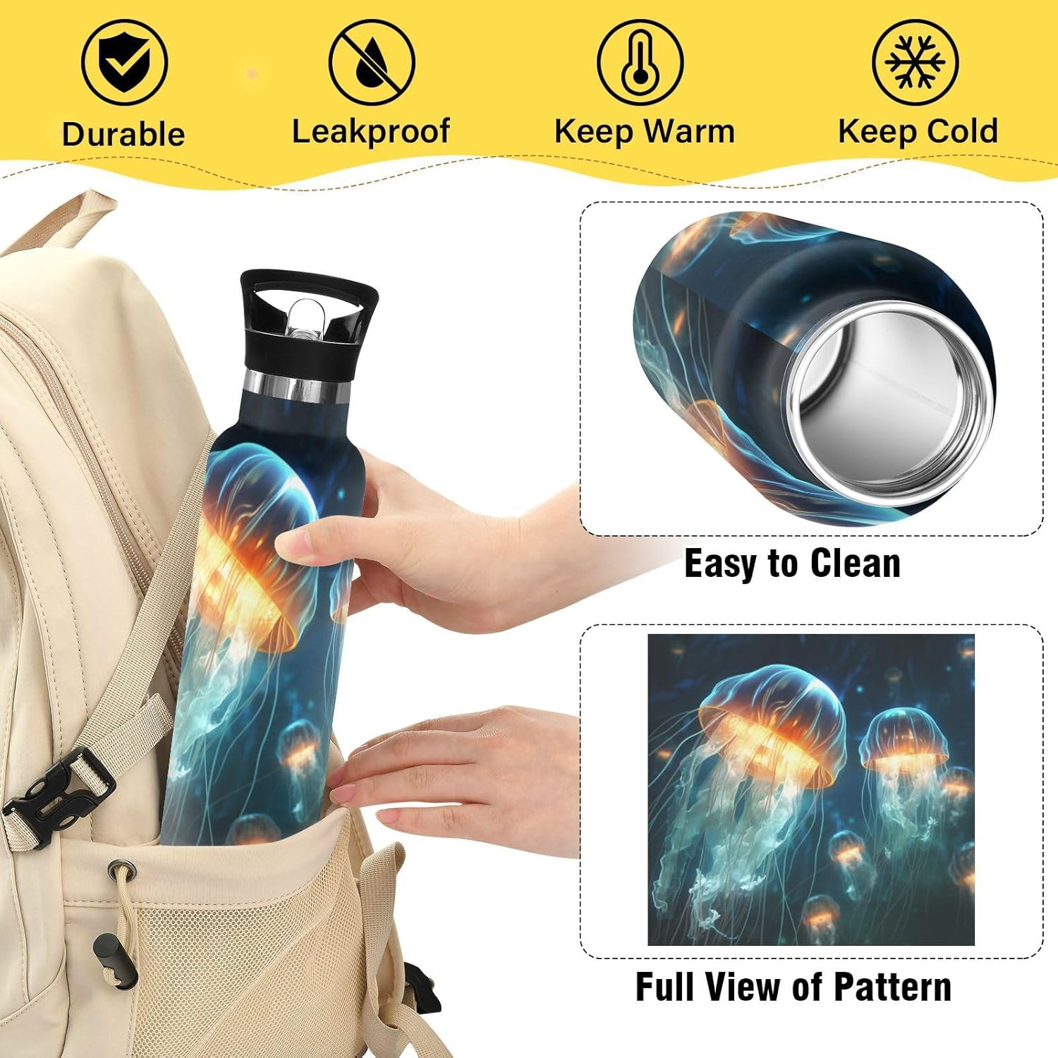 Meduse Space Flying Fire Borraccia per Bambini in Acciaio Inossidabile Termica a Vuoto per Ragazzi e Ragazze (600 ml)