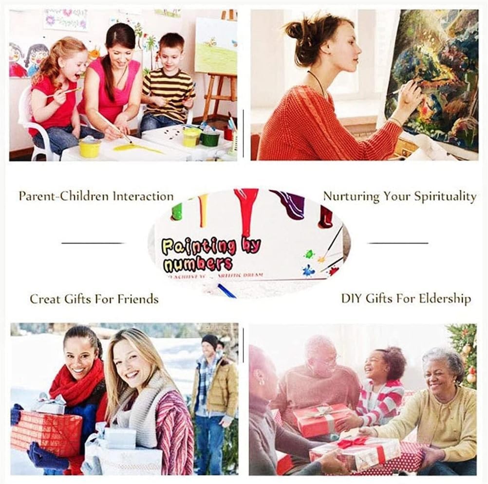 Pennelli di alta qualità in 3 dimensioni Utilizzando vernici acriliche sicure di alta qualità, nessuna miscelazione Dimensioni finite: 40 x 50 cm Istruzioni facili da seguire Tela artistica testurizzata prestampata senza cornice in legno o con cornice