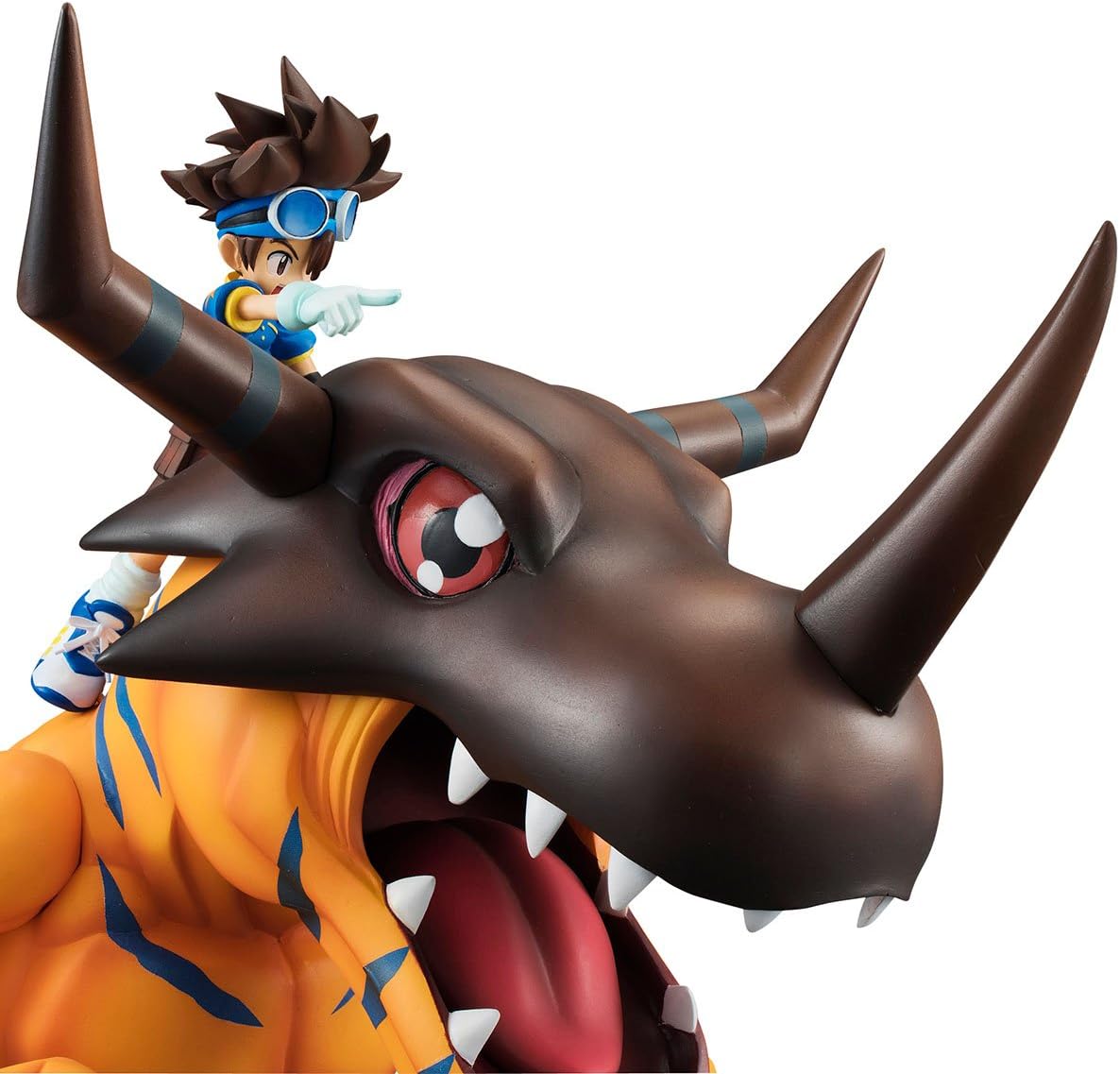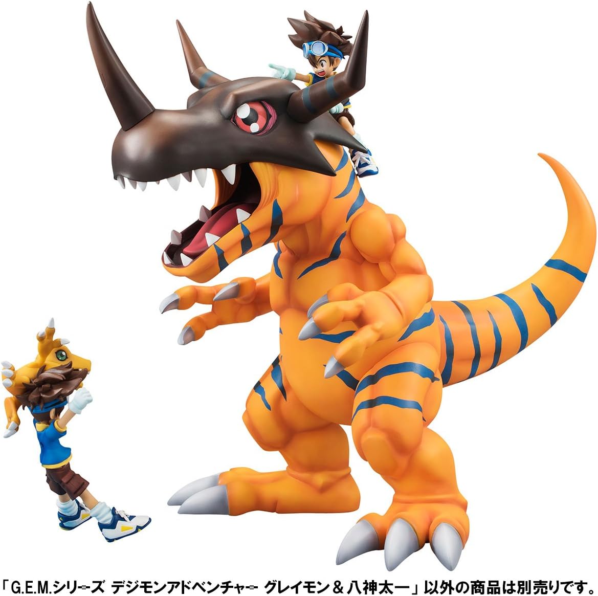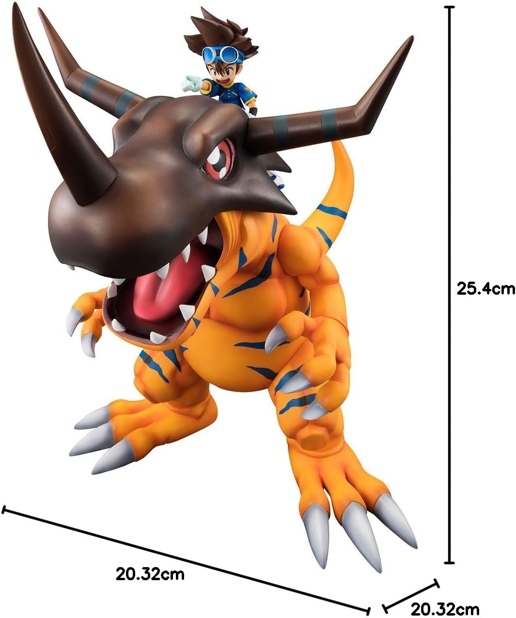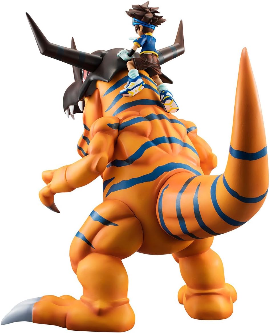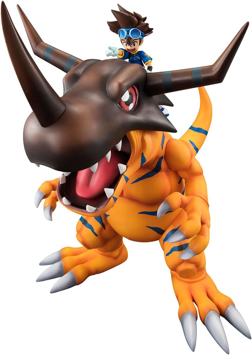 Il 2017 segna il decimo anniversario della serie Digimon e per celebrare abbiamo creato una nuova aggiunta al G.E.M. Serie Digimon - Greymon & Taichi Kamiya! La figura vanta una dimensione impressionante in piedi 9 pollici di altezza con Tai che cavalca in cima alla testa di Greymon mentre punta in avanti verso nuove avventure! di festeggiare i 20 anni di Digimon con l'affidabile digivolved Greymon in piedi al tuo fianco! Figura altamente dettagliata e non articolata Per età 15+