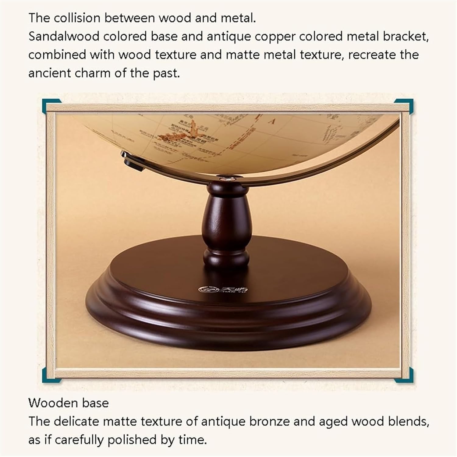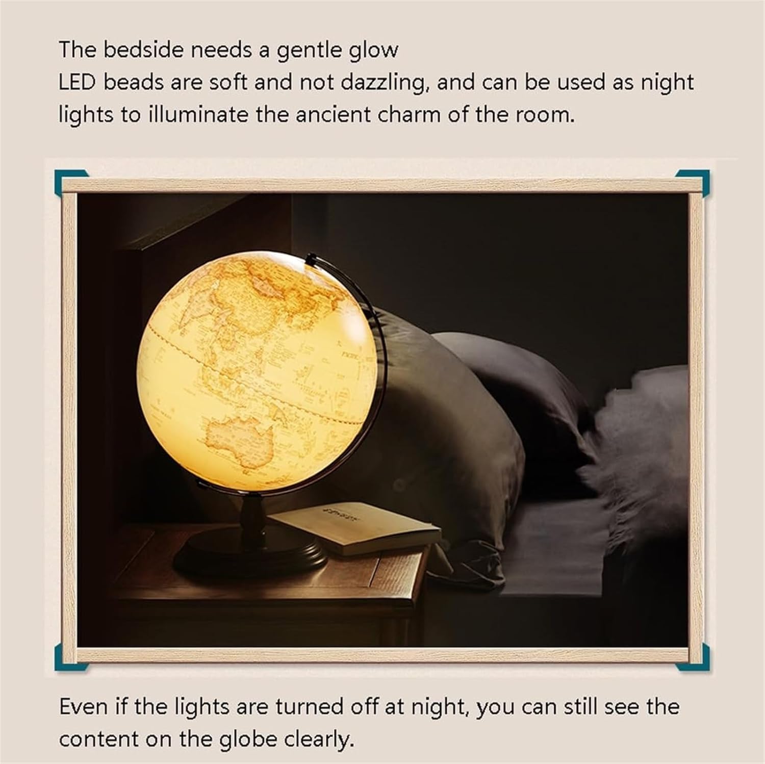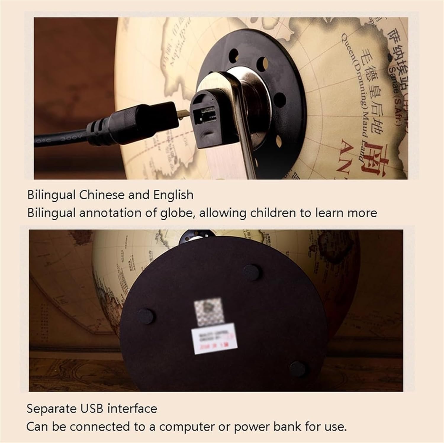 Meiiron Globo retrò Lampada da Notte, Globo geografico Mondiale 2 in 1 Lampada da Tavolo sospesa 3D for Ufficio Globo Luminoso, Base in Legno massello Supporto in Bronzo(Size:30cm)