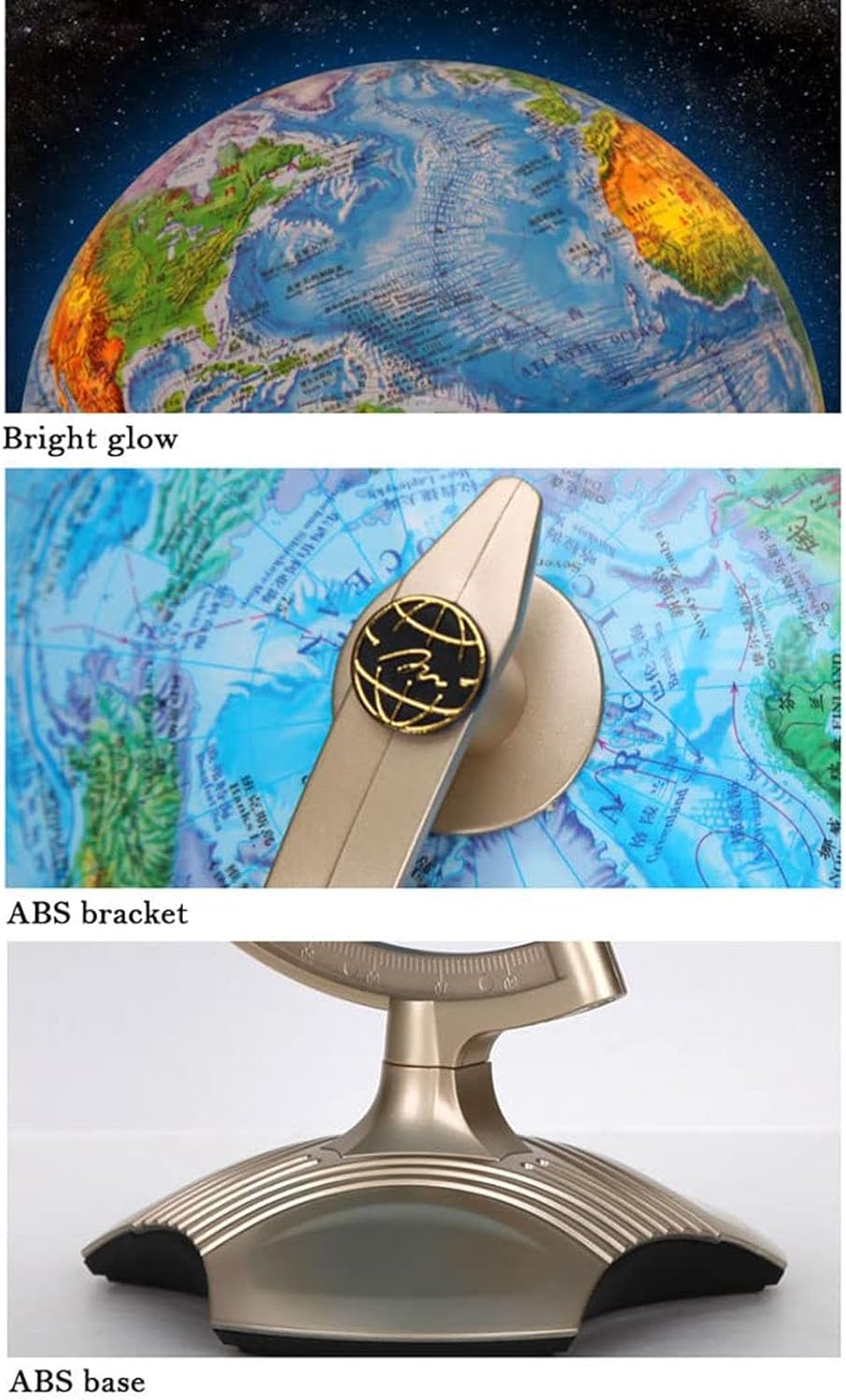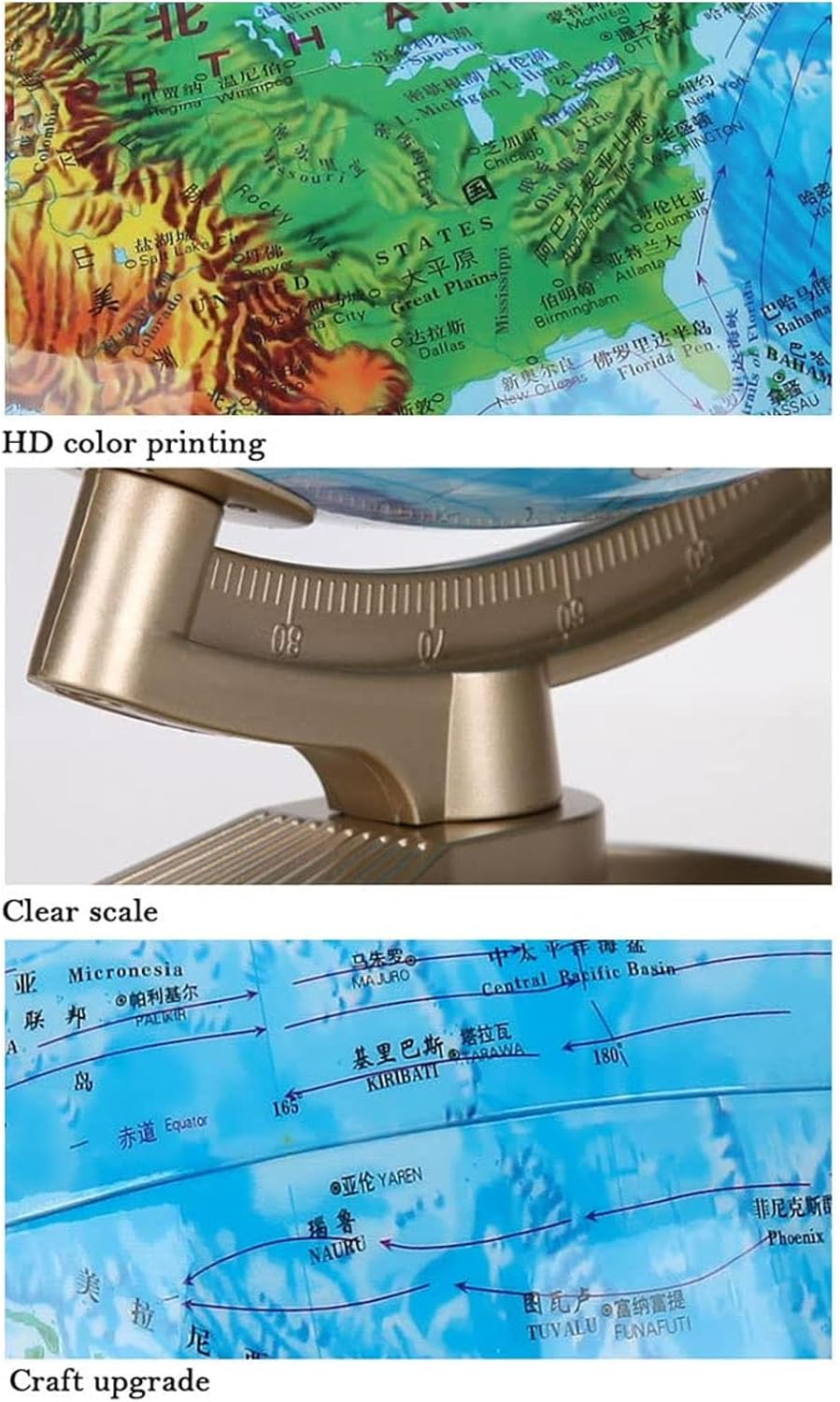 MATERIALE GLOBO: la palla è realizzata in materiale ABS di alta qualità, con stampa Word ad alta definizione in PVC e staffa ABS. STRUMENTI for L'APPRENDIMENTO DELLA GEOGRAFIA: aspetto antico unico. Dotato di confini politici aggiornati e una ricchezza di informazioni su paesi, città, fiumi e dettagli del fondale oceanico, sentiti libero di usarlo ogni giorno e di farvi riferimento in qualsiasi momento. GLOBO DI LUSSO: lavorazione di alta precisione e materiali di alta qualità fanno sì che la bellezza di questo globo non si rifletta solo nella sua superficie. Usalo come ornamento for la casa o l'ufficio o come regalo for coloro a cui piace decorare studi o caffè. Sono tutte buone scelte. CONFRONTO CINESE E INGLESE - utilizzo di etichette cinesi e inglesi, in linea con gli standard internazionali, aumentando l'interesse della lingua, aumentando il numero di città di 5 volte e visualizzandole in modo più completo. REGALO SCEGLI - Mappamondo da tavolo Portando sia ornamento che conoscenza, aiuta a sviluppare conoscenze, abilità linguistiche e cognitive. Regalatelo ai tuoi amici che sono genitori, questo sarà il regalo di festa più necessario.