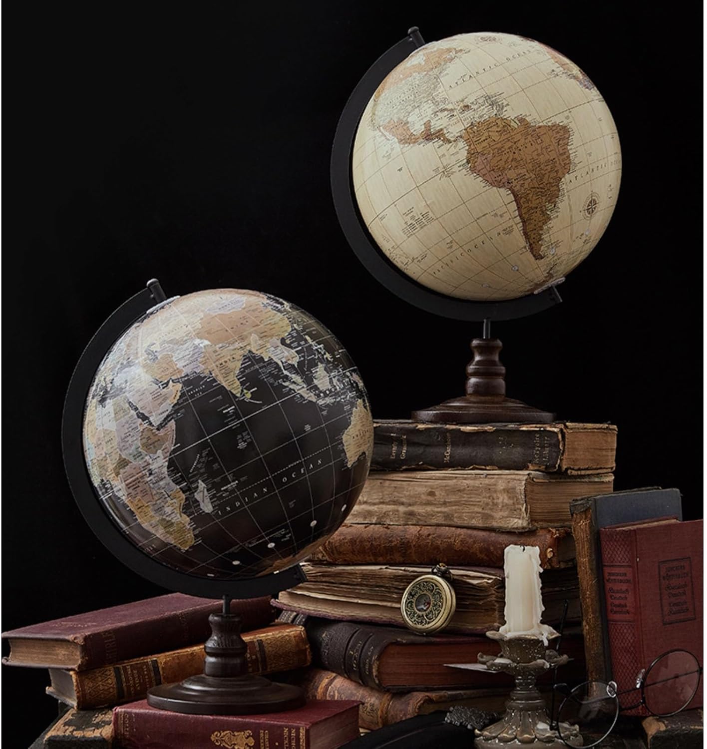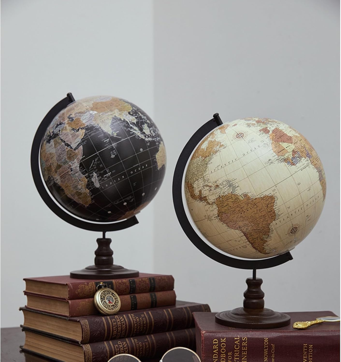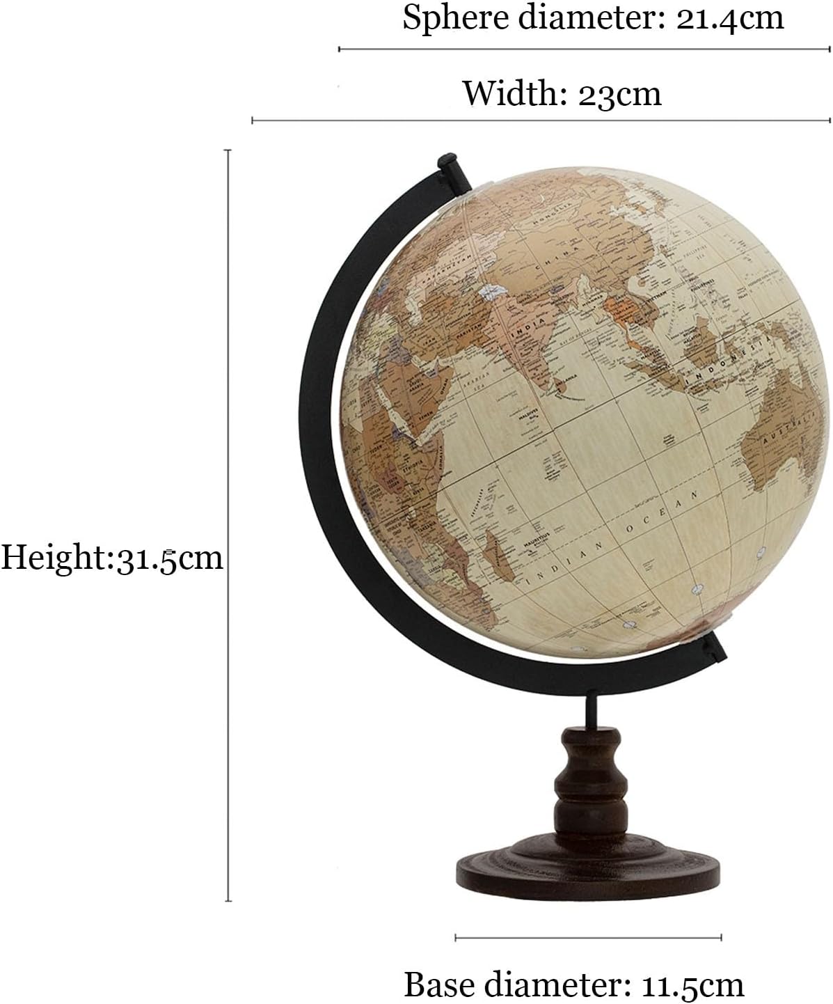 MATERIALE DEL GLOBO: la palla è realizzata in polistirolo ad alto impatto con base in legno, staffa in metallo. I mappamondi da scrivania aggiungono un'aria senza tempo di raffinatezza e curiosità intellettuale a qualsiasi arredamento di casa o ufficio. (Base con crepe, adesivo leggermente fuori posto) STRUMENTI for L'APPRENDIMENTO DELLA GEOGRAFIA: sfera di 23 cm di diametro, 31,5 cm di altezza. Mostra paesi, confini politici, capitali, città principali e altro ancora, sentiti libero di usarlo ogni giorno e di farvi riferimento in qualsiasi momento. GLOBO DI LUSSO: lavorazione di alta precisione e materiali di alta qualità fanno sì che la bellezza di questo globo non si rifletta solo nella sua superficie. Usalo come ornamento for la casa o l'ufficio o come regalo for coloro a cui piace decorare studi o caffè. Sono tutte buone scelte. GLOBO ANTICO MAPPA DEL MONDO-Decorazione Globo da tavolo Globo terrestre rotante Base in legno, stile vintage retrò Adatto a tutte le decorazioni domestiche, soggiorno, ufficio, studio, bagno e comodino, ecc. REGALO SCEGLI - Mappamondo da tavolo Portando sia ornamento che conoscenza, aiuta a sviluppare conoscenze, abilità linguistiche e cognitive. Regalatelo ai tuoi amici che sono genitori, questo sarà il regalo di festa più necessario.