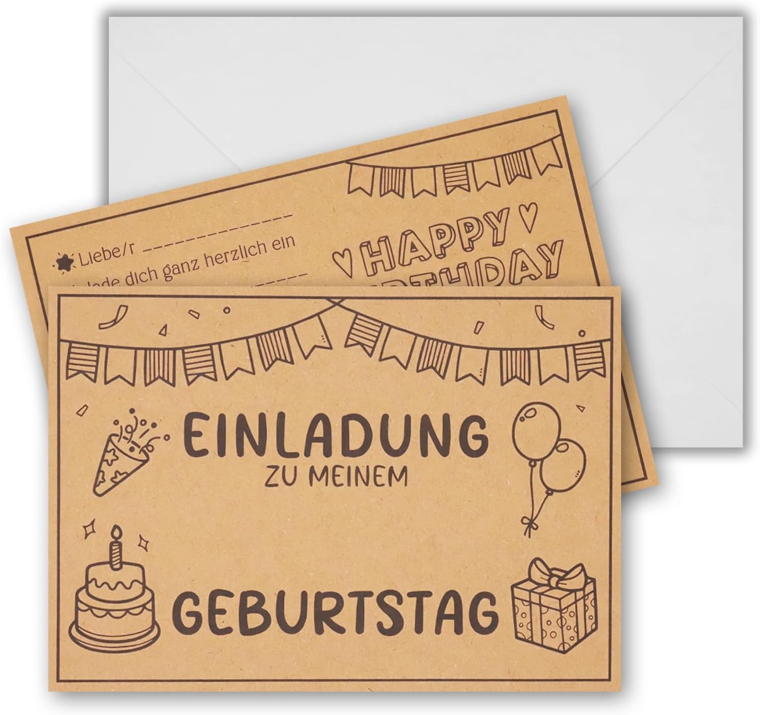🥰 [10 graziosi biglietti d'invito] » 10 biglietti disegnati con cura in formato cartolina DIN A6 con busta abbinata. Scegliete insieme al vostro piccolo tesoro i biglietti d'invito perfetti per il compleanno del vostro bambino tra tanti dolci motivi. ✉️ [Incl. 10 buste di alta qualità] » Per poter inviare direttamente i biglietti d'invito, sono incluse 10 buste in carta kraft di alta qualità. ✍🏼 [Compila tu stesso] » I biglietti d'invito per il compleanno dei bambini possono essere compilati in modo rapido, semplice e personalizzato. ✅ [Alta qualità premium] » I nostri biglietti d'invito per compleanno per bambini realizzati in Germania sono realizzati in cartone per cartoline particolarmente robusto (350 g/m²) e sono stampati in modo nitido. Ogni carta viene sottoposta in anticipo ad un accurato controllo di qualità e viene spedita senza plastica. 💯 [Garanzia di soddisfazione al 100%] » Siamo felici se lo sei. Se qualcosa non va, troveremo insieme una soluzione. La vostra soddisfazione è la nostra massima priorità. Garanzia di rimborso al 100%.