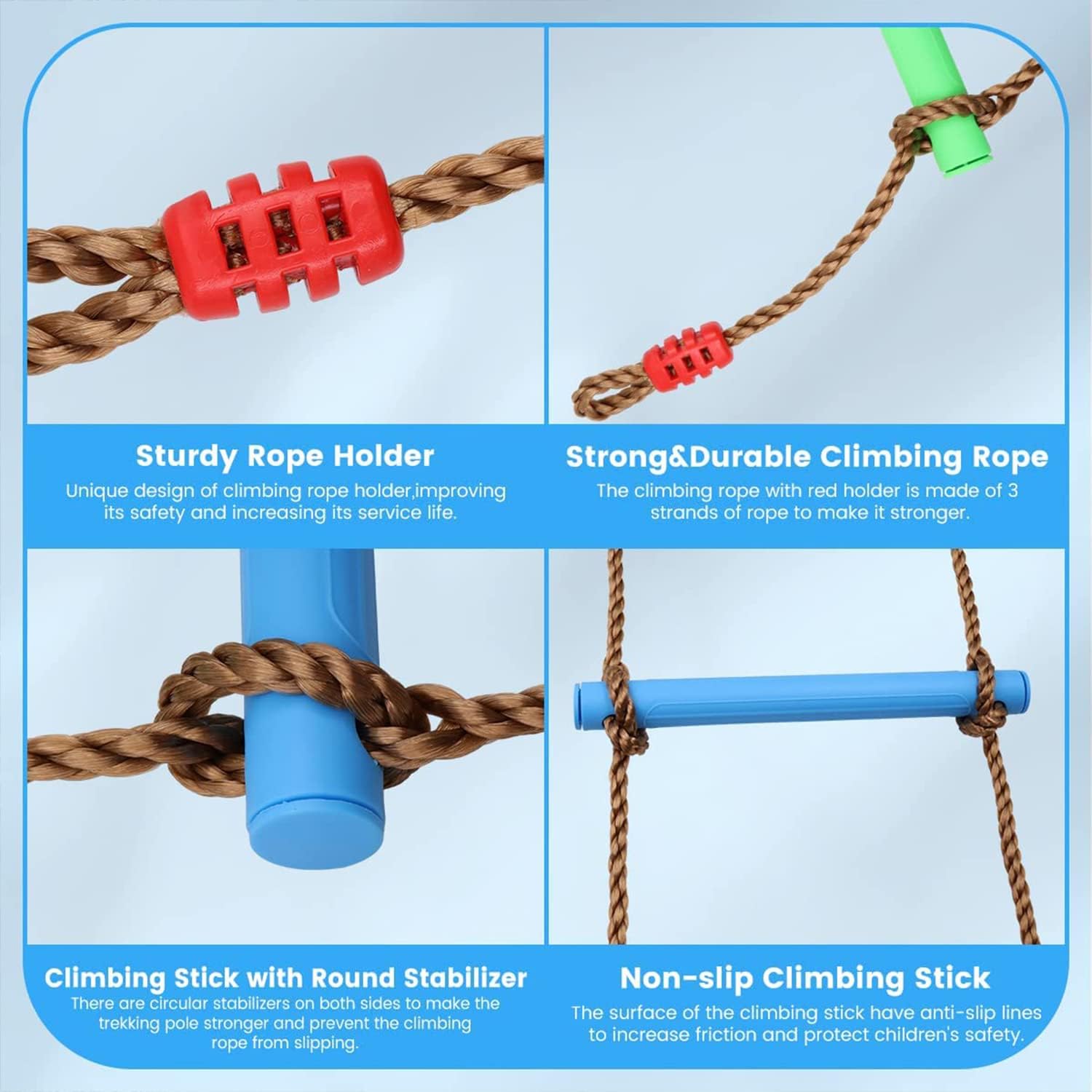【Contenuto della confezione】: le dimensioni della scala di corda per bambini sono di circa 210 x 12 cm, 1 fibbia di sicurezza, 1 corda di sicurezza. Ideale per i bambini che arrampicano. La distanza e l'altezza della scala cambiano costantemente durante la salita, a vantaggio delle diverse sensazioni ed esperienze visive dei bambini. 【Materiali di alta qualità】: la scala di corda per bambini è realizzata in plastica di alta qualità e corda di cotone ecologica. Tutti i materiali sono resistenti. La scala di corda per bambini da esterno può essere utilizzata nella cameretta dei bambini. La superficie in plastica è liscia. 【Giochi e divertimento】: i bambini esercitano i muscoli e la coordinazione. Acquisiscono anche fiducia in se stessi. La scala è sospesa precariamente nell'aria e ci vuole coraggio per salirla... Ma una volta in cima è comunque molto divertente. 【Ampia gamma di applicazioni】: la scala di corda per bambini può essere utilizzata sia all'interno che all'esterno, adatta a casa, giardino, parco giochi, parco, albero, altalena, struttura per arrampicata, set ninja per bambini. 【Idee regalo】: se non sai cosa regalare a tuo figlio prima di Natale o del suo compleanno, considera l'utilizzo di una scala di corda per bambini. I bambini possono migliorare il loro equilibrio, coordinazione e flessibilità divertendosi ad arrampicare.