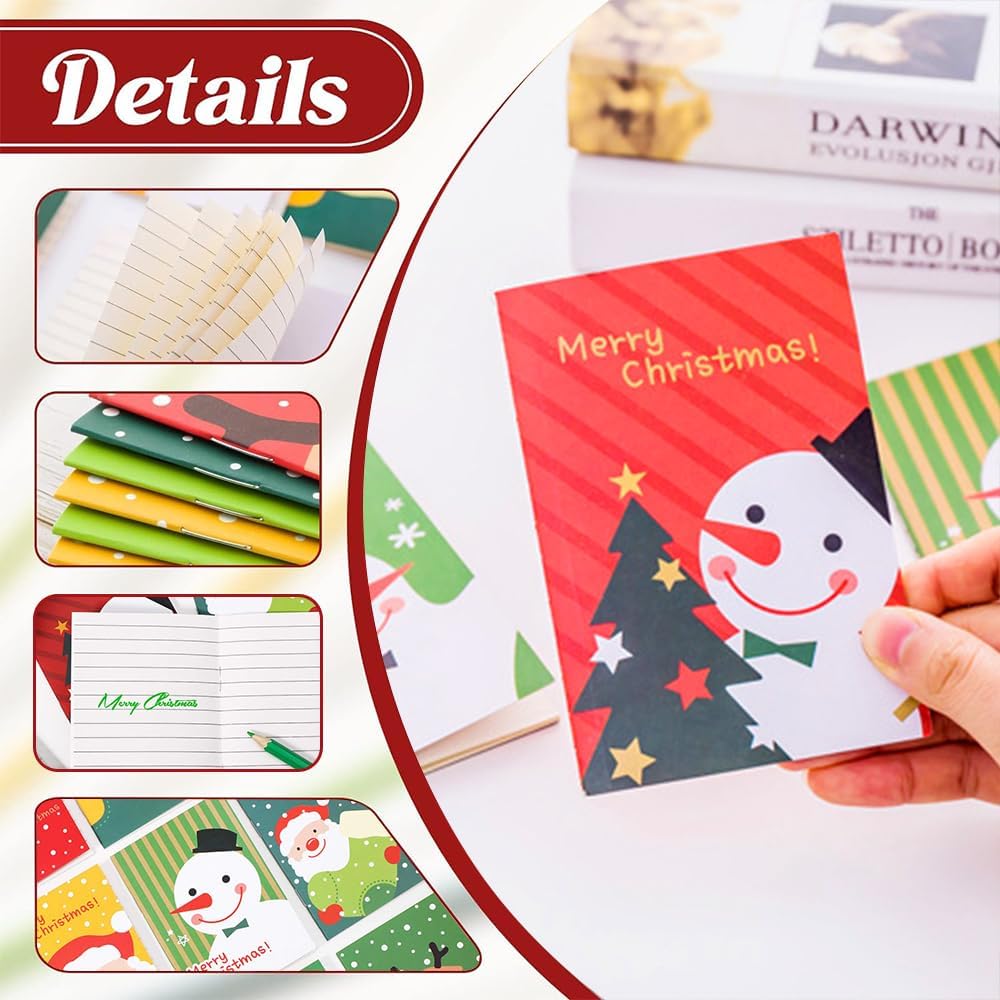 ⛄【Contenuto della confezione】Riceverai 40 mini quaderni natalizi in 16 modelli diversi (il numero di quaderni in ciascun modello è determinato in modo casuale), piccolo taccuino tascabile, quantità sufficiente per soddisfare le diverse esigenze. ⛄【Materiali di alta qualità】I nostri piccoli quaderni natalizi sono realizzati con carta di alta qualità con una superficie morbida per una scrittura fluida e scrivere per ore non danneggerà i tuoi occhiali! ⛄ 【Formato tascabile】 La dimensione del piccolo mini taccuino è 12 * 8,5 cm, mini foglietti adesivi natalizi perfetti per la tua borsetta, zaino o borsa a tracolla, comodi da trasportare, che ti consentono di prendere appunti sempre e ovunque! ⛄ 【Deliziosi motivi natalizi】 Il taccuino natalizio utilizza classici motivi natalizi: Babbo Natale, pupazzo di neve, albero di Natale, motivi chiari, colori vivaci, motivi a fumetti carini e adorabili creano un'atmosfera natalizia festosa e portano gioia nella tua vita quotidiana. ⛄ 【Caratteristiche festive】 Un blocco note natalizio con una copertina con un simpatico motivo a cartoni animati. È un ottimo regalo per i bambini a Natale, Capodanno e durante le vacanze. Squisiti regali di Natale, molto adatti come regali promozionali e premi scolastici.
