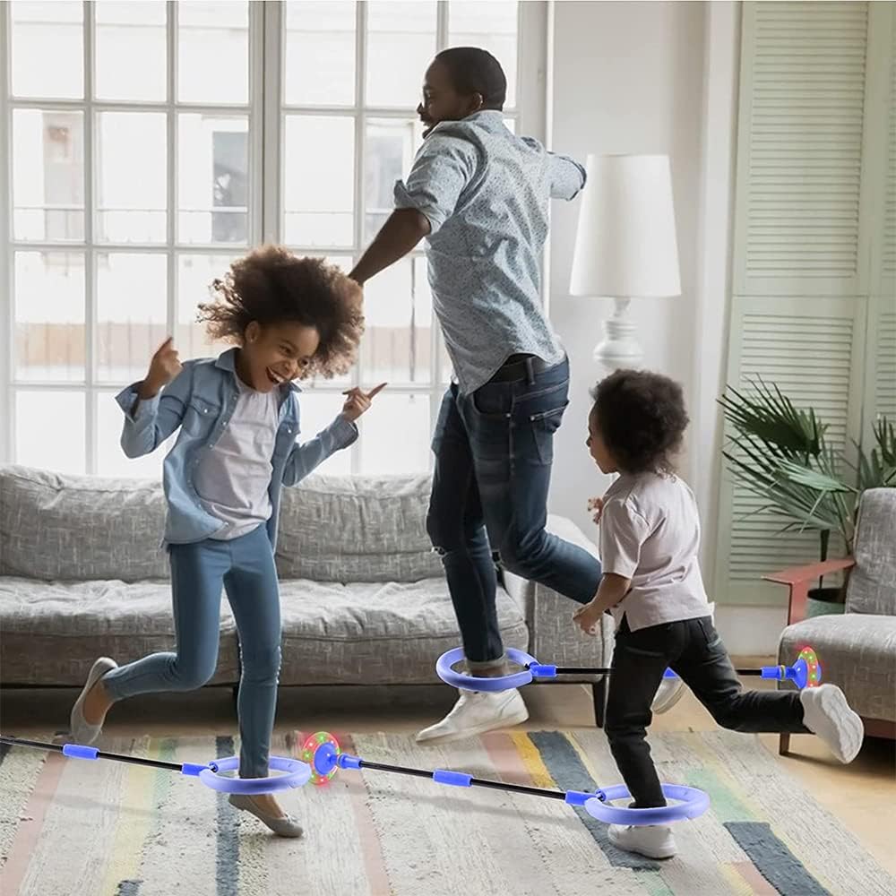 【Combinazione perfetta】: la lunghezza totale è di 62 cm, che può essere piegata a 30 cm. Viene fornito con una copertura protettiva in spugna morbida (ricordarsi di fissarla prima dell'uso per proteggere le caviglie) e una custodia portatile, che è più comoda da trasportare e riporre. Aiuta a migliorare la coordinazione e le capacità motorie del tuo bambino. 【Materiale di sicurezza】: realizzato con materiali ecologici in PP e PVC, è sicuro da usare. Ridurre il rumore ed evitare danni al pavimento. Consigliato per bambini dai 3 anni in su. (materiale ecologico, riutilizzabile) 【LED integrato】: Flash (design induttivo), la rotella di scorrimento si accende e si accende automaticamente, soprattutto di notte. Gli adulti possono anche giocare con i bambini. Questo è un gioco molto divertente e salutare per migliorare il rapporto tra te e tuo figlio! 【Utilizzo】: prima posizionare l'anello della coda su un piede e poi ruotarlo in avanti o indietro. Ruotare la barra verso l'altro piede, sollevare l'altro piede e pedalare con entrambi i piedi. Una palla rimbalzante per allenare e giocare che i tuoi bambini adoreranno! 【La scelta migliore per gli sport indoor o outdoor】: saltiamo insieme, questa palla da salto aiuterà i tuoi bambini a rimanere attivi e in salute. È il miglior regalo per bambini, compleanni, Natale, Capodanno.