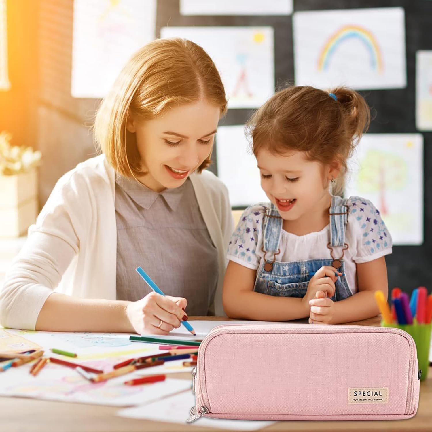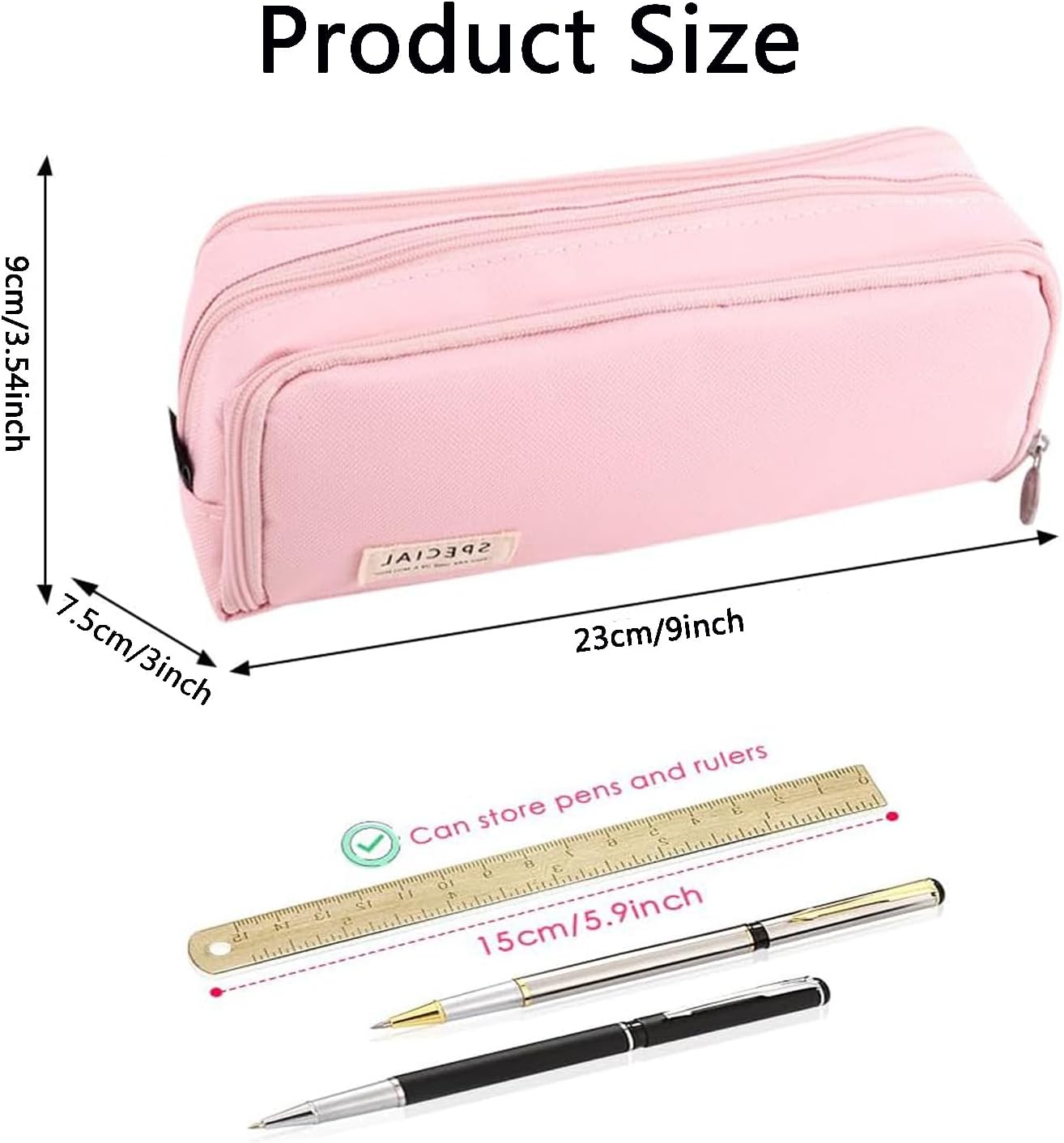 【Grande capacità】Questo astuccio scuola è dotato di 3 scomparti in totale, una grande capacità. Può contenere facilmente penne, matite, pennarelli, temperamatite, gomme, forbici, clip, righelli, calcolatrice, colla, set di geometrie e altri elementi essenziali di classe. L' astuccio grande è perfetto per la casa o la scuola. 【Materiale di alta qualità】L'astuccio è realizzato in tessuto oxford ad alta densità, resistente all'usura, durevole, allo strappo e lavabile. La cerniera è liscia, le linee sono squisite e la grande carta da tirare è più comoda da impugnare, le cerniere robuste e l'ampio angolo delle cerniere assicurano una protezione aperta / chiusa e stretta. 【Design dello scomparto】L'astuccio adotta un design a scomparti che può separare e organizzare diversi oggetti, permettendoti di visualizzare rapidamente tutto all'interno e trovare esattamente ciò di cui hai bisogno, e memorizzarlo in categorie, mantenendolo pulito e ordinato. La tasca frontale ha 8 scomparti elastici per penne per ospitare facilmente le penne più comunemente usate. Il piccolo scomparto nella tasca posteriore può essere utilizzato per riporre piccoli oggetti come carte e foglietti adesivi. 【Dimensioni Perfette】Dimensioni 23 x 9 x 7,5 cm/9 x 3,54 x 3 pollici, le dimensioni ridotte non occupano troppo spazio ed sono facili da riporre; l'astuccio può utilizzare efficacemente tutte le strutture per riporre comodamente articoli di cancelleria per studio, ufficio, pittura, ecc., molto adatti per trasportare articoli di cancelleria o piccoli oggetti da lavoro. 【Ampiamente usato】Questo astuccio scuola ragazze può adattarsi a molteplici esigenze pratiche per persone diverse, una custodia per sacchetti di matita e un organizzatore di cancelleria per studenti scolastici, un portapenne per articoli da ufficio, una borsa per il trucco adatta a cosmetici e articoli da toeletta. Anche un regalo ideale per la laurea, i compleanni, il rientro a scuola e celebrazioni varie!