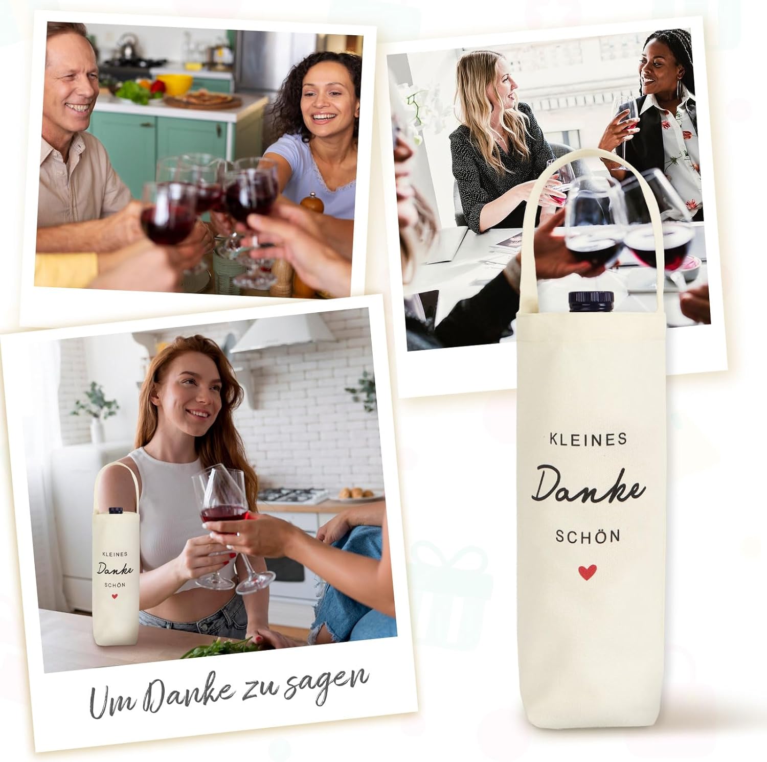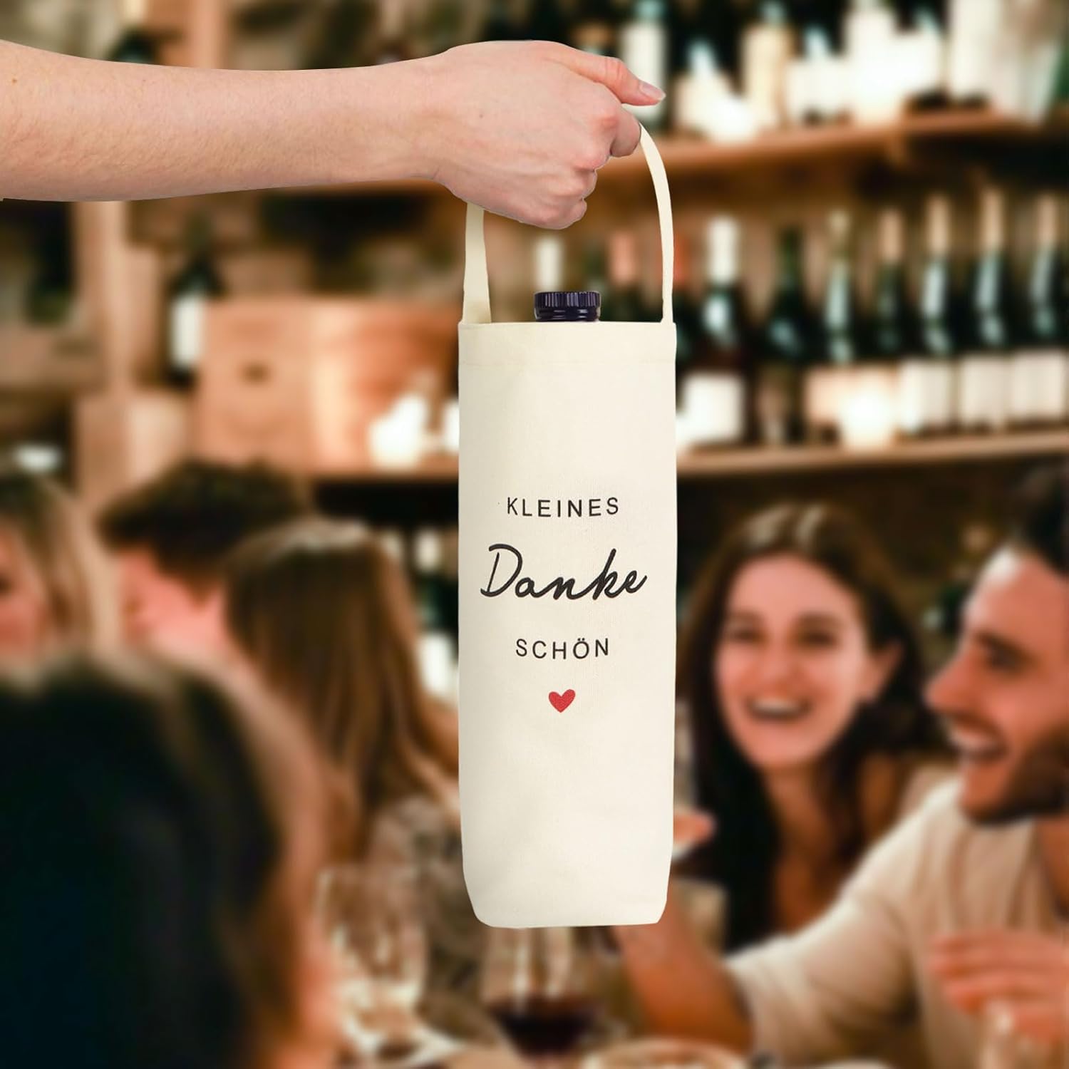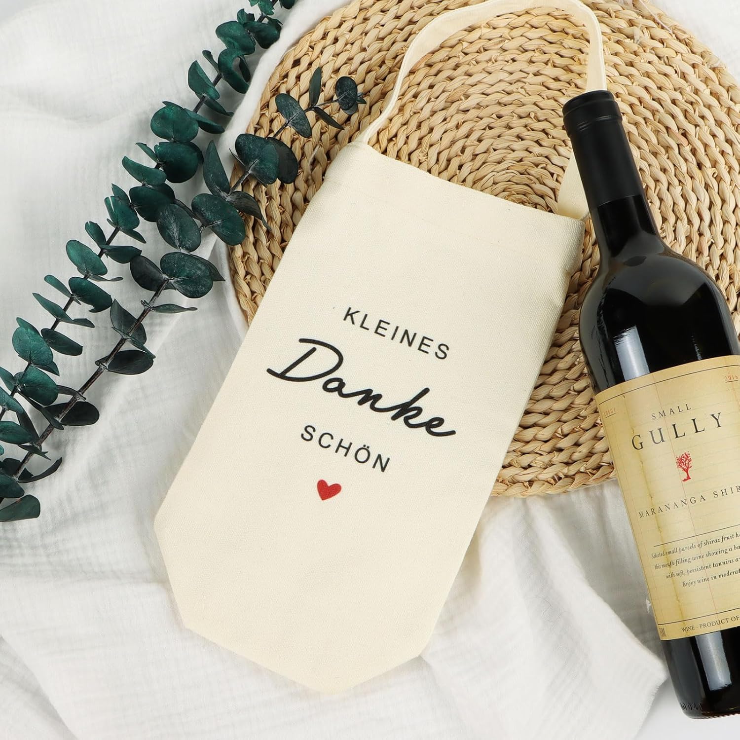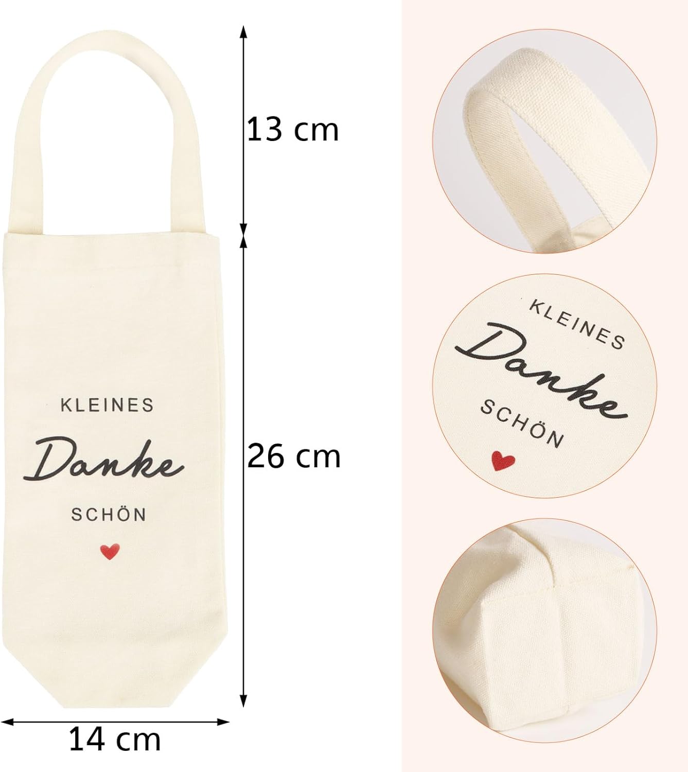 Il pacchetto include: Borsa portatile di ringraziamento da 1 pezzo per bottiglia di vino come piccoli regali Materiale di imballaggio: Questa borsa è realizzata in tessuto di tela, facile da trasportare, riutilizzabile e durevole, rimane resistente al colore e bella dopo un uso frequente Dimensioni: La dimensione della borsa è 26x14x8 cm, che è molto adatta per il trasporto, comoda per i viaggi e l'uso quotidiano. Offre abbastanza spazio per trasportare vino o champagne Multifunzionale: perfetta come borsa regalo o borsa per vino o per riporre alcune delle tue cose Occasione: che sia un piccolo ringraziamento, compleanno, Natale, matrimonio o come un bel regalo - questa borsa rende ogni bottiglia un regalo speciale Momenti speciali: questa elegante borsa per vino è il compagno perfetto quando sei invitato a cena con amici, colleghi o il tuo migliore amico con una bottiglia di vino. Ogni volta che la borsa viene utilizzata, ti ricorda il bellissimo momento del tuo apprezzamento