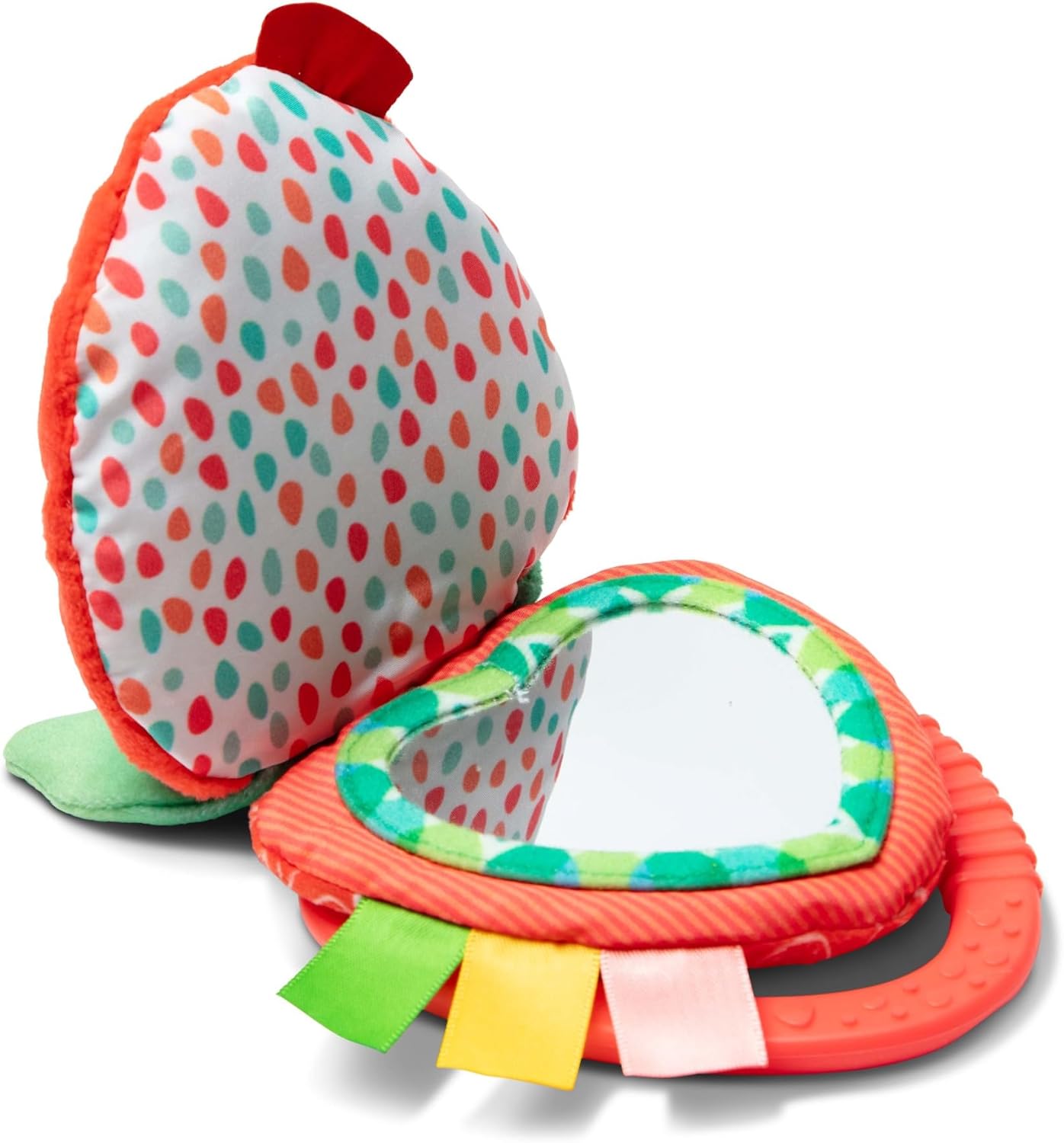 Fissa il giocattolo per bebè a forma di fragola Melissa & Doug dotato di specchio per il gioco del cucù e di anello per la dentizione in silicone a passeggini, borse per pannolini, seggioloni, seggiolini auto e altro ancora per tenere il divertimento a portata di mano Include 3 elementi con diverse finiture a forma di fragola dotati di foglie che frusciano, uno specchio per giocare a cucù, nastri satinati e un anello per la dentizione per uso alimentare I pezzi con diversi materiali aiutano i bambini a sviluppare abilità motorie fini e sensoriali. I giocattoli per bebè e bimbi piccoli di Melissa & Doug ispirano momenti di meraviglia e scoperta. Diversi personaggi adorabili e una varietà di forme e materiali divertenti incoraggiano il gioco esplorativo e lo sviluppo di abilità.