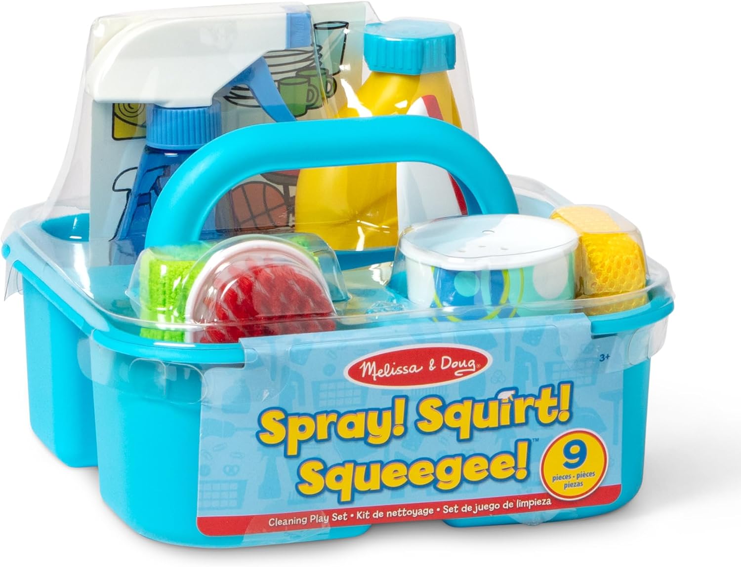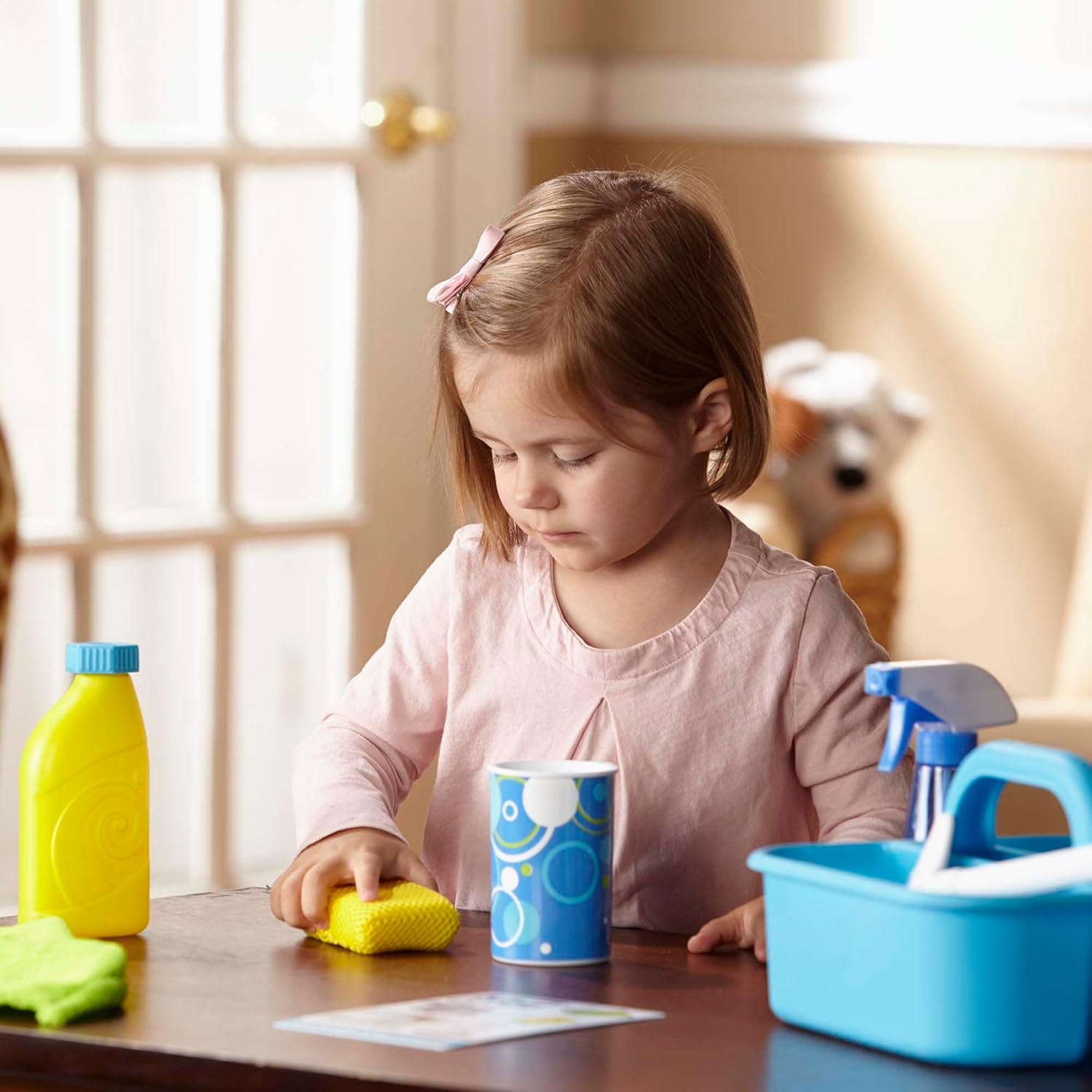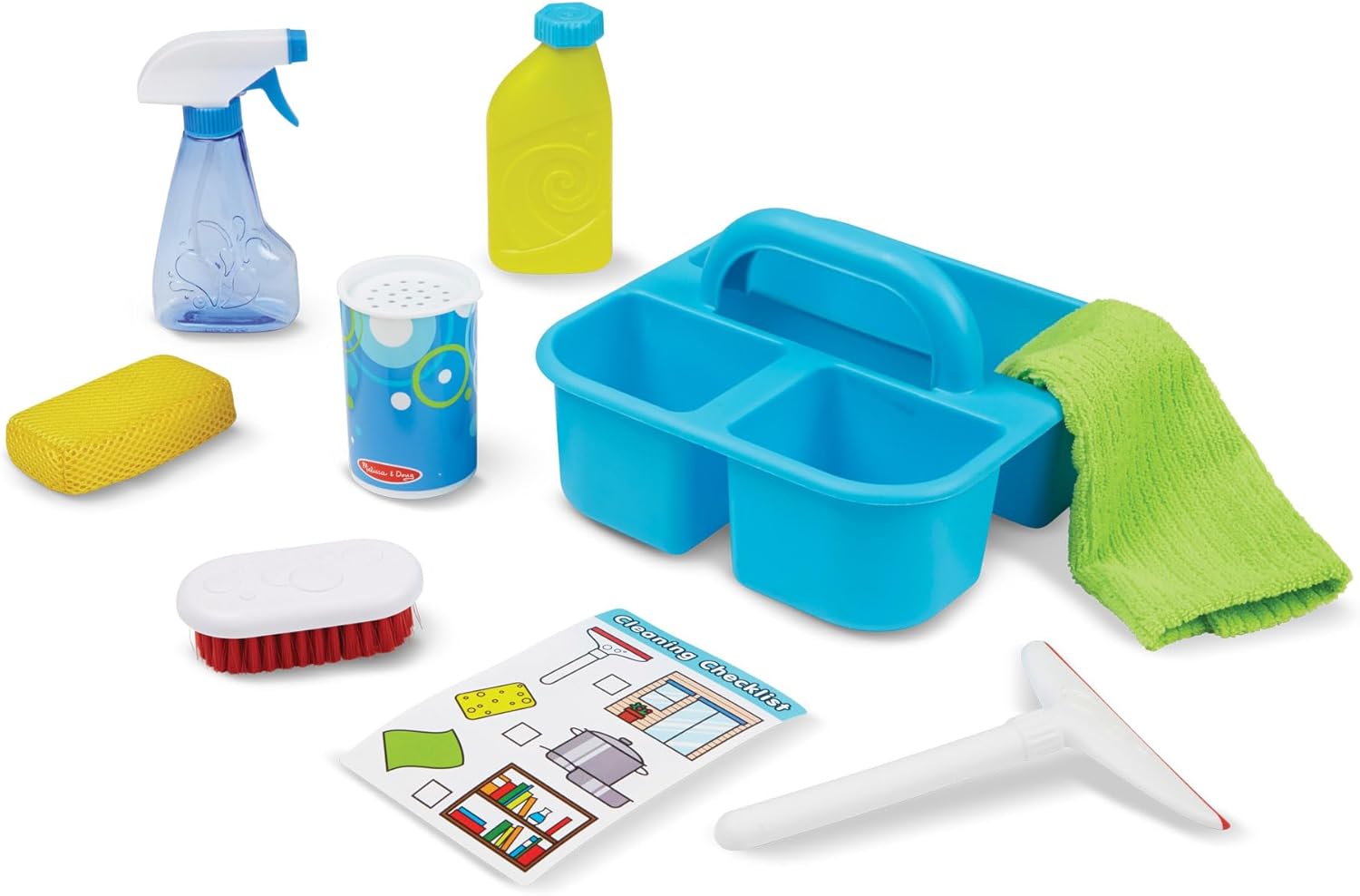 MELISSA AND DOUG - Da oltre 35 anni, Melissa & Doug offre giocattoli accuratamente progettati per offrire ai bambini un'esperienza di gioco stimolante e interattiva, risvegliando la loro immaginazione e creatività. EDUCAZIONE ATTRAVERSO IL GIOCO - I giocattoli Melissa & Doug soddisfano le esigenze del bambino in termini di sviluppo personale ed emotivo, capacità motorie, linguaggio, curiosità e pensiero. Gli accessori non sono destinati all'uso con prodotti per la pulizia reali DETTAGLI REALISTICI - Questo kit viene fornito con 2 flaconi, 1 barattolo di polvere, 1 spatola, 1 panno, 1 spazzola e 1 spugna facili da usare; L'elenco aiuta i bambini a sapere quali materiali utilizzare per pulire oggetti e superfici della casa