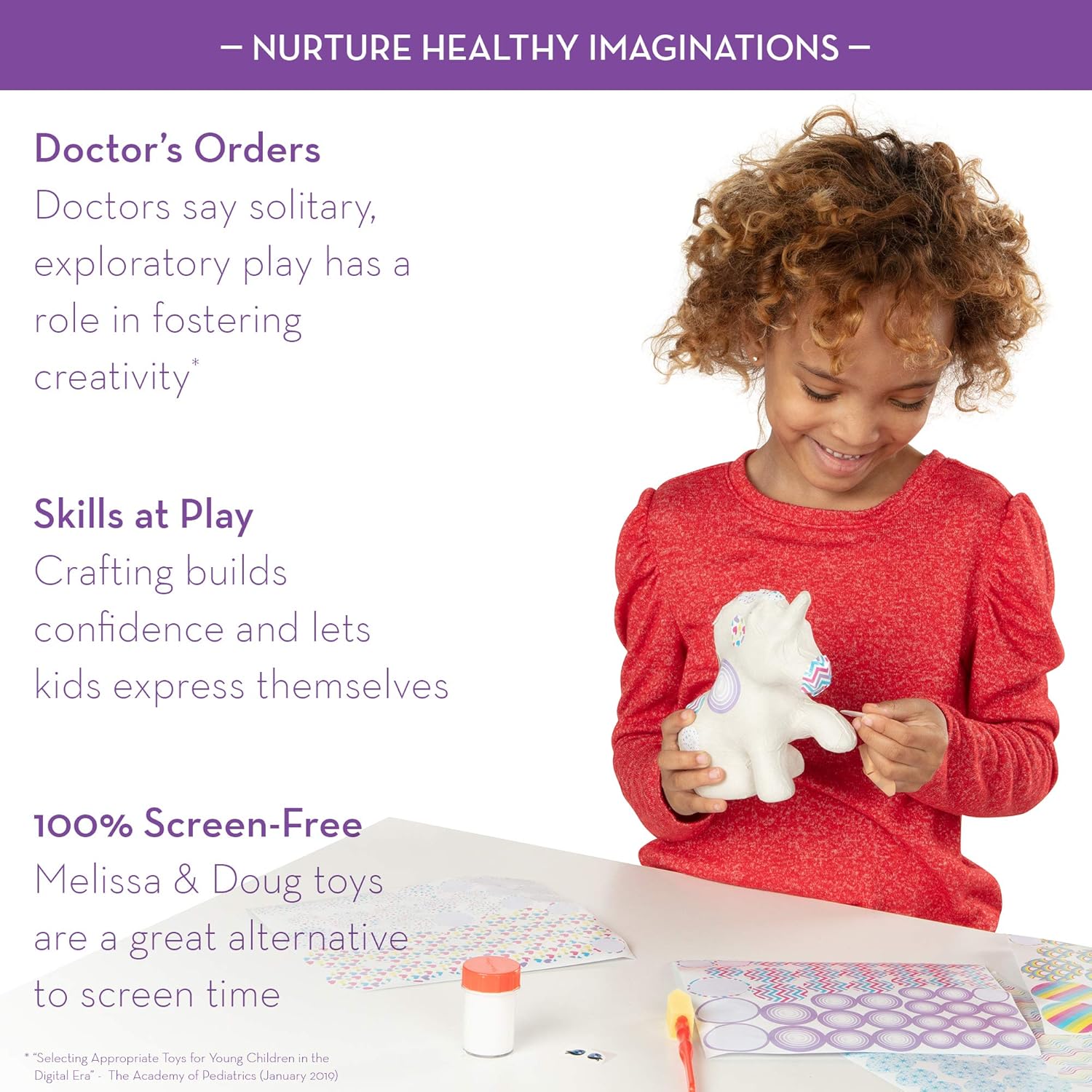 SET COMPLETO PER DECORARE L’UNICORNO: Decorare il perfetto amico in cartapesta non è mai stato così divertente, veloce e semplice! Il set include un unicorno in cartapesta, 4 fogli di adesivi, colla glitterata da découpage e adesivi per gli occhi. TANTISSIMI ADESIVI E MOTIVI DIVERSI: Gli adesivi rotondi sagomati sono di varie dimensioni e presentano otto motivi coordinati. SENZA RISCHIO DI MACCHIE: Include adesivi pretagliati colorati che non sporcano e sono facili da applicare! REGALO IDEALE PER BAMBINI DAI 6 AI 12 ANNI: Questo Kit fai da te per découpage con unicorno è un regalo ideale per artisti in erba dai 6 anni in su. Aggiungi il set Melissa & Doug Kit fai da te “Facile Decoupage” Giraffa per aumentare il divertimento creativo e lontano dagli schermi. "IL NON PLUS ULTRA DEI GIOCHI PER L'INFANZIA": Da più di 30 anni, Melissa & Doug creano prodotti di splendida fattura che stimolano la creatività e l'immaginazione e che la NBC negli Stati Uniti ha definito "il non plus ultra dei giochi per la prima infanzia".