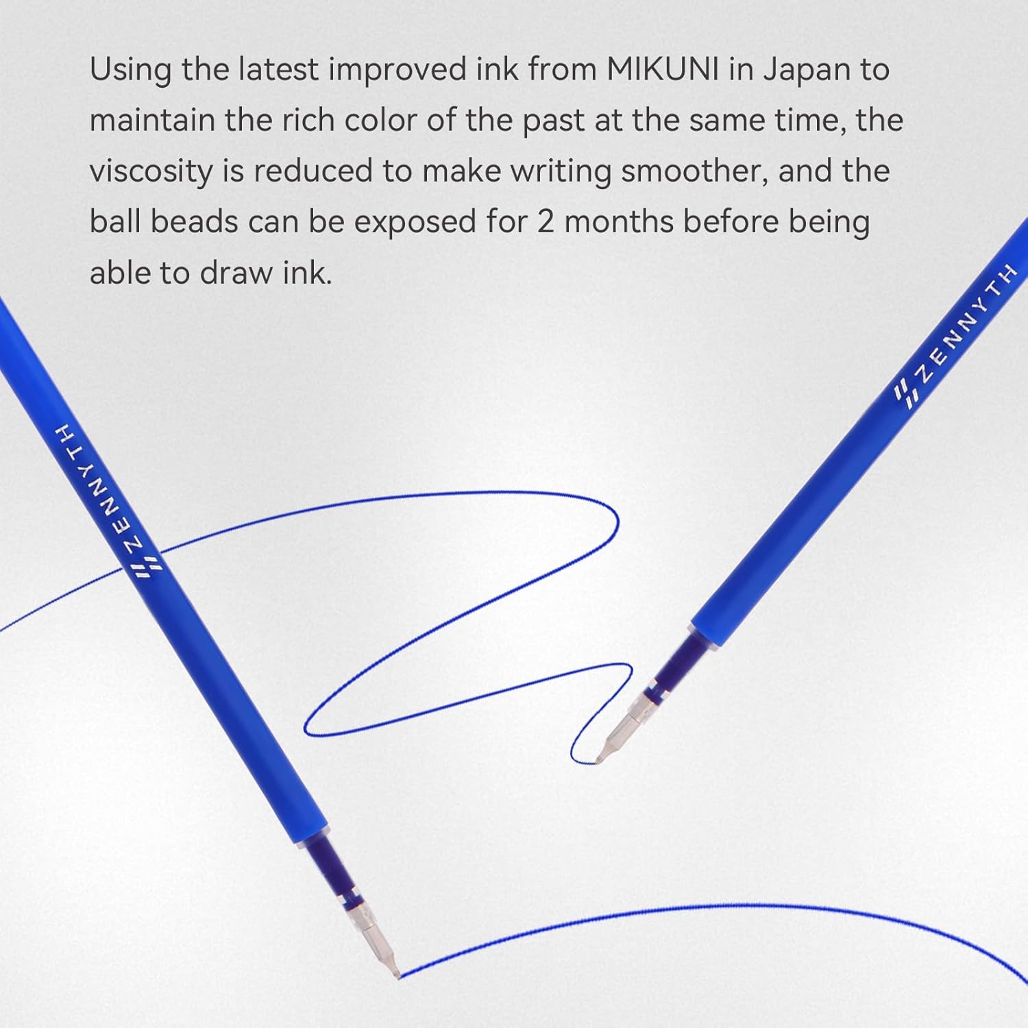 Scrittura fluida: con una punta fine da 0,5 mm e una tecnologia a tre punti di supporto, queste ricariche scivolano senza intoppi sulla pagina senza saltare Inchiostro ad asciugatura rapida: l'inchiostro blu ad asciugatura rapida assicura che la scrittura non sbavi, in modo da poter iniziare immediatamente una nuova attività senza attendere che le pagine si asciughino Ricariche universali: ricariche originali ZENNYTH Piloting per penna a inchiostro gel e ricariche originali ZENNYTH ZS12 Startraveler per penna a inchiostro gel. Dimensioni per adattarsi a penne di molte marche popolari, queste ricariche di inchiostro gel offrono un modo conveniente per mantenere i tuoi strumenti di scrittura preferiti in servizio continuo. Compatibile con Pilot G2, Pentel Energel, Jetstream Uniball Signo Zebra Sarasa ecc, si prega di verificare la lunghezza: circa 110 mm e mantenere la molla della penna Inchiostro di lunga durata: costruito con una grande capacità di inchiostro, ogni ricarica fornisce prestazioni di scrittura affidabili per migliaia di caratteri prima di dover essere sostituito. Utilizzando l'ultimo inchiostro migliorato di MIKUNI in Giappone per mantenere il ricco colore del passato allo stesso tempo, la viscosità è ridotta per rendere la scrittura più fluida e le perline possono essere esposte per 2 mesi prima di poter disegnare inchiostro Punta CS a doppia sfera: realizzata con un pennino in acciaio inossidabile e doppie sfere in carburo di tungsteno, la punta da scrittura è costruita per resistere a un uso intenso senza consumarsi prematuramente. Con uno spessore che è giusto per evitare di volare bianco e raschiare la carta causata da una ricarica sottile della penna, evitando ricariche leggermente spesse che possono influire sulla chiarezza delle note, soddisfare al massimo le esigenze di scrittura e registrare piccoli e bei momenti della vita