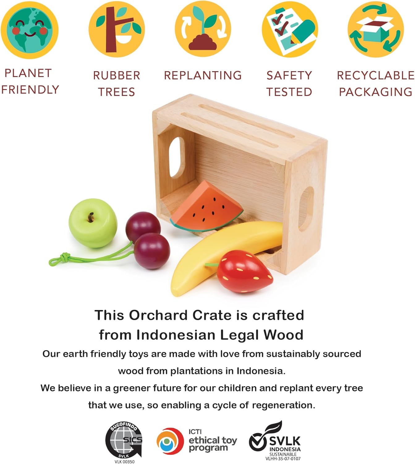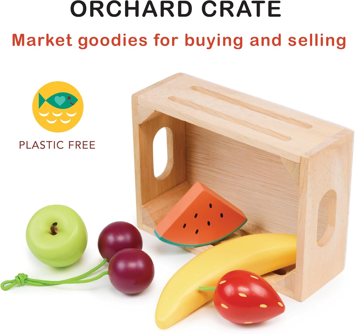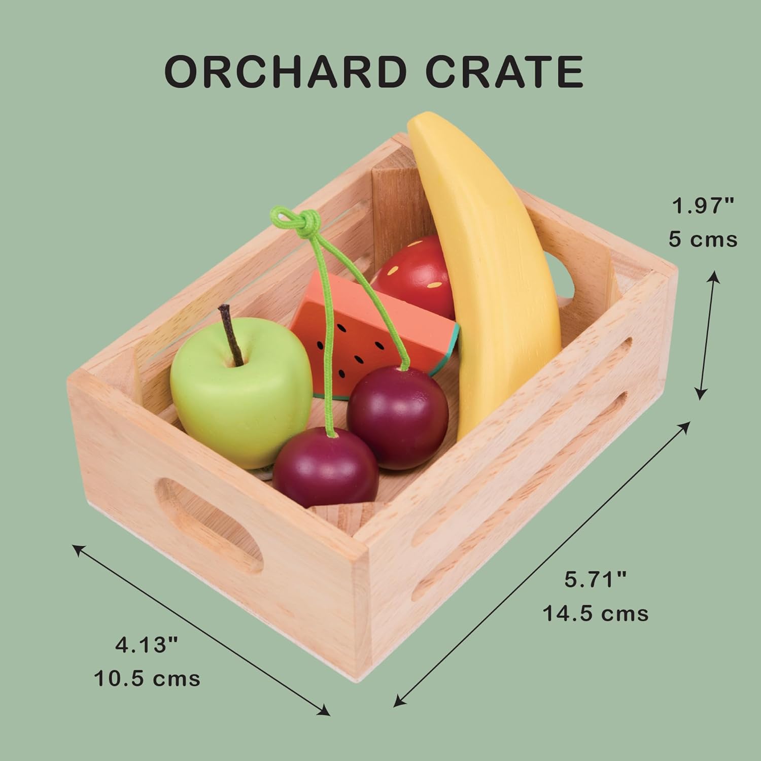 Immergiti in un gioco fantasioso con la nostra cassa del frutteto, un cesto in legno pieno di un delizioso assortimento di frutta, tra cui una banana, una mela, una ciliegia, una fetta di anguria e una fragola. Incoraggia il gioco di finzione e la narrazione mentre i bambini si impegnano in scenari di gioco di ruolo creativi incentrati sulla raccolta della frutta, sullo shopping e su spuntini salutari, promuovendo le abilità sociali e l'immaginazione. Il design realistico e i colori vivaci dei frutti forniscono un'esperienza di gioco coinvolgente e interattiva, stimolando l'esplorazione sensoriale e le capacità motorie. Dimensioni del prodotto: 14,5 x 10,5 x 5 cm. Dimensioni imballo: 11,3 x 5,8 x 15,4 cm. Lascia che il tuo bambino intraprenda avventure fruttate con la cassa del frutteto, promuovendo la creatività, lo sviluppo del linguaggio e l'amore per la frutta fresca e nutriente.