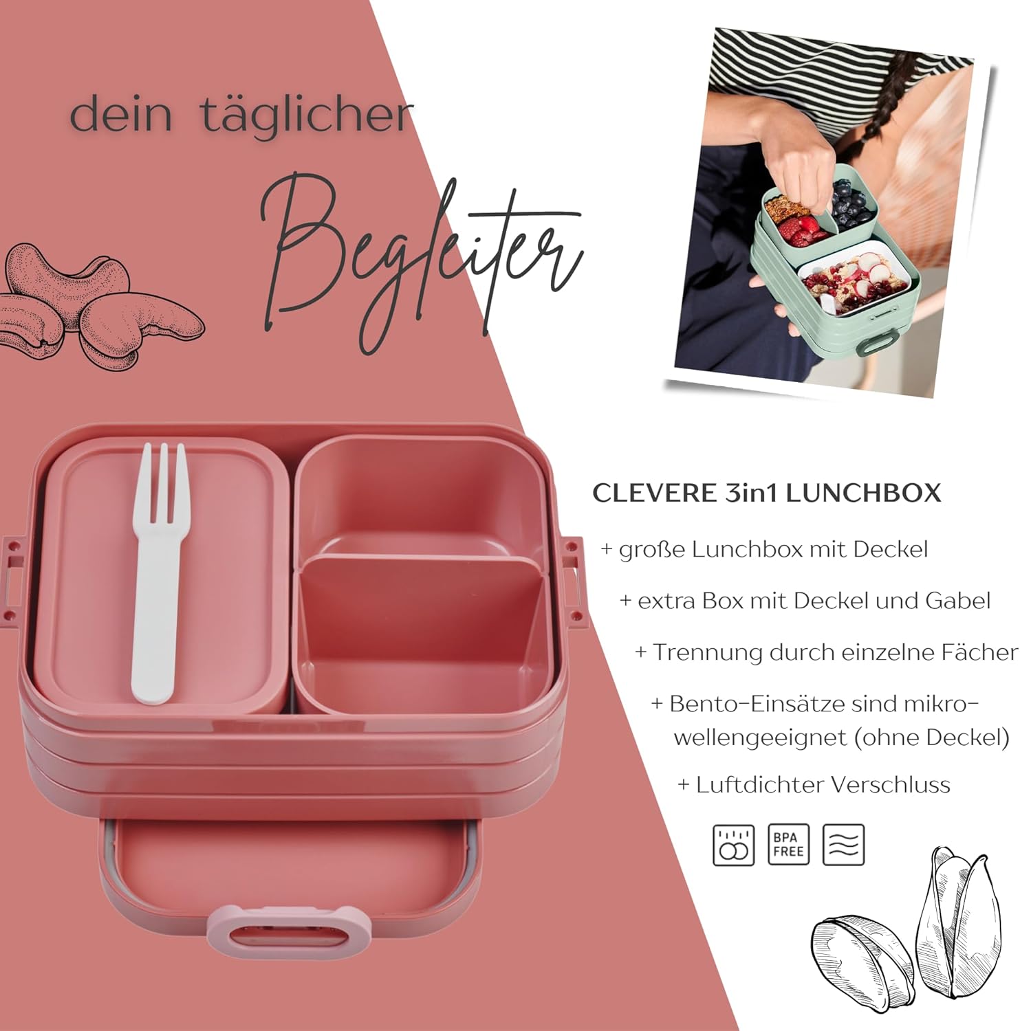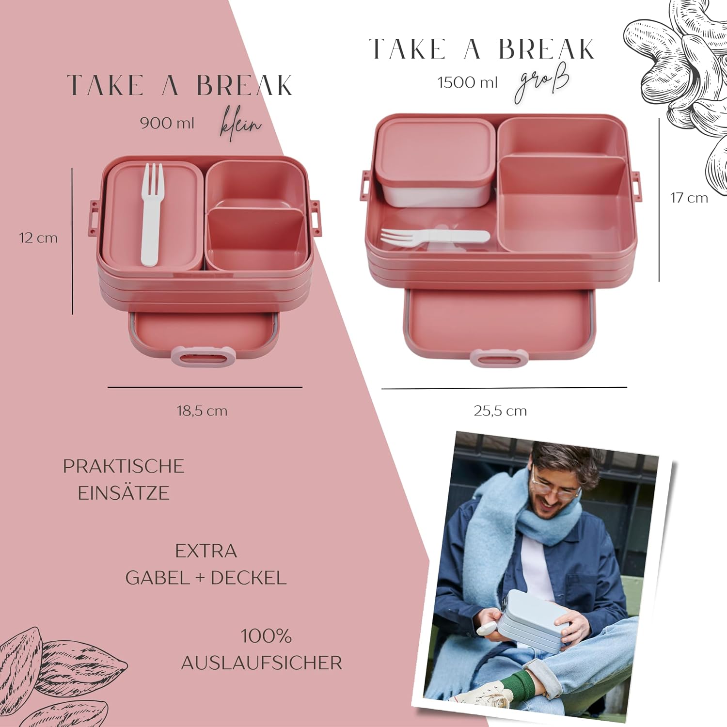 Contenitore per il pranzo personalizzato: Mepal Bento porta pranzo Take a Break con motivo floreale colorato e nome. Clicca sul pulsante giallo "Personalizza ora" e personalizza un vero pezzo unico con il nome desiderato. Design intelligente: contenitore per il pranzo per adulti, adolescenti e bambini con scomparti e inserti Bento con forchetta. Perfetto per porzionare diversi snack. Chiusura facile da aprire. Pratico nella vita di tutti i giorni: perfetto per il lavoro, la scuola, le gite e i viaggi. Il contenitore per il pranzo è a prova di perdite e può quindi essere trasportato in modo ideale nella borsa. Gli inserti bento adatti al microonde consentono di riscaldare i pasti. Il regalo perfetto: sorprendi i tuoi cari con un regalo inconfondibile e personalizzato per ogni occasione, come ad esempio il compleanno. Un'idea regalo unica e personalizzata. Stampa certificata: stampa speciale certificata secondo la norma del giocattolo per la tua sicurezza e ulteriore certificazione Green Guard Gold per il nostro ambiente.