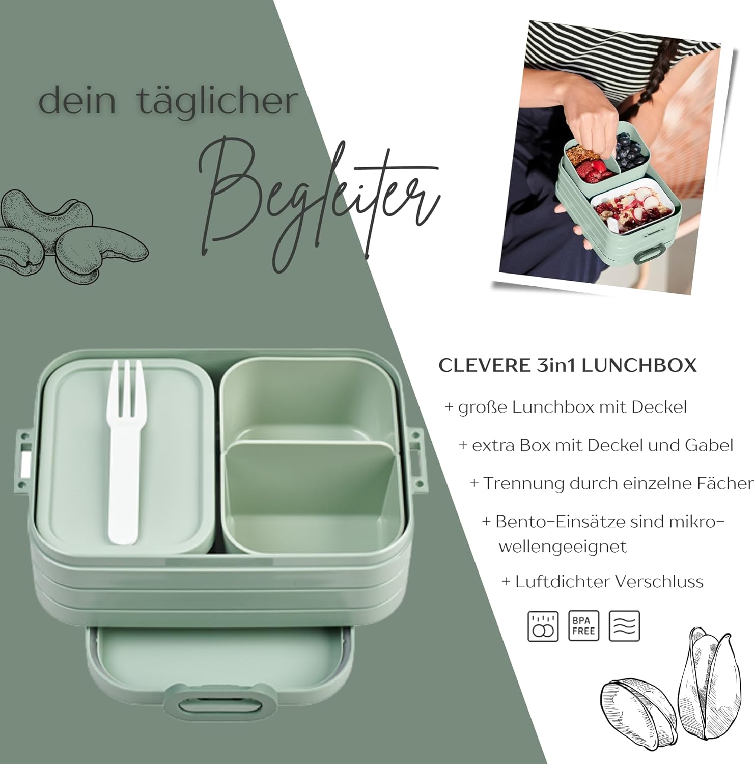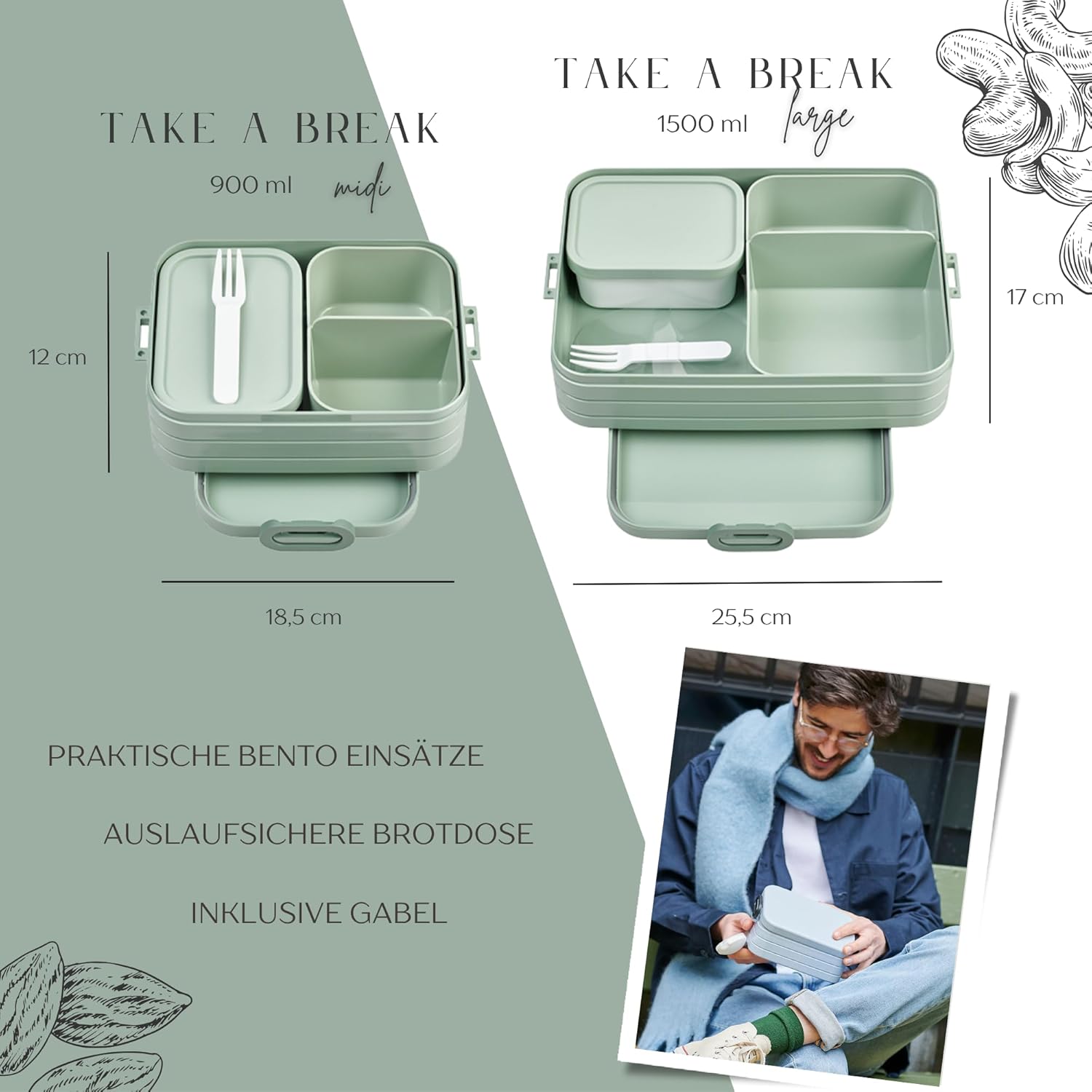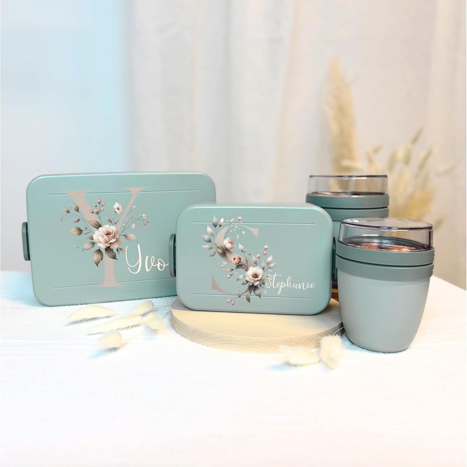 | Enthaltene Komponenten | 2x Bento Einsatz, Gabel, Personalisierte Brotdose |