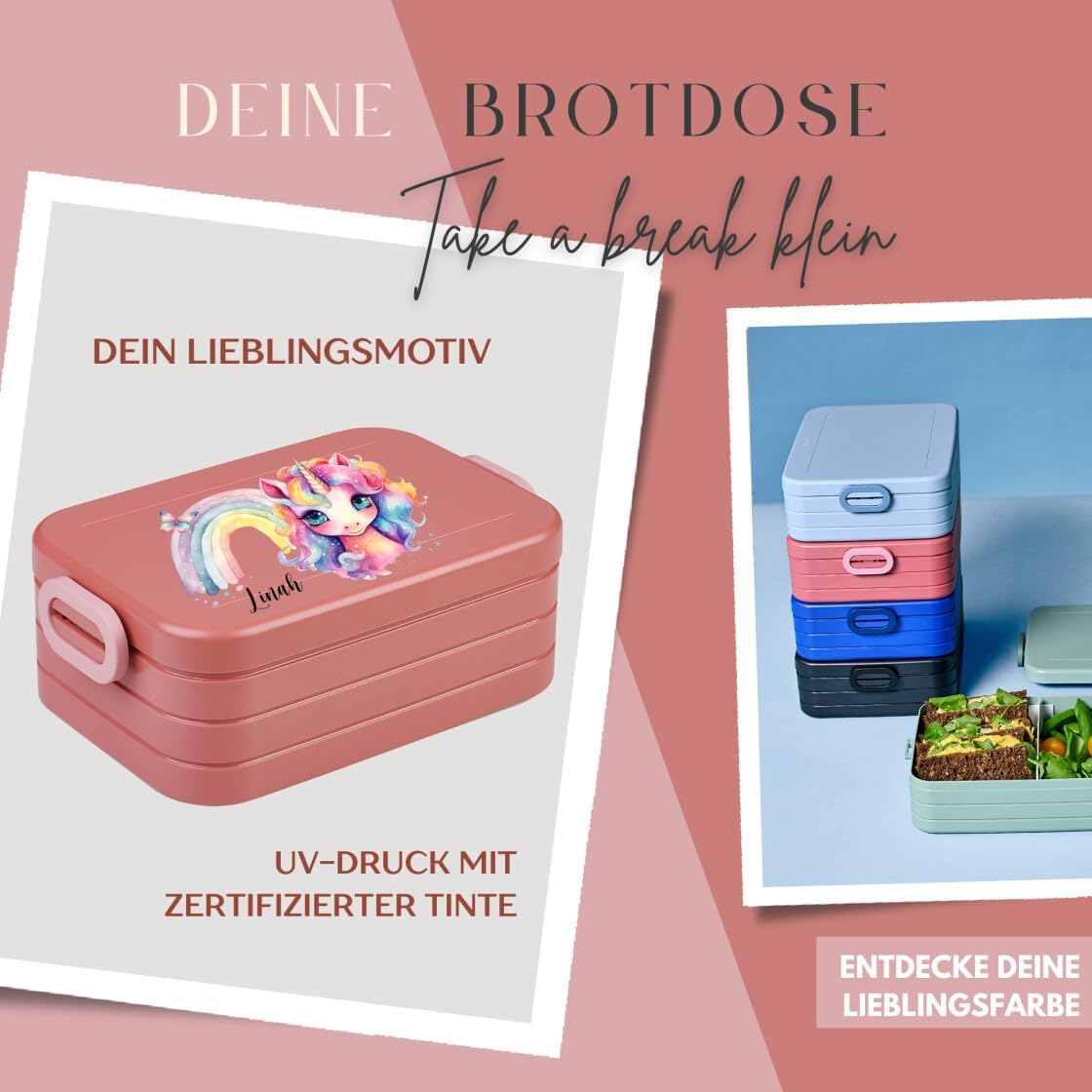Portapranzo personalizzato: portapranzo Mepal con stampa colorata di unicorno, arcobaleno, farfalla e nome. Clicca sul pulsante giallo “Personalizza ora” e personalizza un pezzo davvero unico. Design accurato: contenitore per il pranzo per bambini con scomparti e inserto bento con forchetta. Perfetto per porzionare un'ampia gamma di snack come yogurt, frutta, salse o dolci. Chiusura a clip adatta ai bambini e facile da aprire. Pratico nella vita di tutti i giorni: contenitore perfetto per le pause per la scuola, l'asilo, le escursioni e i viaggi. Il contenitore per il pranzo è a prova di perdite e può quindi essere idealmente portato con sé nello zaino della scuola. Stampa certificata: la personalizzazione e il motivo colorato sono adatti ai bambini e rispettosi dell'ambiente. Il corpo del contenitore per il pranzo è lavabile in lavastoviglie. Il regalo perfetto: sorprendete ragazze e ragazzi con un regalo distintivo per l'inizio della scuola, i compleanni e ogni altra occasione. Un'idea regalo unica e personalizzata.