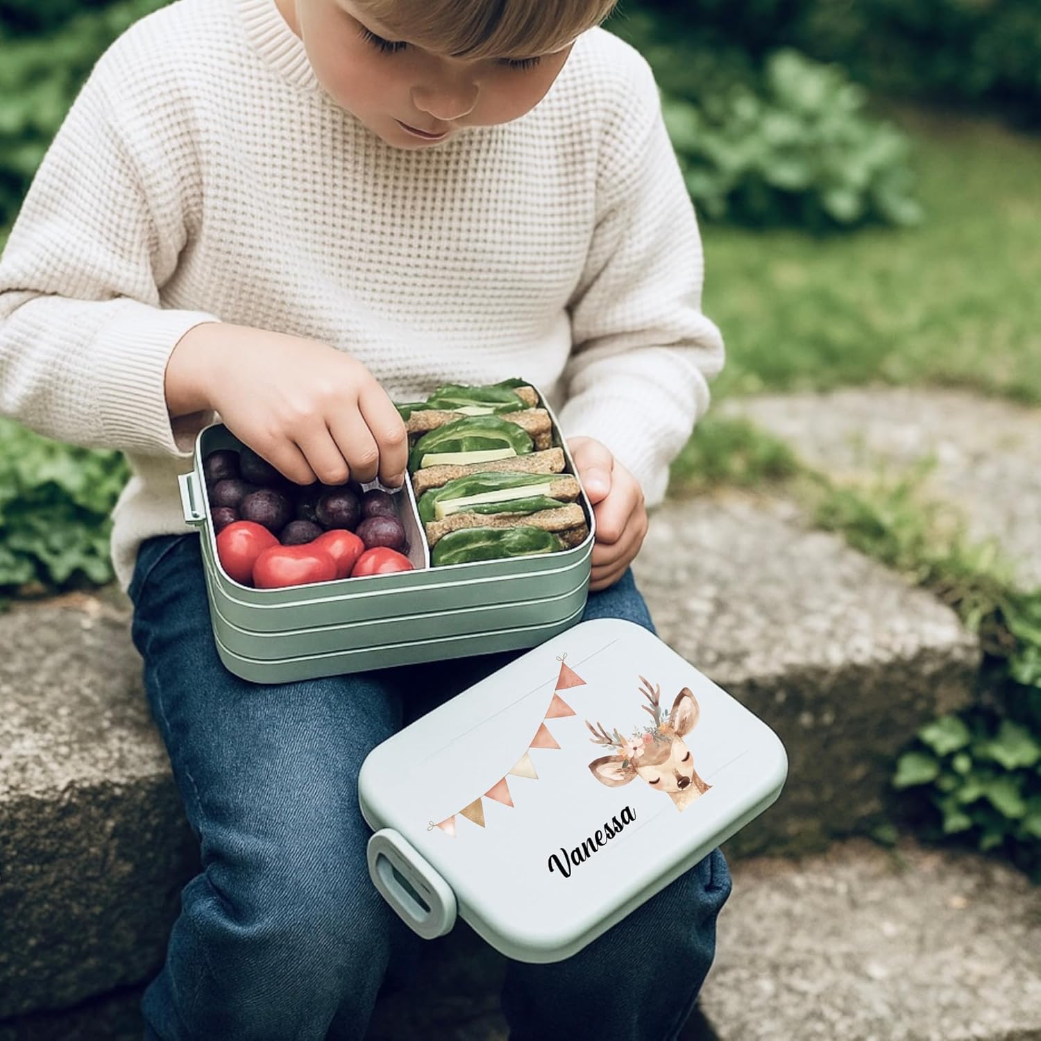 Contenitore per il pranzo personalizzato: Mepal contenitore per il pranzo con cervo colorato stampato e nome. Clicca sul pulsante giallo "Personalizza ora" e personalizza un vero pezzo unico. Design ben congegnato: contenitore per il pranzo per bambini con divisore per il trasporto. Perfetto per porzionare diversi snack come frutta, pane o caramelle. Chiusura a clip per bambini e facile da aprire. Pratico nella vita di tutti i giorni: perfetto per la scuola, l'asilo o per gite e viaggi. Il contenitore per il pranzo è a prova di perdite e può quindi essere trasportato in modo ideale nello zaino della scuola. Stampa certificata: la personalizzazione e il motivo colorato sono bambini e rispettosi dell'ambiente. Il corpo del contenitore è lavabile in lavastoviglie. Il regalo perfetto: sorprendi ragazze e ragazzi con un regalo inconfondibile per l'inizio della scuola, il compleanno e qualsiasi altra occasione. Un'idea regalo unica e personalizzata.