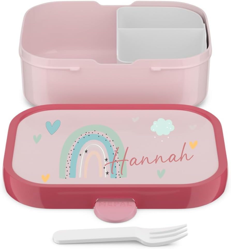 Contenitore per il pranzo personalizzato: Mepal contenitore per il pranzo con stampa colorata e nome. Clicca sul pulsante giallo "Personalizza ora" e personalizza un vero pezzo unico. Design intelligente: contenitore per il pranzo per bambini con scomparti e inserto Bento con forchetta. Perfetto per porzionare diversi snack come yogurt, frutta, salse o caramelle. Chiusura a clip per bambini e facile da aprire. Pratico nella vita di tutti i giorni: perfetto per la scuola, l'asilo o per gite e viaggi. Il contenitore per il pranzo è a prova di perdite e può quindi essere trasportato in modo ideale nello zaino della scuola. Stampa certificata: la personalizzazione e il motivo colorato sono bambini e rispettosi dell'ambiente. Il corpo del contenitore è lavabile in lavastoviglie. Il regalo perfetto: sorprendi ragazze e ragazzi con un regalo inconfondibile per l'inizio della scuola, il compleanno e qualsiasi altra occasione. Un'idea regalo unica e personalizzata.