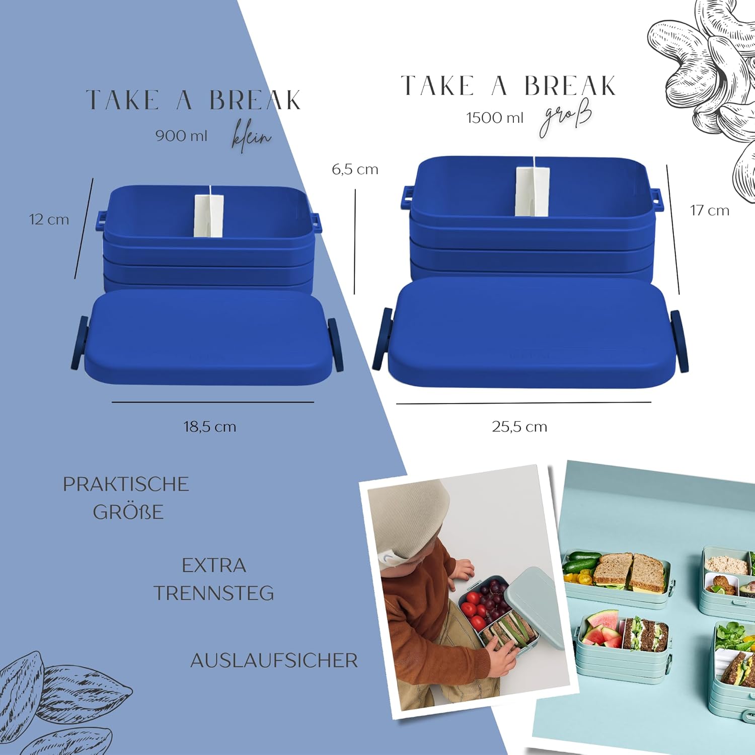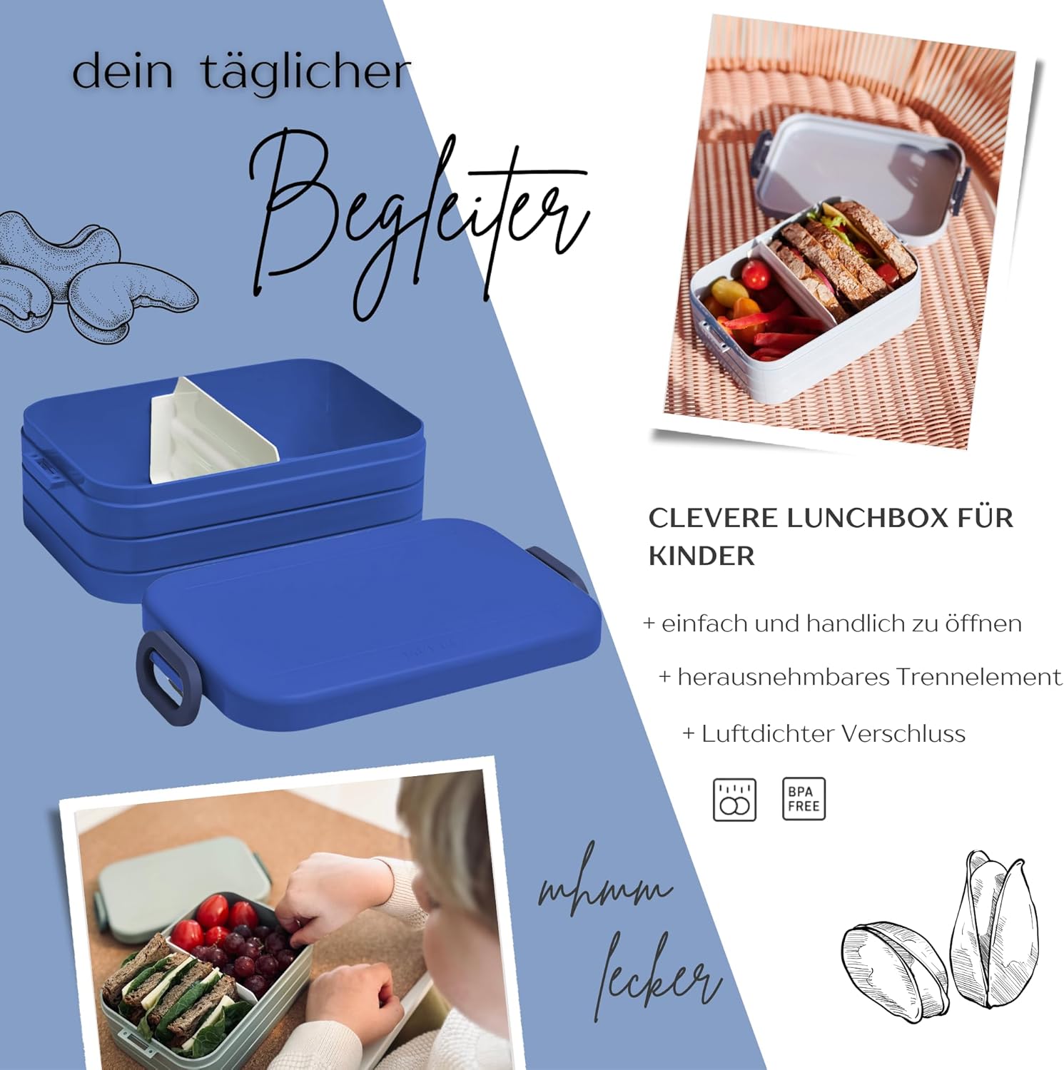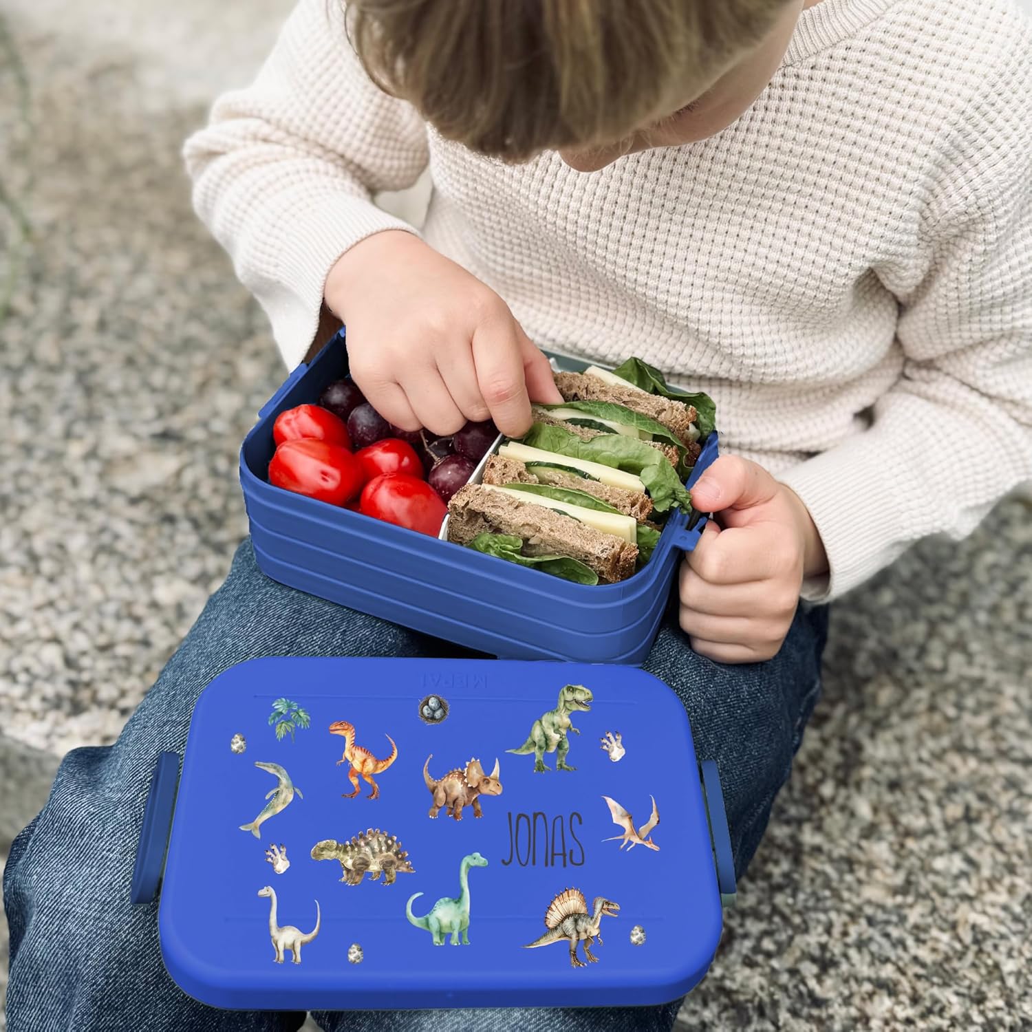 Contenitore per il pranzo personalizzato: Mepal contenitore per il pranzo con stampa colorata e nome. Clicca sul pulsante giallo "Personalizza ora" e personalizza un vero pezzo unico. Design ben congegnato: contenitore per il pranzo per bambini con divisore per il trasporto. Perfetto per porzionare diversi snack come frutta, pane o caramelle. Chiusura a clip per bambini e facile da aprire. Pratico nella vita di tutti i giorni: perfetto per la scuola, l'asilo o per gite e viaggi. Il contenitore per il pranzo è a prova di perdite e può quindi essere trasportato in modo ideale nello zaino della scuola. Stampa certificata: la personalizzazione e il motivo colorato sono bambini e rispettosi dell'ambiente. Il corpo del contenitore è lavabile in lavastoviglie. Il regalo perfetto: sorprendi ragazze e ragazzi con un regalo inconfondibile per l'inizio della scuola, il compleanno e qualsiasi altra occasione. Un'idea regalo unica e personalizzata.