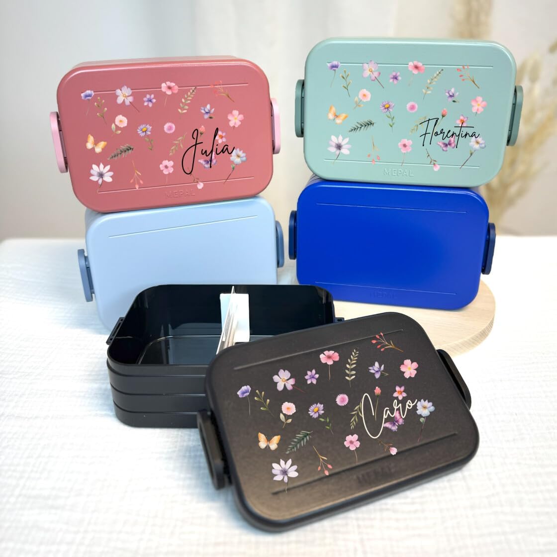 Contenitore per il pranzo personalizzato: Mepal Take a Break con motivo floreale colorato e nome. Clicca sul pulsante giallo "Personalizza ora" e personalizza un vero pezzo unico con il nome desiderato. Design intelligente: contenitore per il pranzo per adulti, adolescenti e bambini con inserto separatore. Perfetto per porzionare diversi snack. Chiusura facile da aprire. Pratico nella vita di tutti i giorni: perfetto per il lavoro, la scuola, le gite e i viaggi. Il contenitore per il pranzo è a prova di perdite e può quindi essere trasportato in modo ideale nella borsa. Ideale per la preparazione quotidiana dei pasti. Il regalo perfetto: sorprendi i tuoi cari con un regalo inconfondibile e personalizzato per ogni occasione, come ad esempio il compleanno. Un'idea regalo unica e personalizzata. Stampa certificata: stampa speciale certificata secondo la norma del giocattolo per la tua sicurezza e ulteriore certificazione Green Guard Gold per il nostro ambiente.