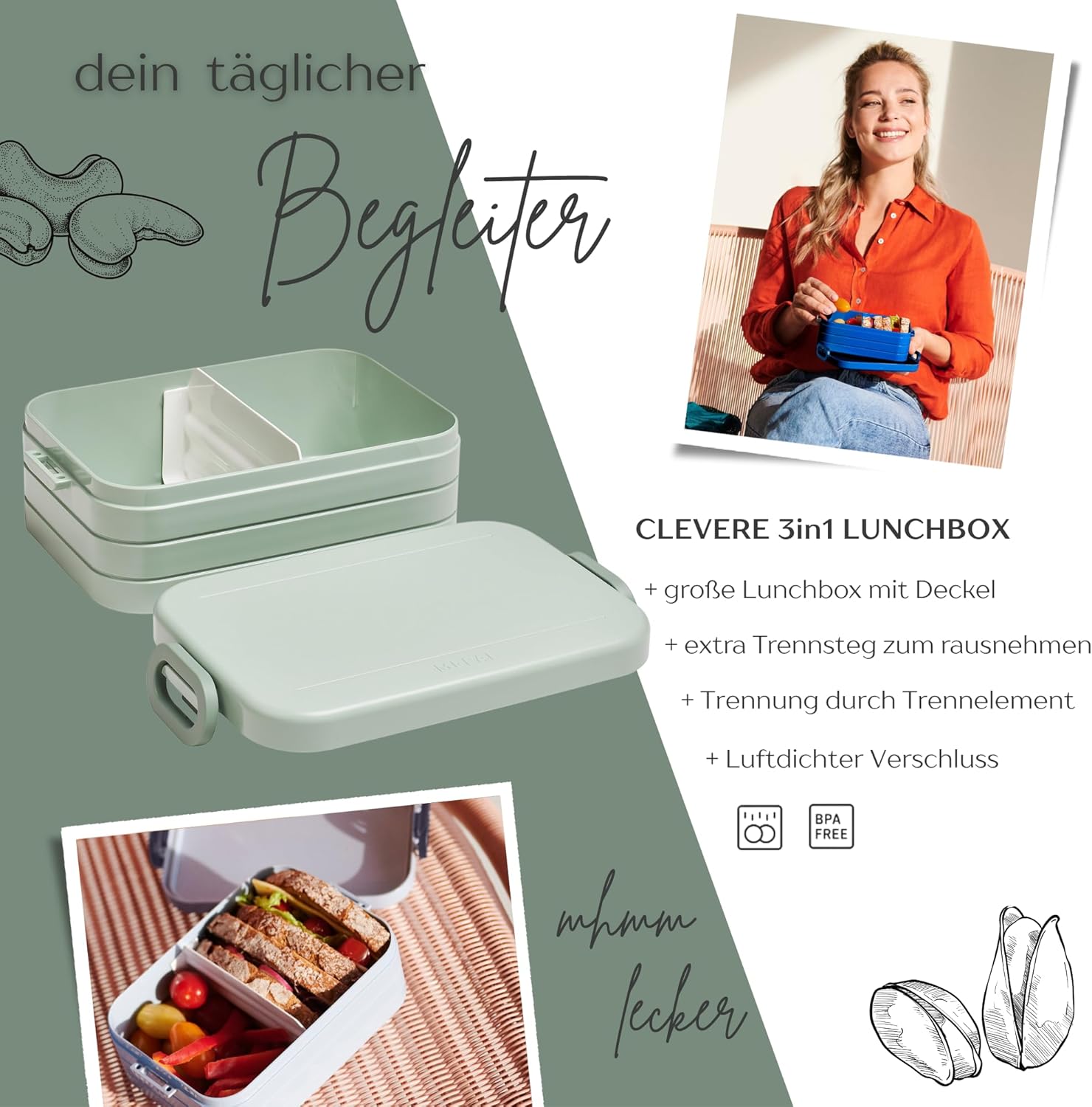 Contenitore per il pranzo personalizzato: Mepal Take a Break con motivo floreale colorato e nome. Clicca sul pulsante giallo "Personalizza ora" e personalizza un vero pezzo unico con il nome desiderato. Design intelligente: contenitore per il pranzo per adulti, adolescenti e bambini con inserto separatore. Perfetto per porzionare diversi snack. Chiusura facile da aprire. Pratico nella vita di tutti i giorni: perfetto per il lavoro, la scuola, le gite e i viaggi. Il contenitore per il pranzo è a prova di perdite e può quindi essere trasportato in modo ideale nella borsa. Ideale per la preparazione quotidiana dei pasti. Il regalo perfetto: sorprendi i tuoi cari con un regalo inconfondibile e personalizzato per ogni occasione, come ad esempio il compleanno. Un'idea regalo unica e personalizzata. Stampa certificata: stampa speciale certificata secondo la norma del giocattolo per la tua sicurezza e ulteriore certificazione Green Guard Gold per il nostro ambiente.