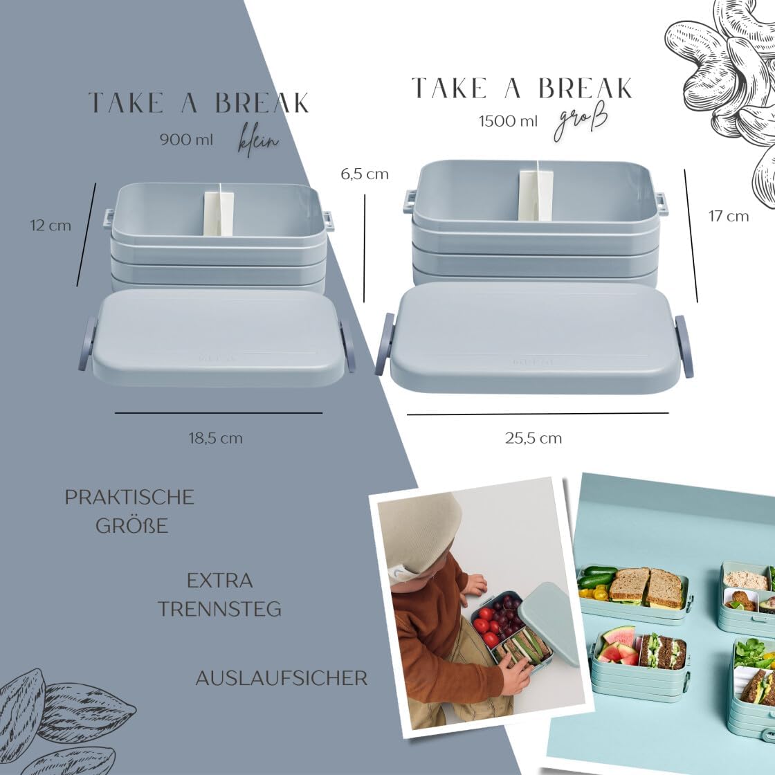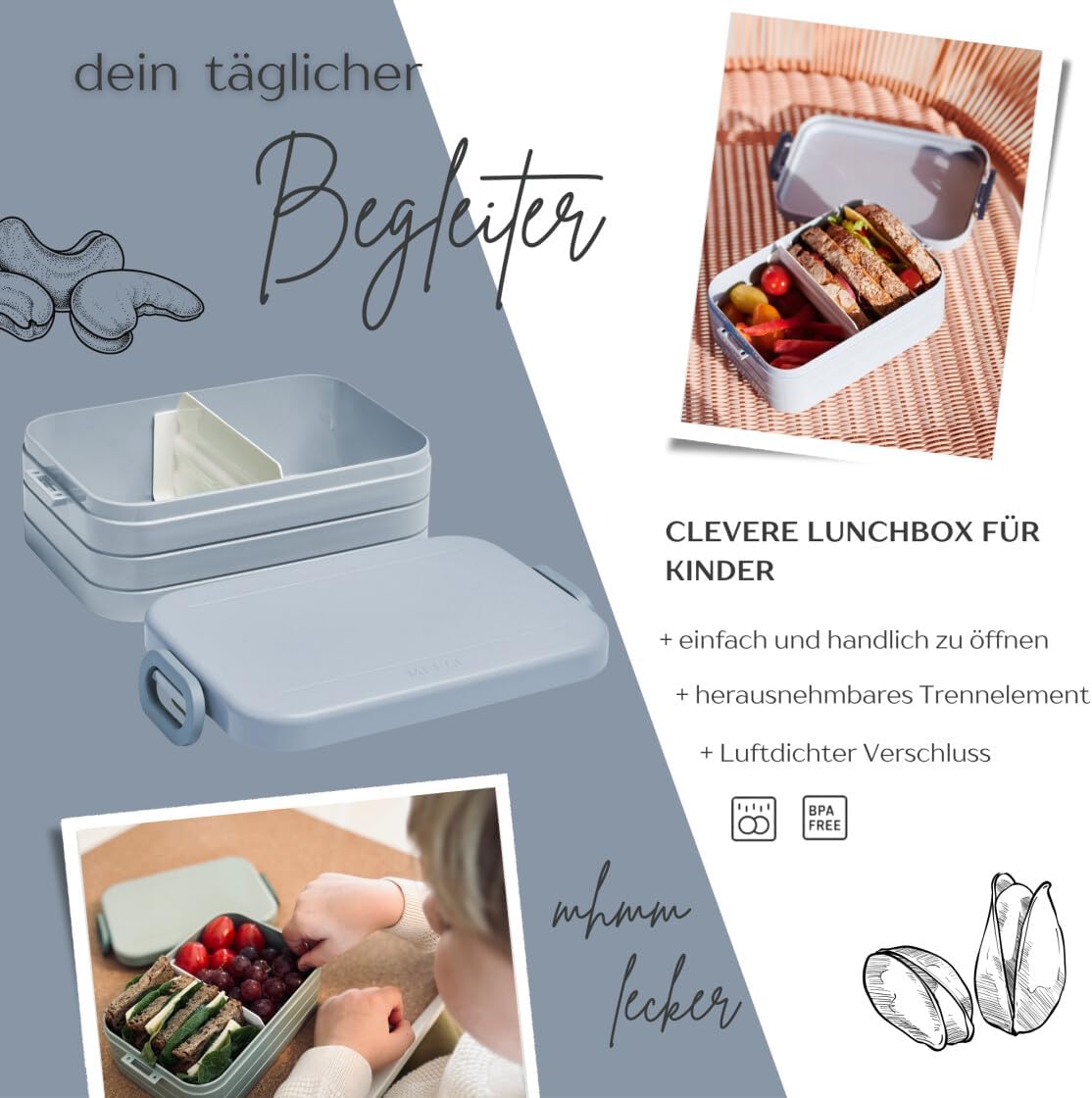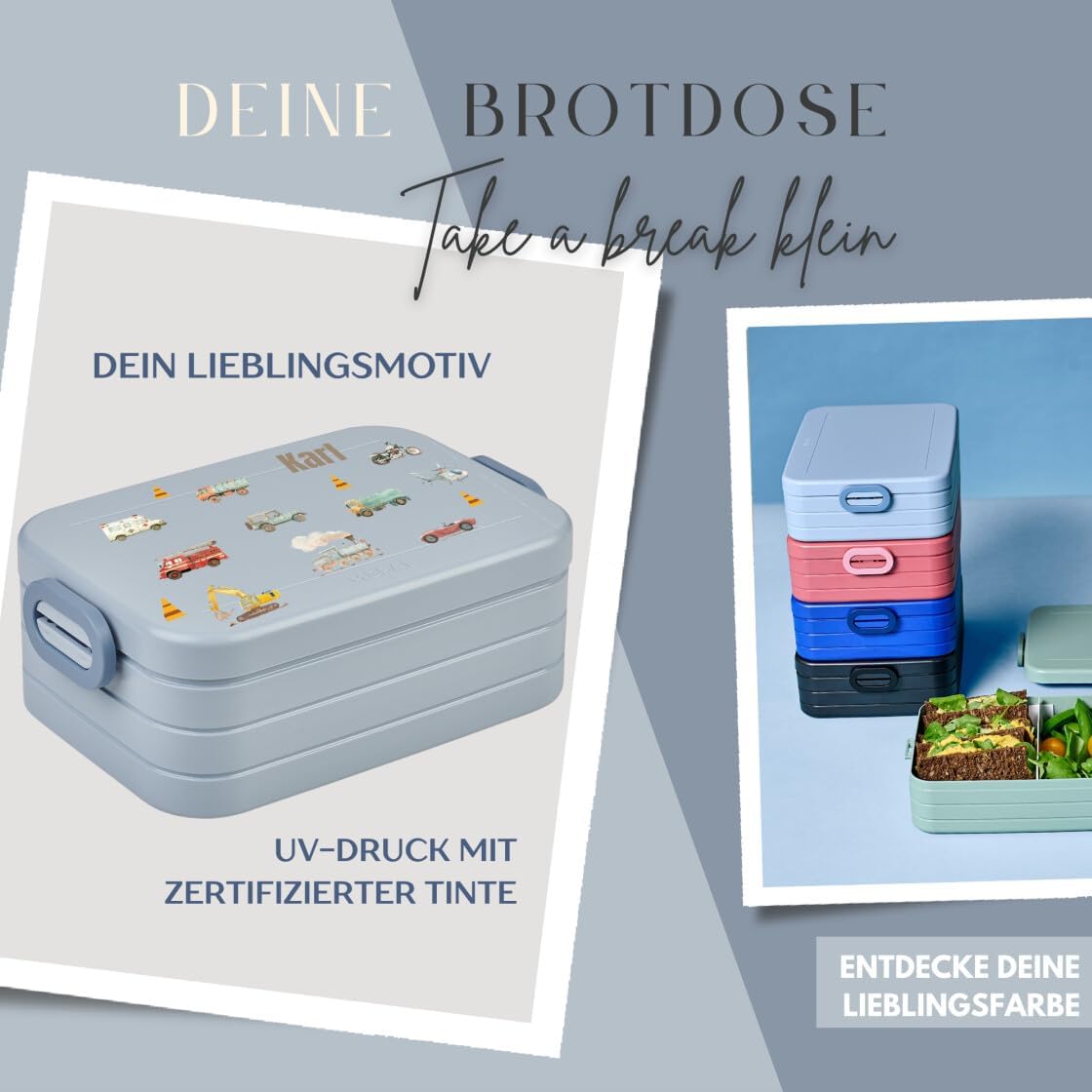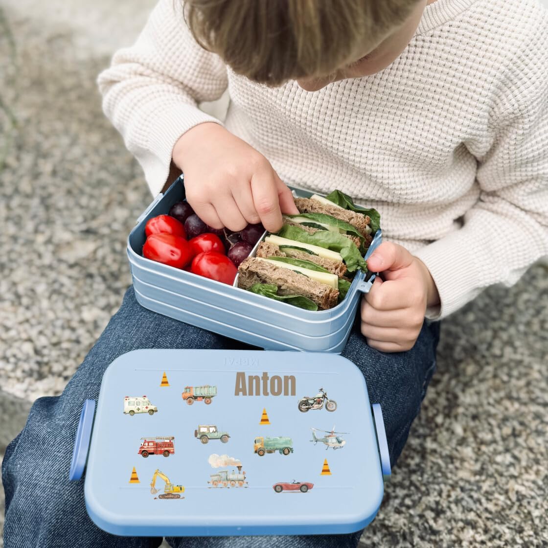 Contenitore per il pranzo personalizzato: Mepal contenitore per il pranzo con stampa colorata e nome. Clicca sul pulsante giallo "Personalizza ora" e personalizza un vero pezzo unico. Design ben congegnato: contenitore per il pranzo per bambini con divisore per il trasporto. Perfetto per porzionare diversi snack come frutta, pane o caramelle. Chiusura a clip per bambini e facile da aprire. Pratico nella vita di tutti i giorni: perfetto per la scuola, l'asilo o per gite e viaggi. Il contenitore per il pranzo è a prova di perdite e può quindi essere trasportato in modo ideale nello zaino della scuola. Stampa certificata: la personalizzazione e il motivo colorato sono bambini e rispettosi dell'ambiente. Il corpo del contenitore è lavabile in lavastoviglie. Il regalo perfetto: sorprendi ragazze e ragazzi con un regalo inconfondibile per l'inizio della scuola, il compleanno e qualsiasi altra occasione. Un'idea regalo unica e personalizzata.