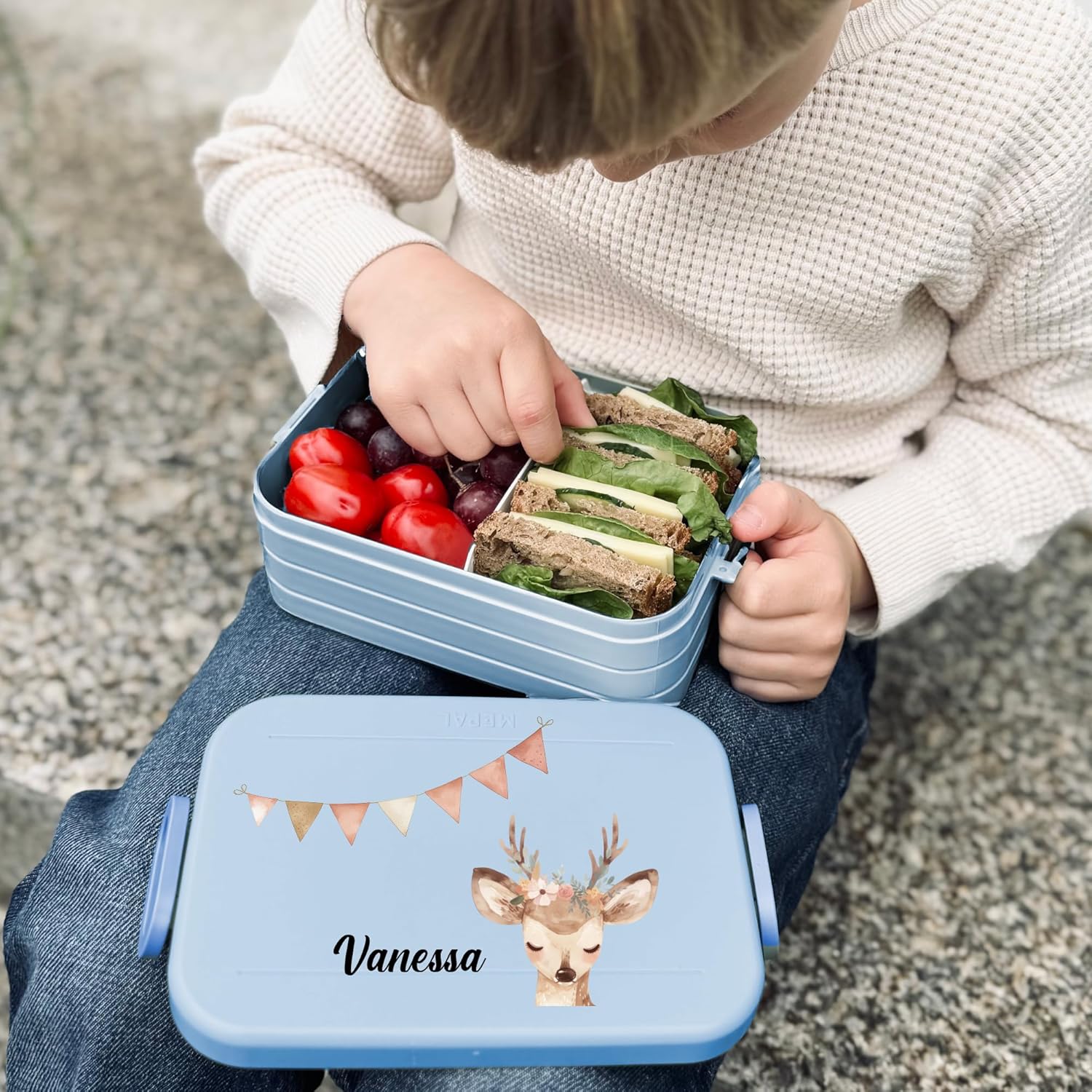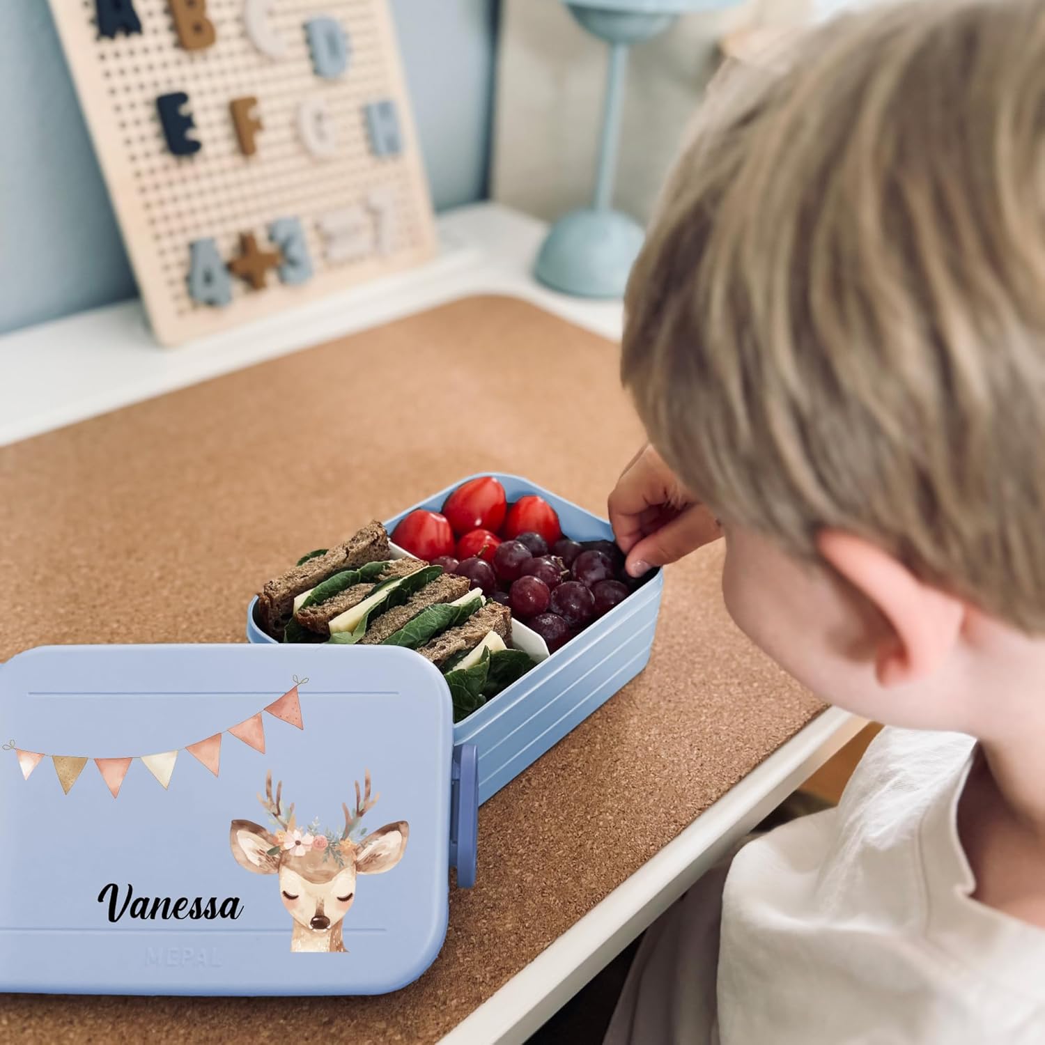 Lunch box personalizzato: Lunch box Mepal con stampa colorata di cervo e nome. Clicca sul pulsante giallo “Personalizza ora” e personalizza un pezzo davvero unico. Design sofisticato: contenitore per il pranzo per bambini con divisorio come inserto. Perfetto per porzionare una varietà di snack come frutta, snack o dolci. Chiusura a clip adatta ai bambini e facile da aprire. Pratico nella vita di tutti i giorni: contenitore perfetto per le pause per la scuola, l'asilo, le escursioni e i viaggi. Il contenitore per il pranzo è a prova di perdite e può quindi essere idealmente portato con sé nello zaino della scuola. Stampa certificata: la personalizzazione e il motivo colorato sono adatti ai bambini e rispettosi dell'ambiente. Il corpo del contenitore per il pranzo è lavabile in lavastoviglie. Il regalo perfetto: sorprendete ragazze e ragazzi con un regalo distintivo per l'inizio della scuola, i compleanni e ogni altra occasione. Un'idea regalo unica e personalizzata.
