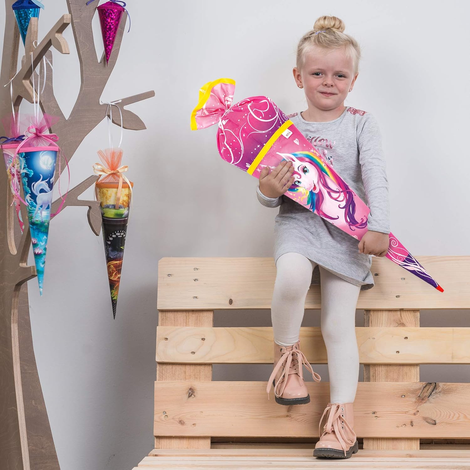 INTELLIGENTE - Busta di zucchero in tessuto di alta qualità con rivestimento in tessuto attorno a un robusto foglio di cartone. Regalo perfetto per i bambini all'inizio della scuola. SOSTENIBILE - Il cono scolastico con motivi è rivestito con un tessuto sfoderabile che può essere utilizzato dopo la scuola. Ad esempio come federa. BELLISSIMO - Il bellissimo unicorno è circondato da teneri cuori, che si affacciano da un cerchio arcobaleno colorato. Borsa robusta in rosa e giallo per ragazze. PRATICO - C'è molto spazio per riempire la borsa rotonda con motivi Roth da 70 cm. La fodera in poliestere al 100% è lavabile a 30°C ed è molto ben realizzata. QUALITÀ - Da ROTH in Germania. Zaino riutilizzabile da regalare per l'inizio della scuola.