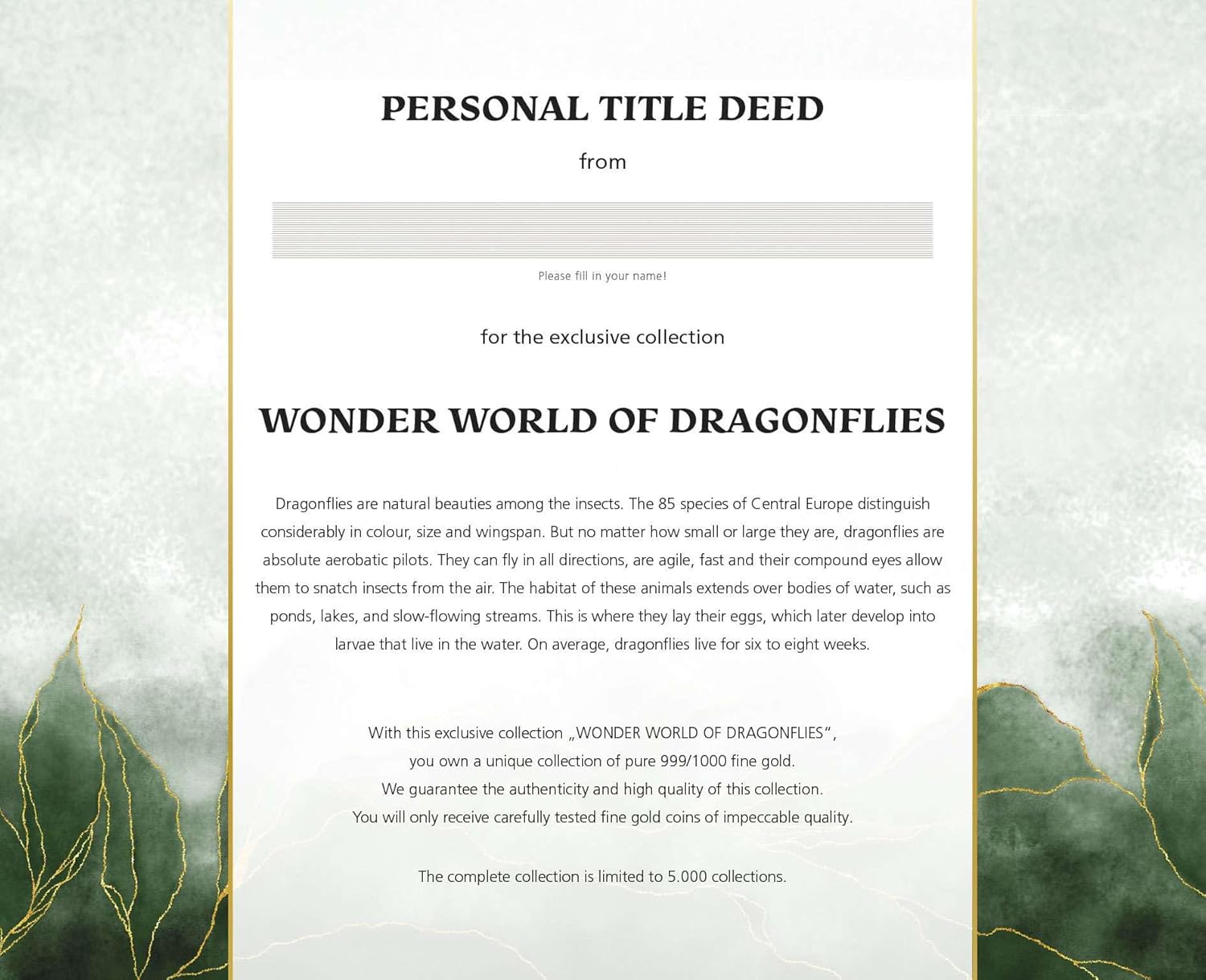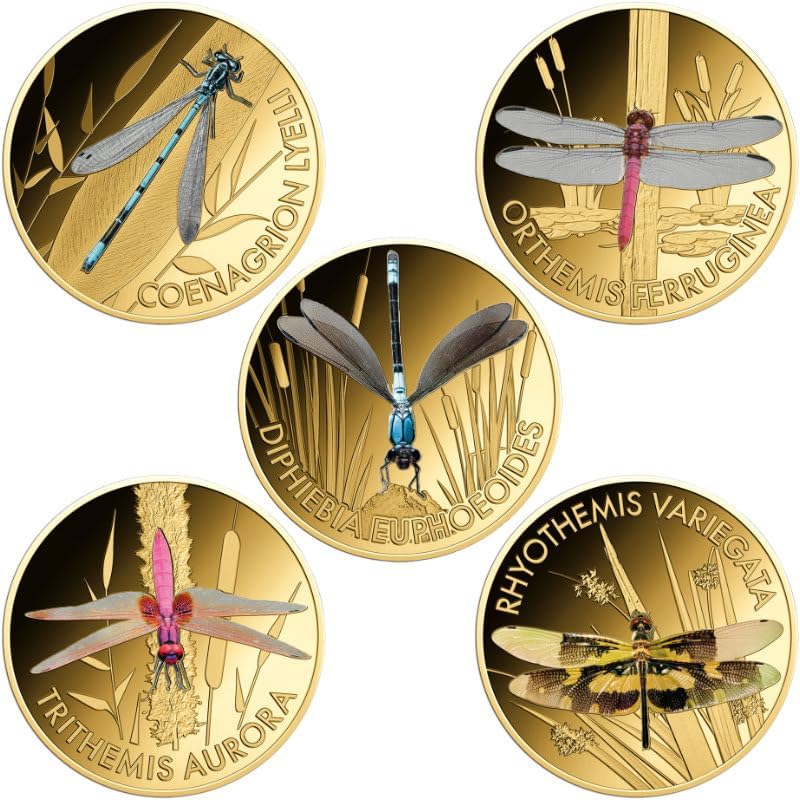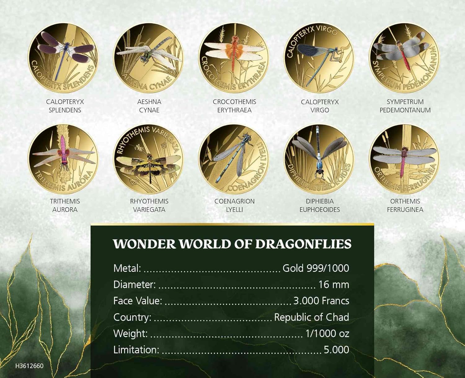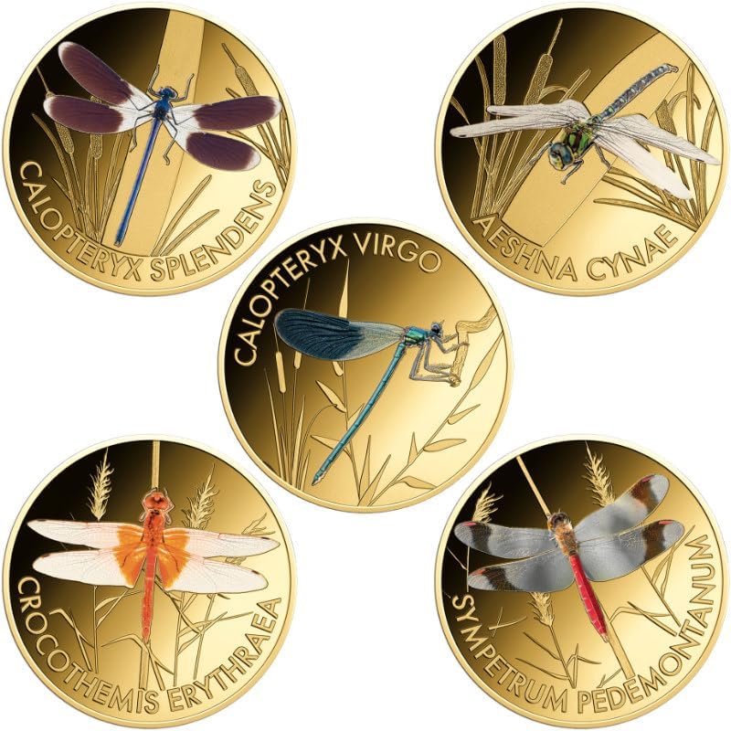 Interessante: set da collezione sul mondo delle meravigliose libellule Particolarità: set completo di 10 monete in oro con diversi motivi Qualità di stampa: le monete sono di alta qualità "Proof like" Consegna: la consegna avviene in un album con certificati di autenticità