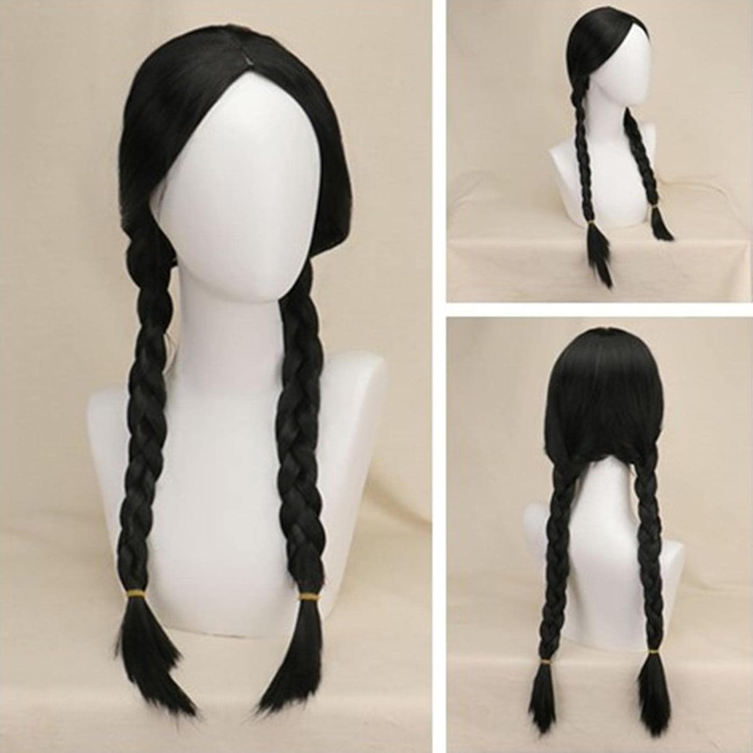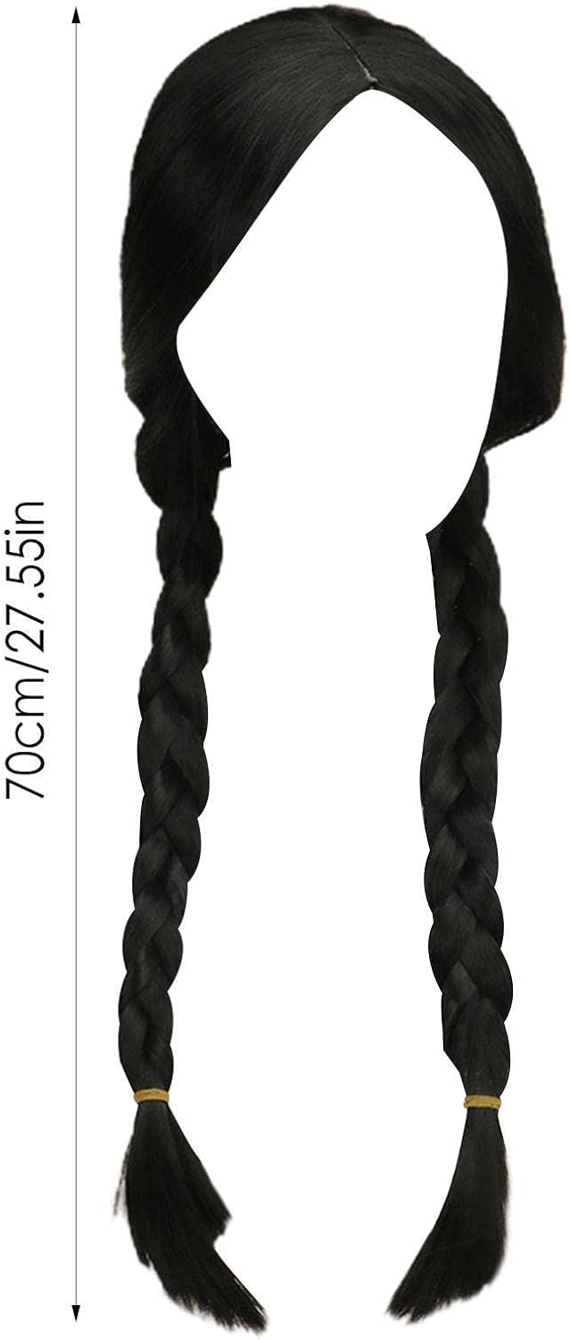Acconciatura: progettata come mostra il film, diventa immediatamente un ruolo una volta indossata Materiale: le parrucche intrecciate sono fatte di fibre sintetiche, naturali come i capelli umani, super morbide e delicate sulla pelle. Cuffia della parrucca: comoda, traspirante e regolabile. Occasioni: parrucche lunghe nere, perfette per cosplay Addams, vita quotidiana, feste, costumi di Halloween, concerti, Natale, carnevale, otterrete un sacco di divertimento e complimenti. La temperatura della parrucca resistente al calore è inferiore a 150 °C