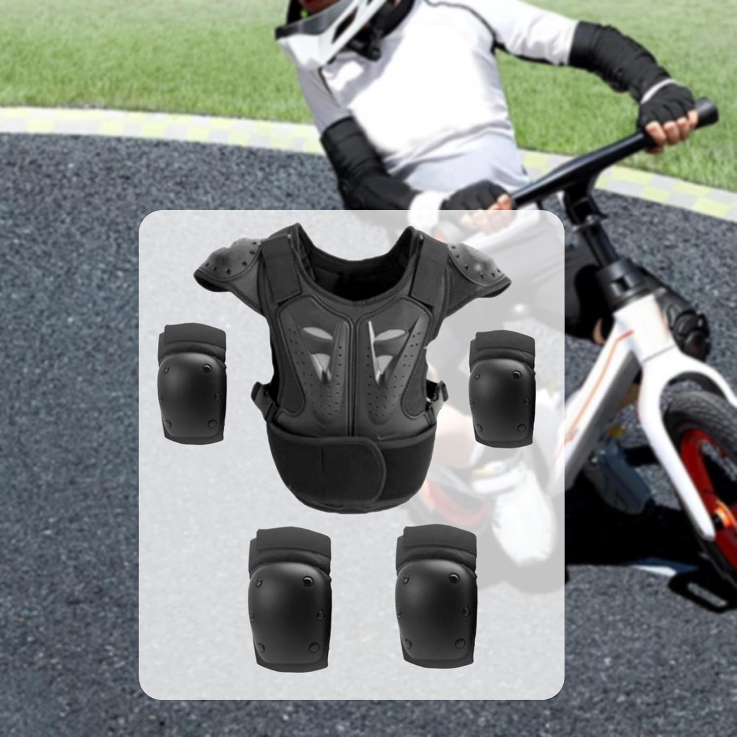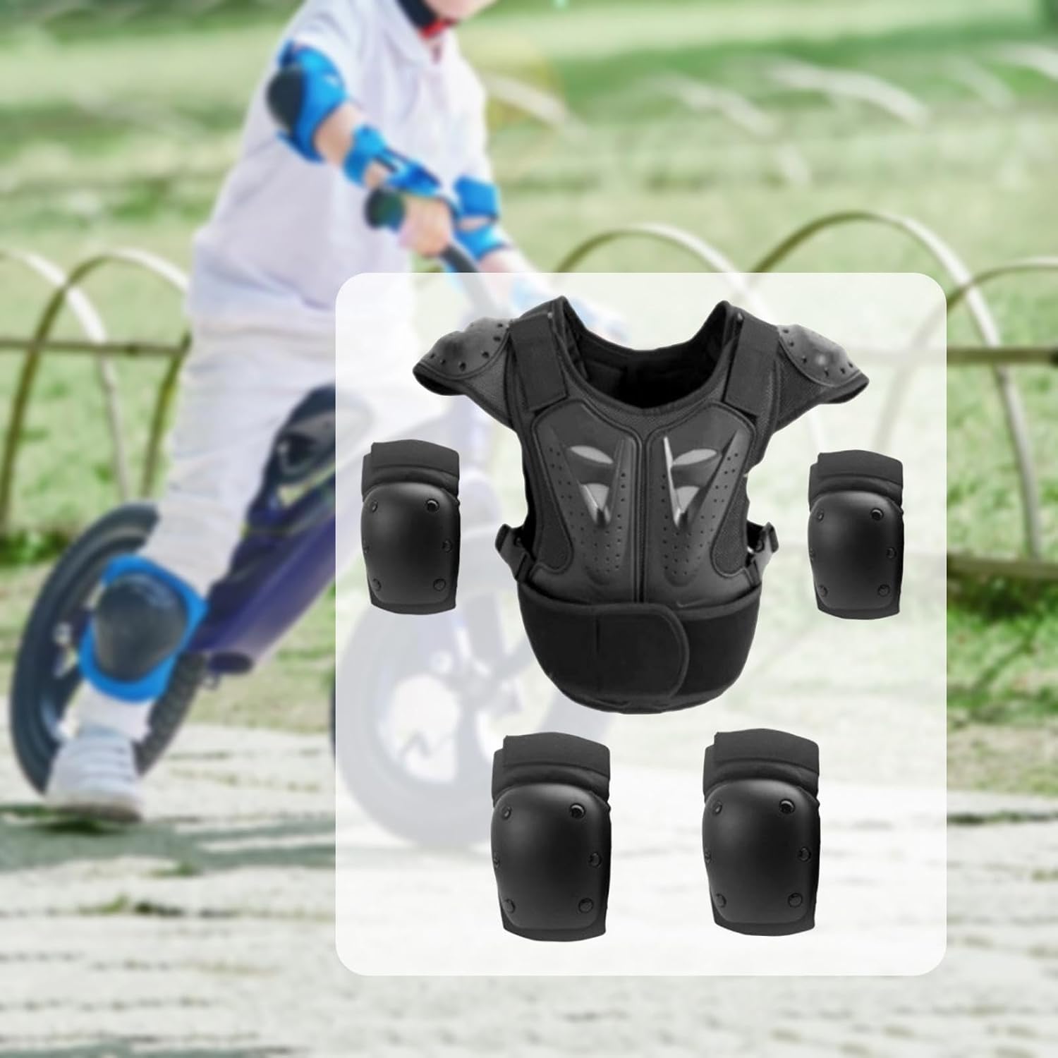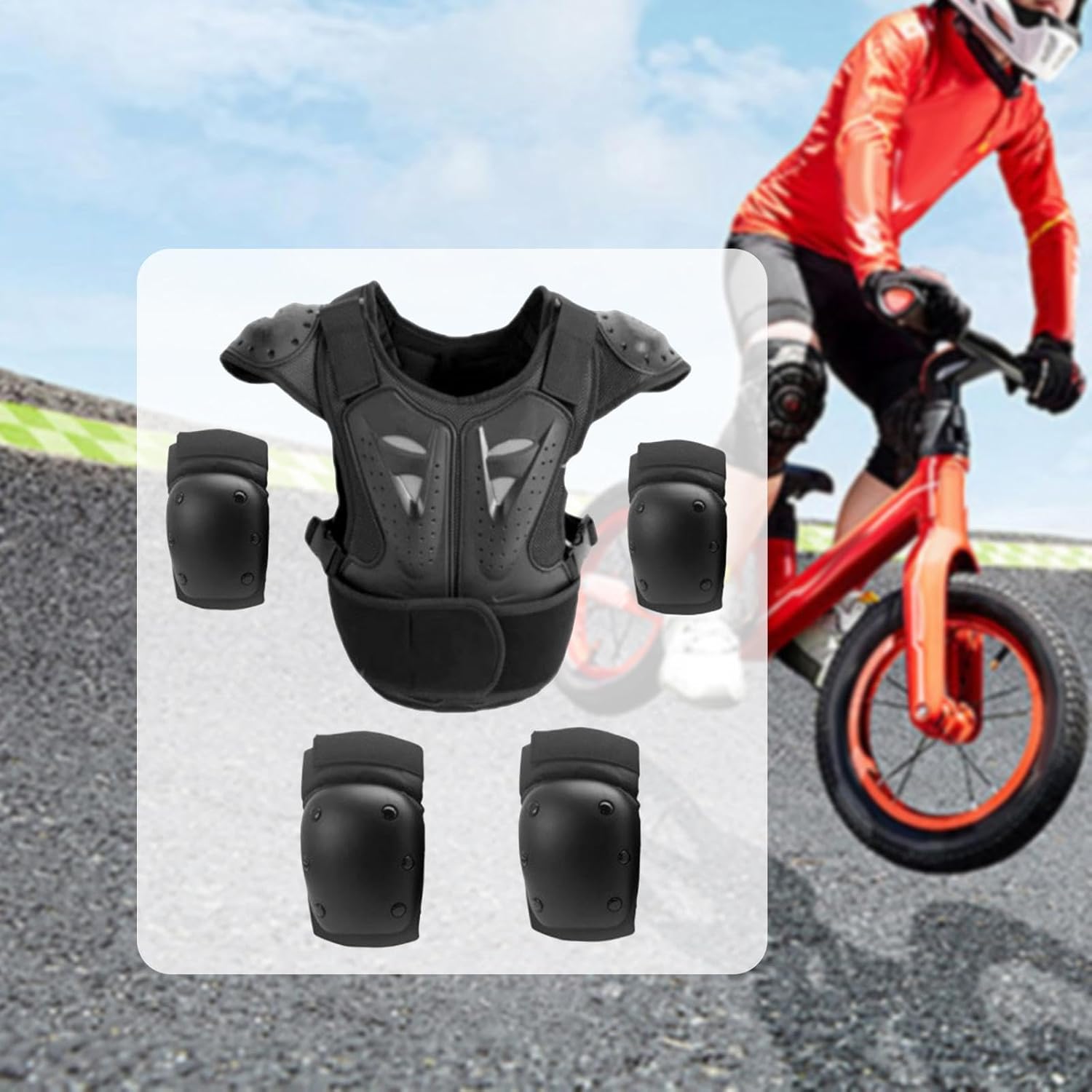 Materiale e design: il gilet da ciclismo con gomitiere e ginocchiere è realizzato in EVA, PP e tessuto a rete, traspirante, resistente all'usura e agli urti e può proteggere efficacemente il corpo del bambino. Dimensioni del prodotto: il gilet protettivo misura 42 cm x 38 cm x 8 cm, adatto per bambini dai 4 agli 8 anni. per petto, colonna vertebrale, vita, braccia e gambe dei bambini durante le attività sportive. 【】: Ogni confezione contiene 1 gilet, 2 gomitiere e 2 ginocchiere nella confezione. E design di trasporto regolabile comodo da indossare e da togliere, Multiuso: set di gilet, gomitiere e ginocchiere che fungono da protezione ideale per attività sportive come veicoli stradali, mountain bike, motociclismo, ciclismo, skateboard, sci.