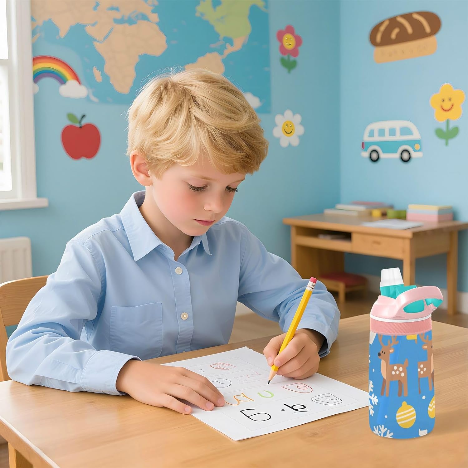 Materiale: questa borraccia per bambini da 16 x 7,5 cm con capacità di 480 ml è realizzata in tritan e silicone alimentare. Perfetto per le giornate scolastiche o per lo sport, è privo di elementi nocivi, affrontando le preoccupazioni dei genitori sui materiali non sicuri. Non adatto a bambini di età inferiore ai 3 anni! Design portatile: l'ampio manico è facile da impugnare per i bambini e il gancio del coperchio consente di attaccare la borraccia per bambini agli zaini. Niente più bottiglie perse durante le gite sul campo o le attività dopo la scuola. Uso senza problemi con una sola mano: il design a becco d'anatra si adatta alle bocche dei bambini, con una copertura antipolvere. L'interruttore a pulsante della borraccia per bambini è facile da usare con 1 mano, anche quando giocano o corrono. Blocco per evitare fuoriuscite: il pulsante di blocco della borraccia sportiva impedisce al becco d'anatra di fuoriuscire per errore. Niente più fuoriuscite negli zaini, mantenendo il pranzo e i libri asciutti. Pulizia semplice: le parti completamente rimovibili evitano l'accumulo di sporco. Pulire con detergente neutro e acqua calda: facile per i genitori mantenere pulita la borraccia sportiva per l'uso quotidiano.