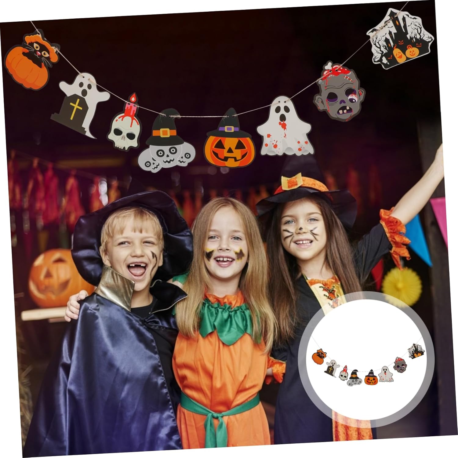 Ornamento di Halloween - Per la tua festa di Halloween, decorazioni per feste a casa, decorazioni per ufficio e altre occasioni interne ed esterne, striscione di Halloween da appendere. Striscione sospeso di Halloween: lo striscione sospeso può essere attaccato a cortili, porte, finestre, sporgenze, rami di alberi, cancelli, ecc. per Halloween. Ghirlanda di Halloween sospesa: puoi utilizzare lo striscione come supporto fotografico per scattare foto indimenticabili con le tue famiglie e i tuoi amici, striscione di Halloween. Striscione spettrale di Halloween - lo striscione sospeso - per Halloween, feste di fantasmi, carnevali, case infestate e altro ancora, striscioni di carta. Banner per decorazione - Realizzato in buon materiale cartaceo, abbastanza resistente e abbastanza leggero da poter essere appeso con poco sforzo, decorazione leggera per la casa.