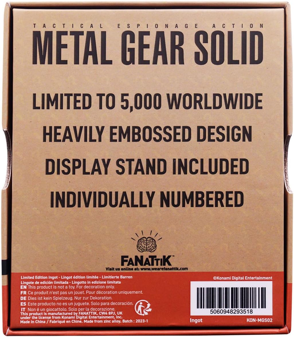 Licenza ufficiale Metal Gear Solid Lingot Targhe FOXHOUND Edizione limitata 5000 in tutto il mondo Ogni lingotto è numerato singolarmente Include espositore