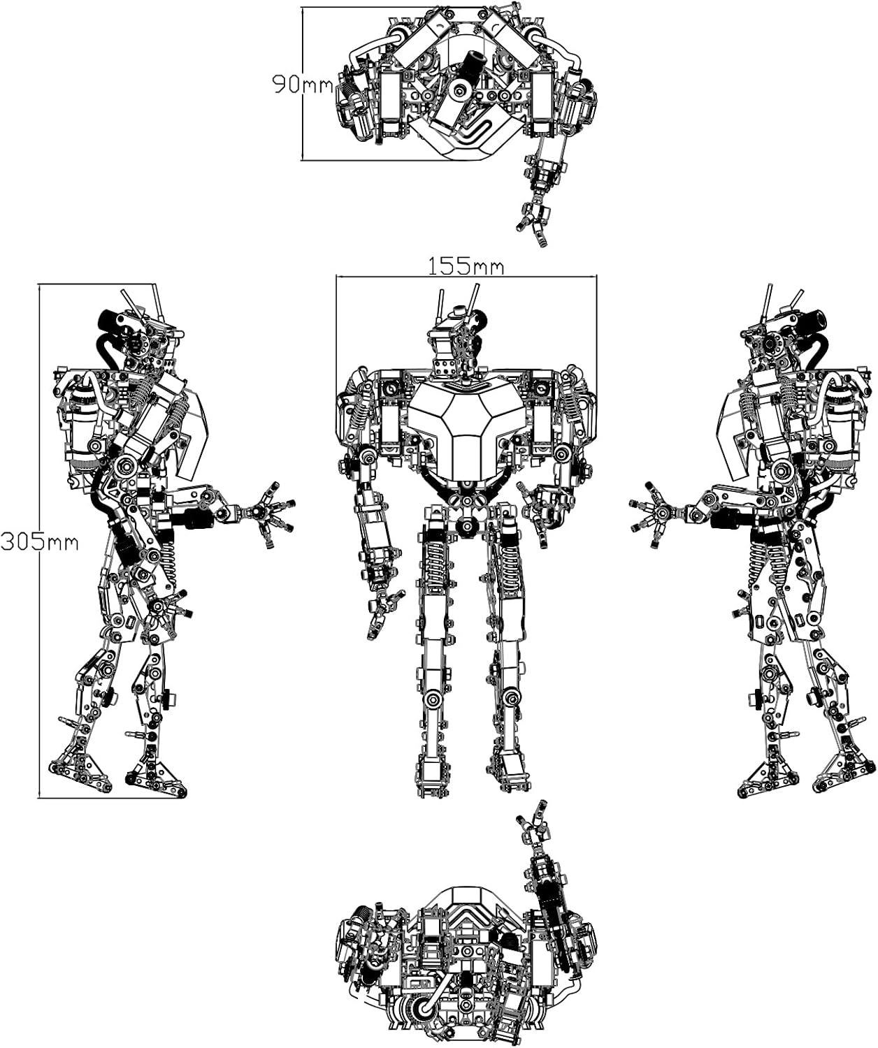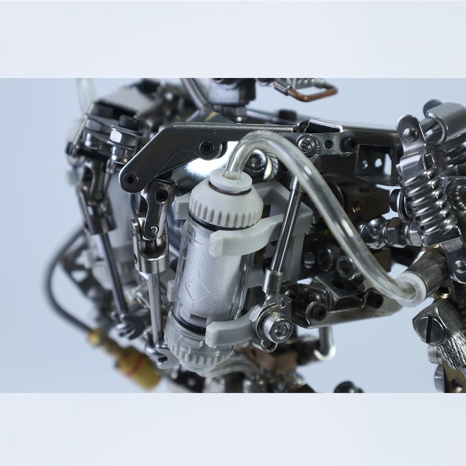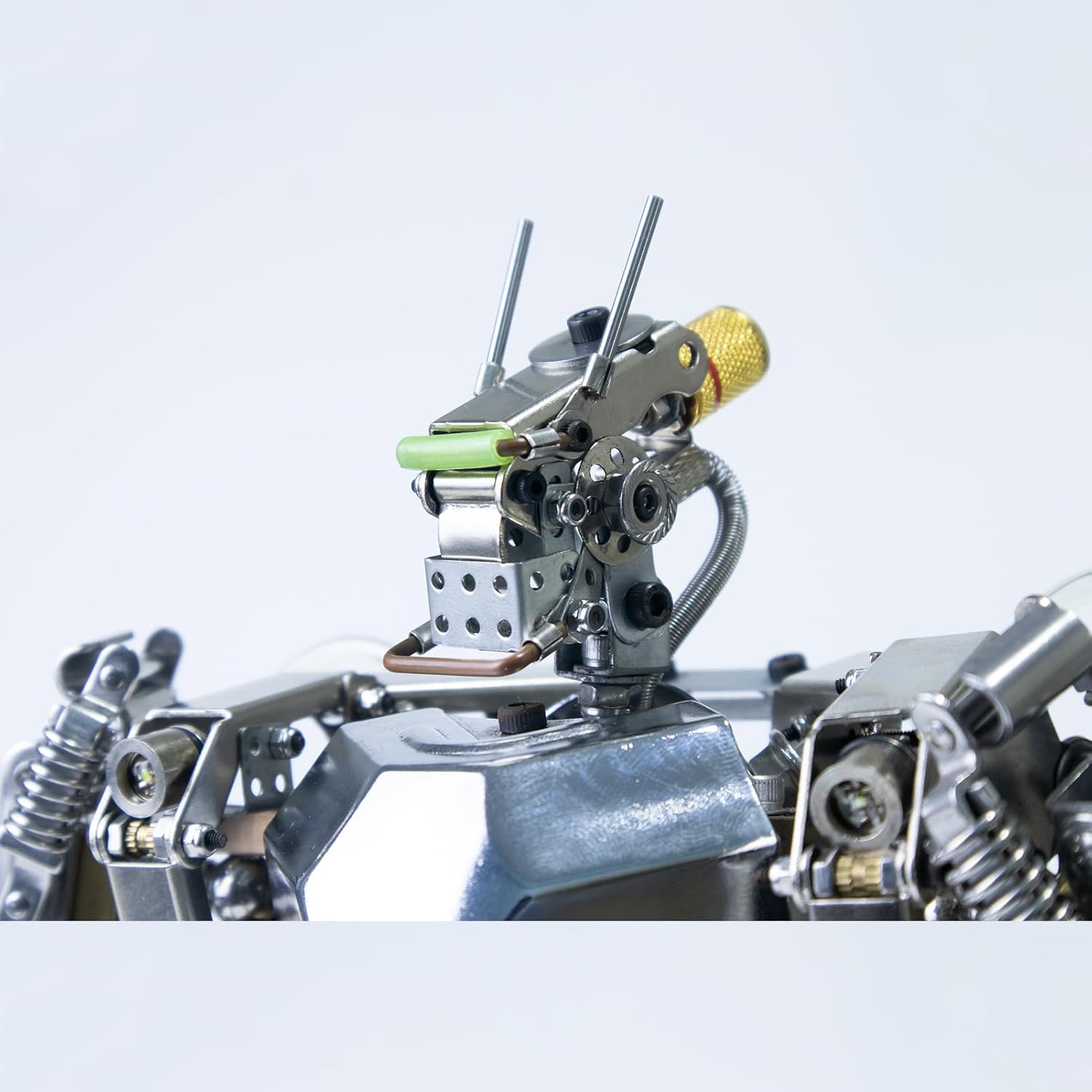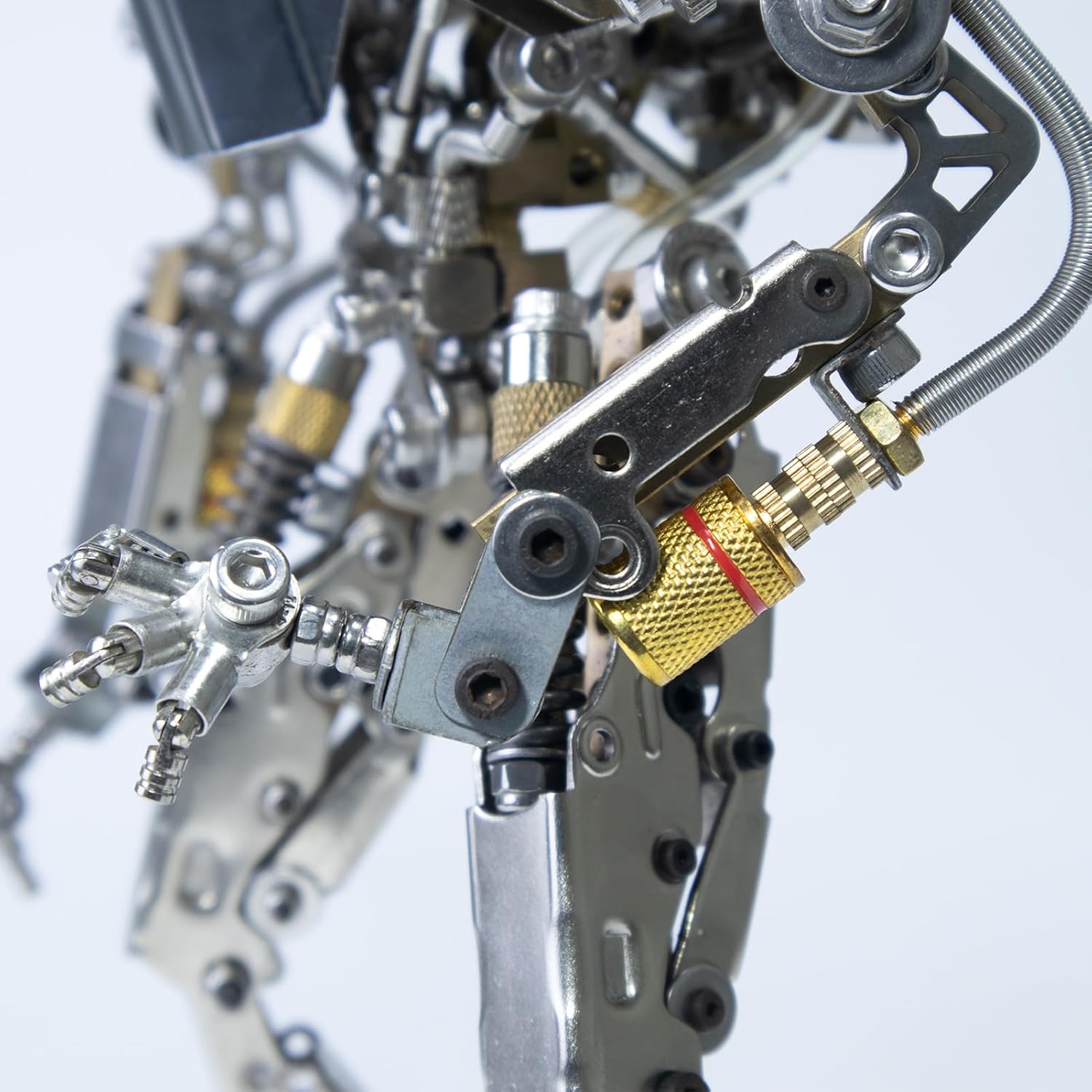 🎨 Stile di design: humanoid-1 esemplifica il principio "less is more" e mostra l'agilità di un piccolo robot con parti minime, evitando inutili complessità e impilamento delle parti. Articolazioni: con 26 articolazioni girevoli su collo, spalle, fianchi e articolazioni rotanti su braccia e cosce, puoi regolare facilmente la posa di Humanoid-1. Viti e dadi appositamente trattati assicurano che la postura rimanga sicura e stabile. [Costruzione] Realizzato con metalli di prima qualità con particolare attenzione all'articolazione e alla resistenza. Il corpo principale e gli arti hanno una finitura nera opaca con dettagli meccanici in oro e argento lucidi, fornendo un contrasto che ne mette in risalto il design intricato. 🚗 Armamento - Entrambe le braccia sono dotate di complessi sistemi di articolazione e mani dettagliate dotate di capacità motorie fini. La mano destra del robot ha un multiutensile mentre la mano sinistra ha delle pinze, suggerendo una doppia funzione sia di precisione che di forza. Assemblaggio piacevole: con oltre 700 parti e un tempo medio di assemblaggio di circa 15 ore, Humanoid-1 pesa circa 1600 g una volta completato. Il montaggio richiede viti e bulloni, non è necessaria la colla. Istruzioni chiare garantiscono un processo di costruzione fluido e divertente.