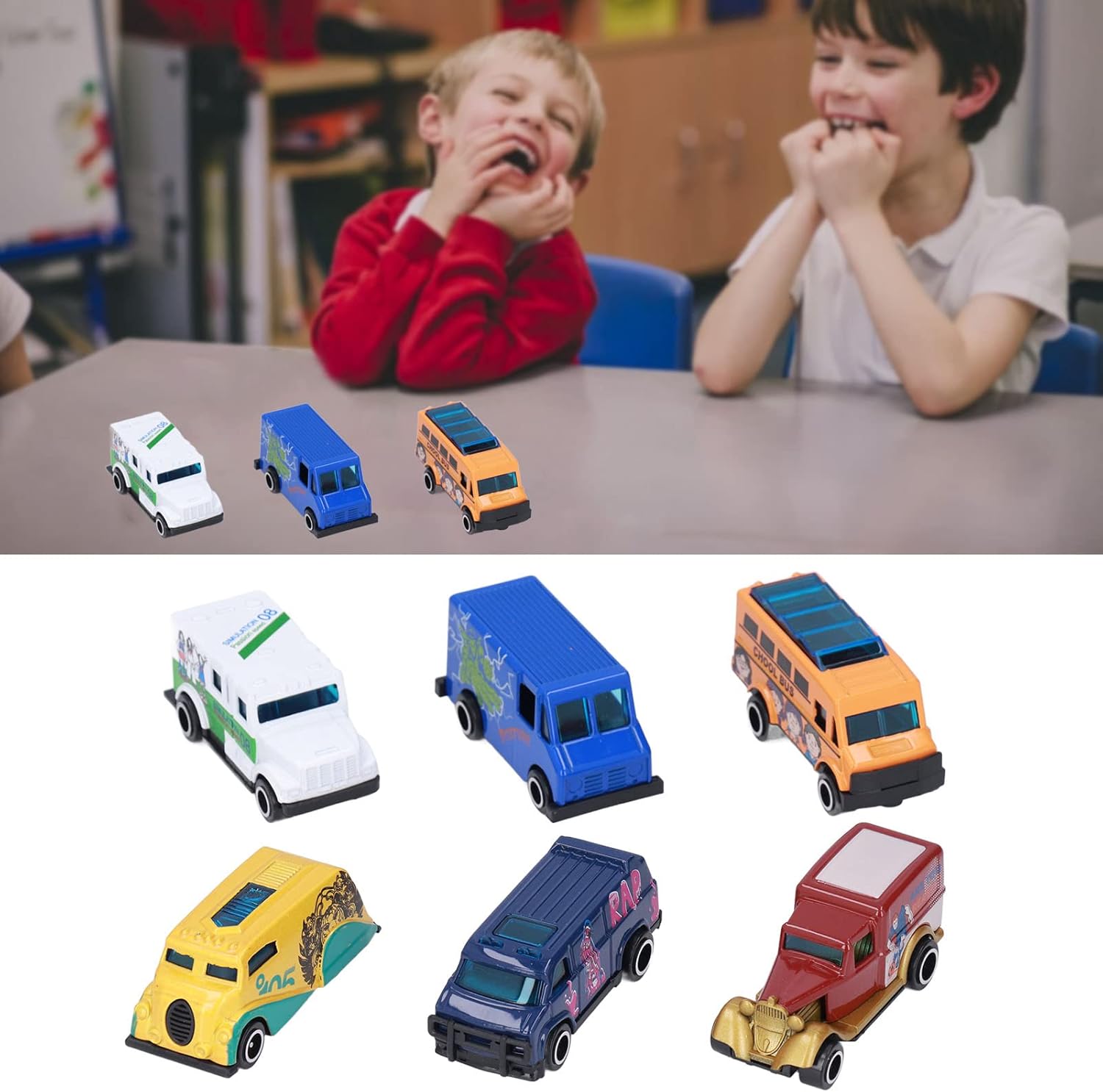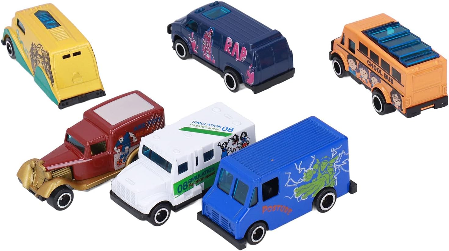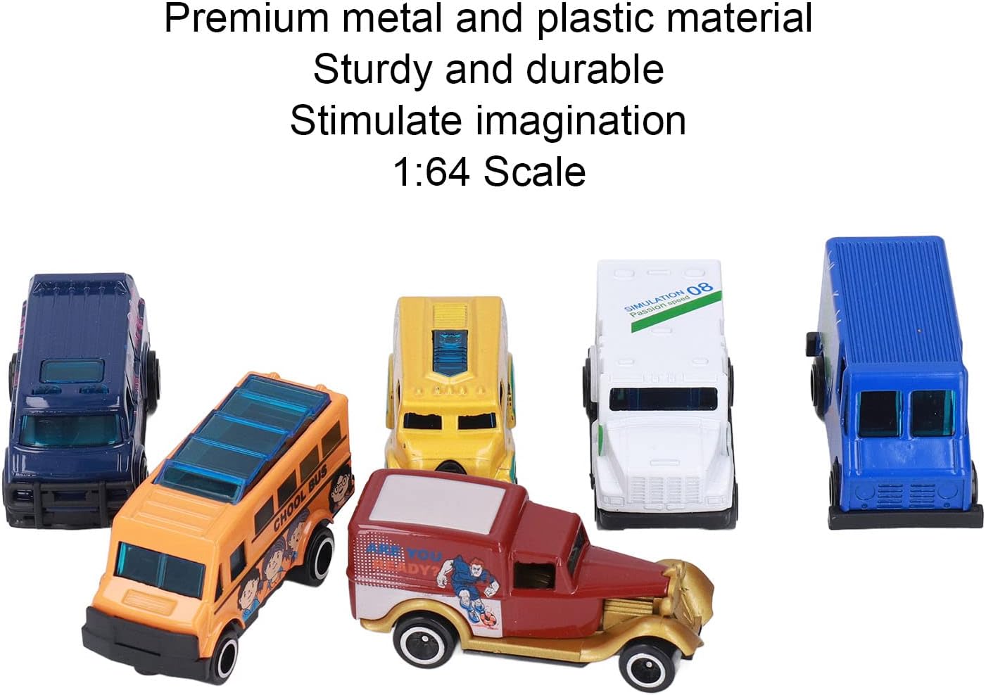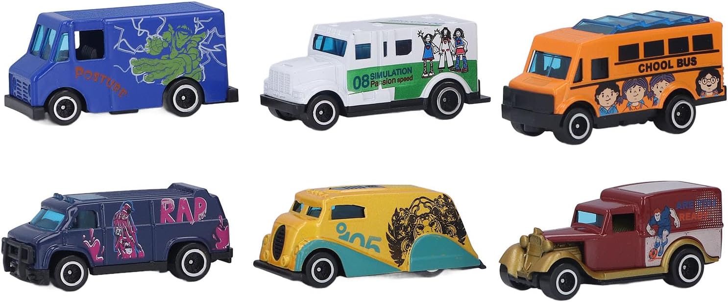 [Materiale durevole premium] Queste auto modello in metallo sono realizzate in lega e plastica, che garantisce durata e durezza di lunga data per il gioco infinito. [Scala altamente simulata 1:64] Il design in scala 1:64 di queste auto di modelli in metallo offre un aspetto realistico e unico, fornendo un'esperienza di gioco coinvolgente per i bambini. [Stimola l'immaginazione] Con colori vivaci e dettagli intricati, queste auto di modelli in metallo migliorano le abilità cognitive, la coordinazione occhio-mano e il gioco fantasioso per bambini. [Funzioni divertenti e diverse] Questo set include 6 auto modello in metallo in una varietà di forme, aggiungendo eccitazione e creatività al tempo di gioco dei tuoi figli. [Scelta dei regali] Queste auto in metallo squisitamente realizzate sono ideali per i bambini, mostrando disegni unici e artigianato che delizierà qualsiasi appassionato di auto.