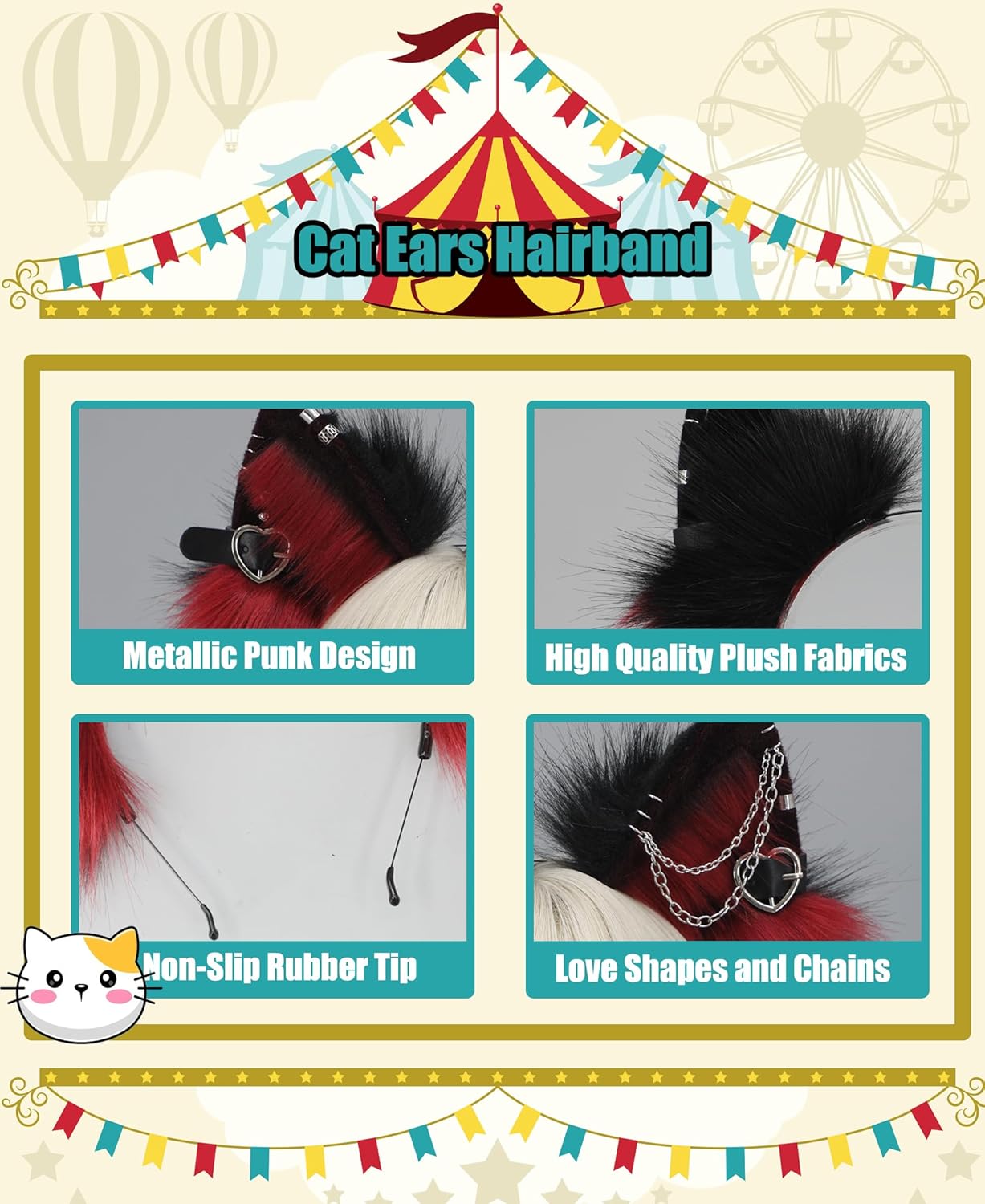 sazpajacos Metallo Punk Gatto orecchie copricapo animale orecchie copricapo Anime travestimento oggetti di scena Halloween Carnevale Cosplay Costume Accessori per adulti donne uomini Colori e tessuti Peluche e poliestere; Bianco e nero, Nero e grigio, Nero e rosso bordeaux Dimensioni Dettagli: 10cm*18cm*12cm(3.94"*7.09"*4.72") Distanza in altezza dell'archetto: 20cm/7.87” Distanza in larghezza dell'archetto: 23cm/9.06” A causa della misurazione manuale, si prega di consentire 1-2 pollici di differenza di misura, si prega di fare riferimento alla nostra tabella di formato con attenzione e scegliere la vostra dimensione in base alla vostra situazione reale. La confezione contiene: Solo 1x copricapo a orecchie di animale