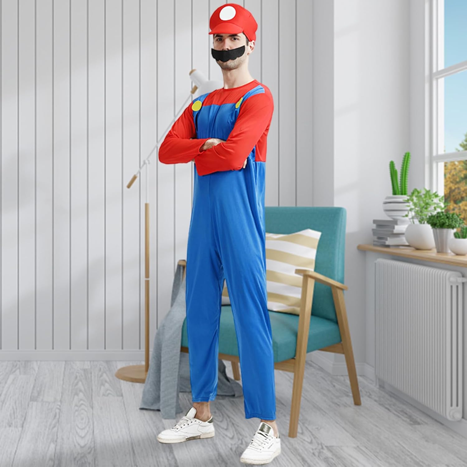 Metaparty Super Bros Costume per Bambino e Adulto,Super Brothers Cosplay Costume Fancy Dress Outfit,Costume Videogiochi Bambini per Halloween Carnevale con Tuta Cappello Barba Guanti