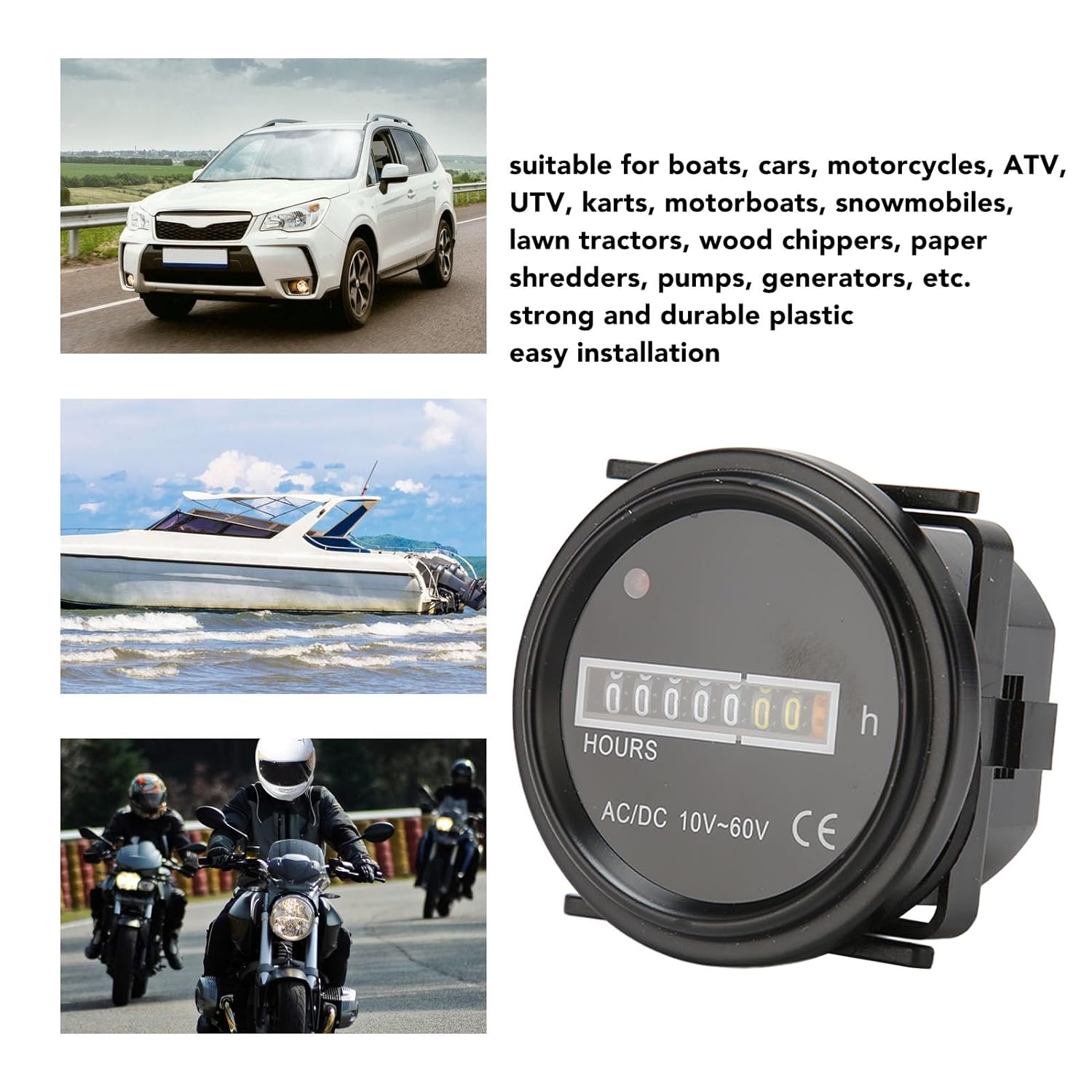 [Tracciamento massimo delle ore] Questo contatore per le ore di barca supporta fino a 99999,9 ore, ideale per il monitoraggio del tempo del motore con precisione industriale. [Elevata precisione] Con dimensioni compatte e alta precisione, questo contatore meccanico è per l'uso 10-60 V CA o DC. [Ampia applicazione] Adatto a una varietà di veicoli tra cui barche, automobili, motociclette e altro, fornendo dati di temporizzazione accurati. [Materiale premium] Realizzato in plastica durevole, questo orame del motore è resistente all'impatto e offre una lunga durata. [Easy Installation] Con una larghezza di 2,4 pollici, questo orario rotondo può essere facilmente installato senza problemi, risparmiando tempo e fatica.