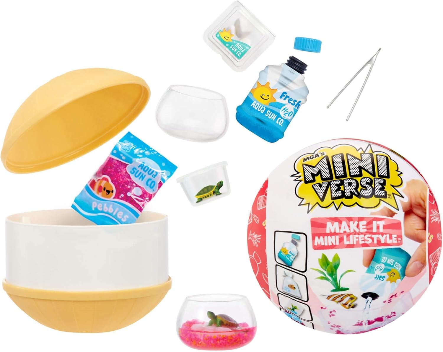 MAKE IT MINI FOOD LIFESTYLE: Il Miniverse di MGA è l'unico mini-oggetto da collezione con cui puoi PREPARARE, ALLESTIRE ed ESPORRE SCOPRI: Ogni palla viene fornita con mini oggetti e accessori per creare mini repliche dei tuoi pezzi preferiti di lifestyle e arredamento! Ogni scatola è una SORPRESA, quindi non saprai quale mini hai fino a quando non l'avrai aperta! PREPARA: Confronta il contenuto della confezione con la guida del collezionista inclusa, per vedere quale mini hai trovato. Segui le istruzioni sul retro per preparare la tua mini creazione CUOCI: Quando la mini creazione è pronta, mettila nel forno con luce UV finché la resina non si indurisce. Poi avrai un oggetto da collezione pronto per essere esposto! ESPONI: Metti il Miniverse da collezione nella capsula che diventa ripiano! COLLEZIONALI TUTTI: Il divertimento non finisce qui! I mini accessori e le confezioni sono carini da collezionare. Dalle mini-repliche di vasi per piante, ghiaia per acquari, cera per candele finte e altro ancora! TANTI MINI LIFESTYLE: Colleziona tutta la Serie 1 di Make It Mini Lifestyle! Visita il Miniverse Store di MGA per acquistare e conoscere tutte le creazioni MAKE IT da collezionare! DISCLAIMER: Gli ingredienti NON sono commestibili.
