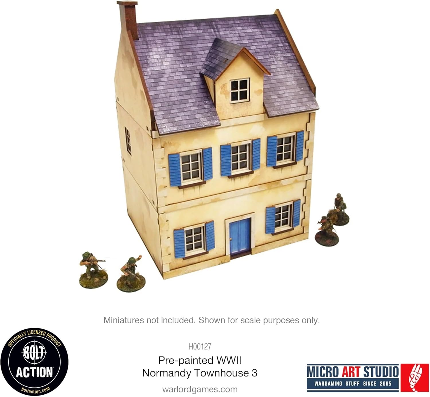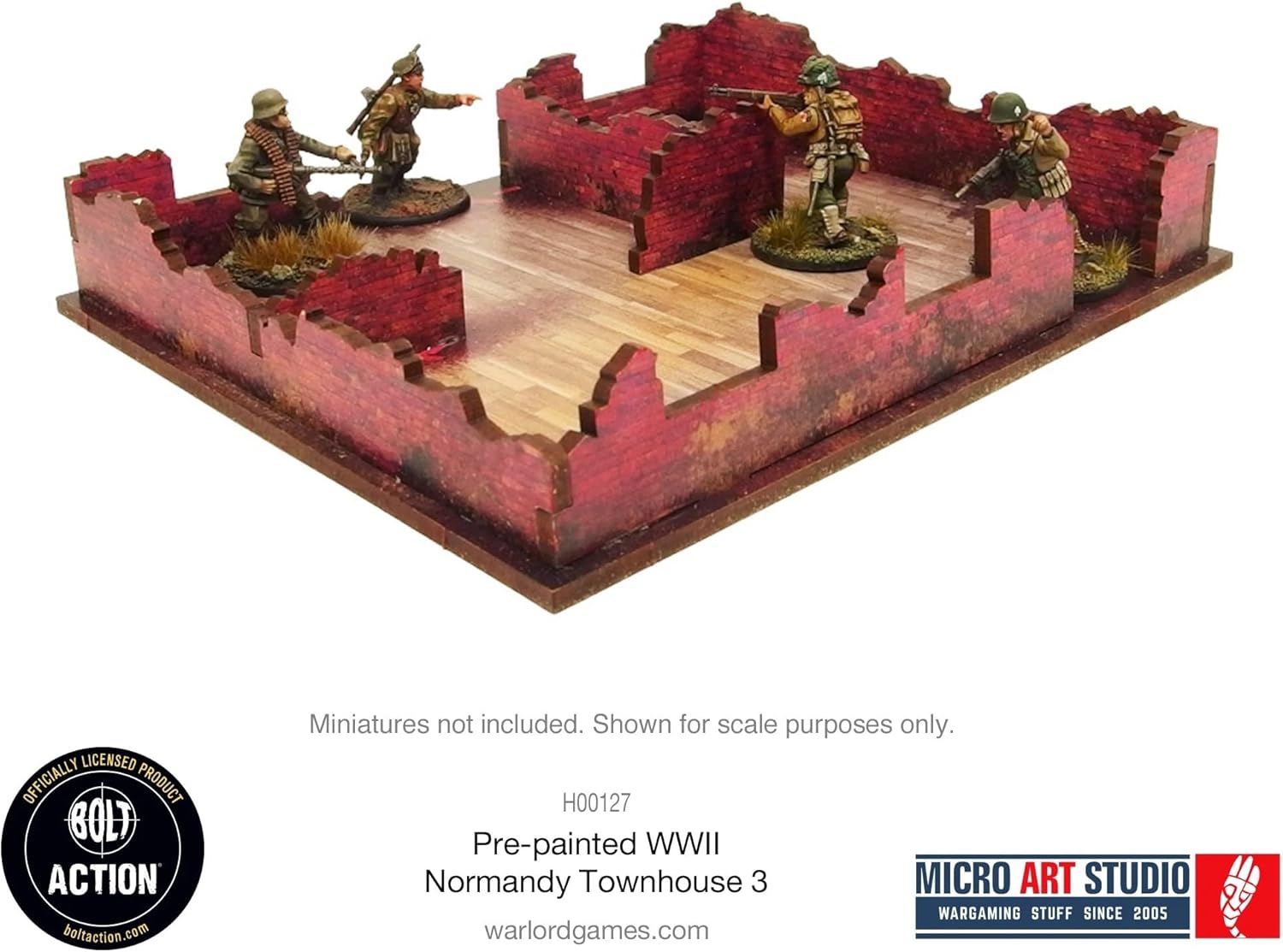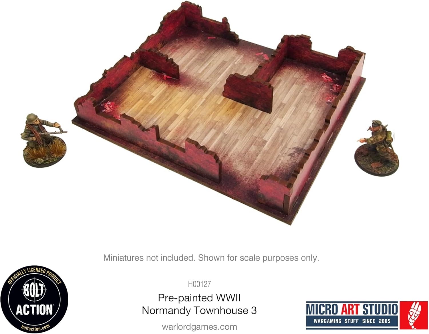 Edificio multicolore preverniciato (stampa UV) 3 livelli WW2 Normandy Townhouse 3 con interni colorati accessibili, livelli rimovibili e piano terra in rovina rimovibile. Questo modello viene consegnato in confezione, smontato e preverniciato. Ogni modello è tagliato da uno o più pannelli di HDF (HDF di fibra ad alta densità) di 3 mm e/o 1,5 mm di spessore. Lo scenario della serie WW2 potrebbe rivelarsi impegnativo da assemblare, parti a secco prima di applicare la colla per evitare errori. Si consiglia la colla PVA (bianca). Scala: 28-30 mm