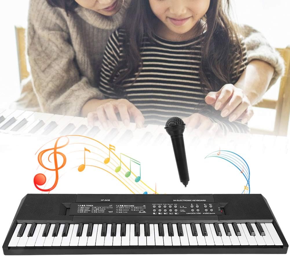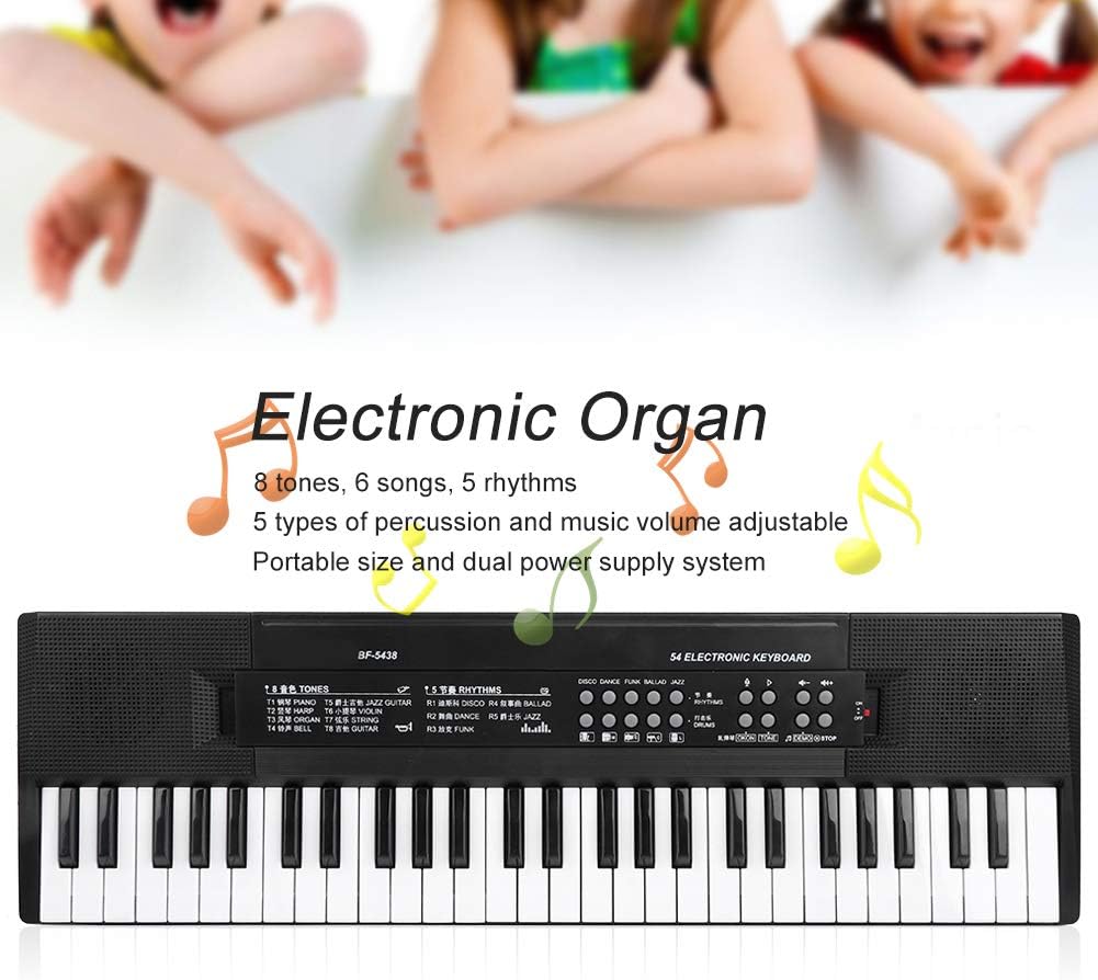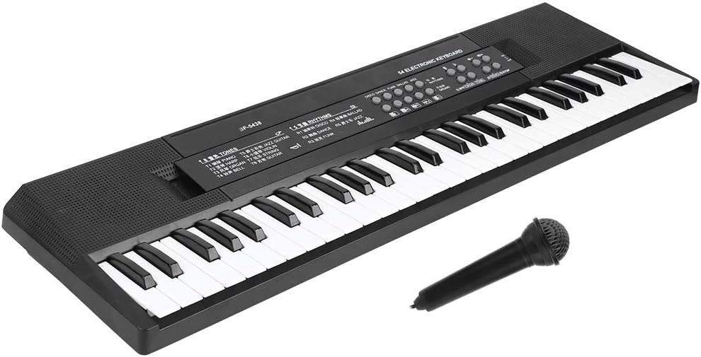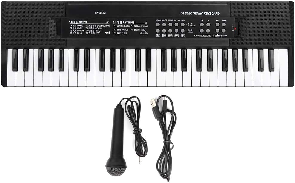 Tastiera per adulti, pianoforte a 54 pulsante per bambini di alta qualità. Questo tasto per pianoforte elettronico portatile è dotato di 88 pulsanti da tastiera completi e altoparlanti stereo a banda larga integrati con un semplice controllo plug-in elettronico in modo da poter suonare una vasta gamma di pianoforte. La tastiera elettronica da 54 buttoni con brillante, facile da trasportare, pulire e mantenerli. Per usarlo in modo sicuro: la tastiera elettronica è costituita da materiale sicuro e rispettoso dell'ambiente che è sicuro da usare e le dita dei bambini non sono ferite. Questa tastiera standard elettronica con 54 tasti utilizza materiali sicuri ed ecologici, artigianato fine, una tastiera MIDI con 25 pulsanti e. Il suono è molto chiaro e scioccante, in modo che i bambini possano sentire la sensazione di musica. di apprendimento integrato: la nostra tastiera musicale per i principianti è avanzata. Questo pianoforte a tastiera multifunzione ha 54 tasti, la tastiera ha 8, una tastiera MIDI, 6 canzoni, 5 ritmi, 5 percussioni e volume musicale. Offre una sensazione tradizionale per il piano o l'organo per l'apprendimento e un'esperienza acustica entusiasmante. Varietà del suono: questa tastiera per pianoforte elettronica portatile ha 54 pulsanti tastiera completa e altoparlanti stereo a banda larga integrati con semplice controllo plug-in elettronico in modo da poter riprodurre una vasta gamma di pianoforte