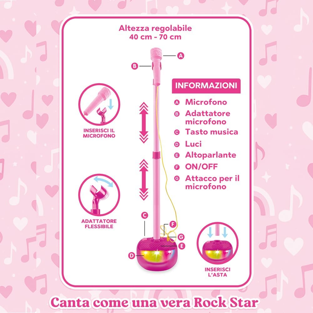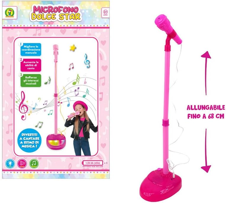 Tipo di prodotto: strumento musicale Dimensioni: asta allungabile fino a 68 cm Funzionamento: batterie 3 stilo AA (non incluse) Materiale: plastica Età consigliata: 3+