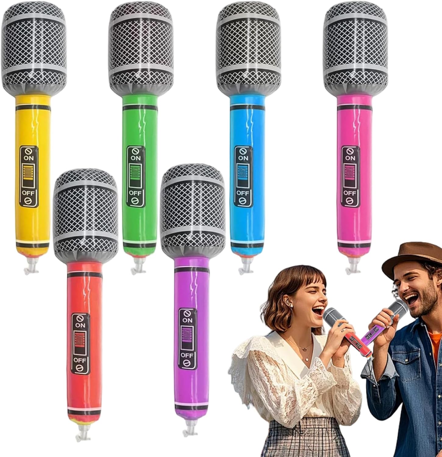Accensione e divertimento: i colori vivaci e il design realistico di questi microfoni gonfiabili attireranno sicuramente l'attenzione e aggiungeranno un tocco giocoso alle decorazioni del tuo partito..Fanno eccellenti antipasti di conversazione e migliorano l'atmosfera generale della festa. Facile da gonfiare e conservare: ogni microfono si gonfia rapidamente con solo pochi respiri, rendendo la configurazione un gioco da ragazzi..Quando non sono in uso, si sgonfiano facilmente e possono essere archiviati in modo compatto, risparmiando spazio nella raccolta delle forniture del tuo partito. Perfetti per le feste: questi microfoni Blow-Up in PVC da 6 pezzi da 13 pezzi sono ideali per feste a tema da concerti musicali, aggiungendo elementi divertenti e interattivi a qualsiasi celebrazione..Il design vibrante e la forma realistica li rendono perfetti per oggetti di scena fotografici o spettacoli teatrali. Robusto e leggero: realizzato in materiale in PVC, questi microfoni gonfiabili sono ancora leggeri..Possono resistere a più usi senza strappare o perdere forma, garantendo un divertimento duraturo per gli ospiti della tua festa. PROPEGGI DI PARTY versatili: che tu stia ospitando una serata di karaoke, una festa di compleanno a tema musicale o un evento in stile, questi microfoni gonfiabili sono oggetti di scena versatili che soddisfano vari temi e attività della festa.