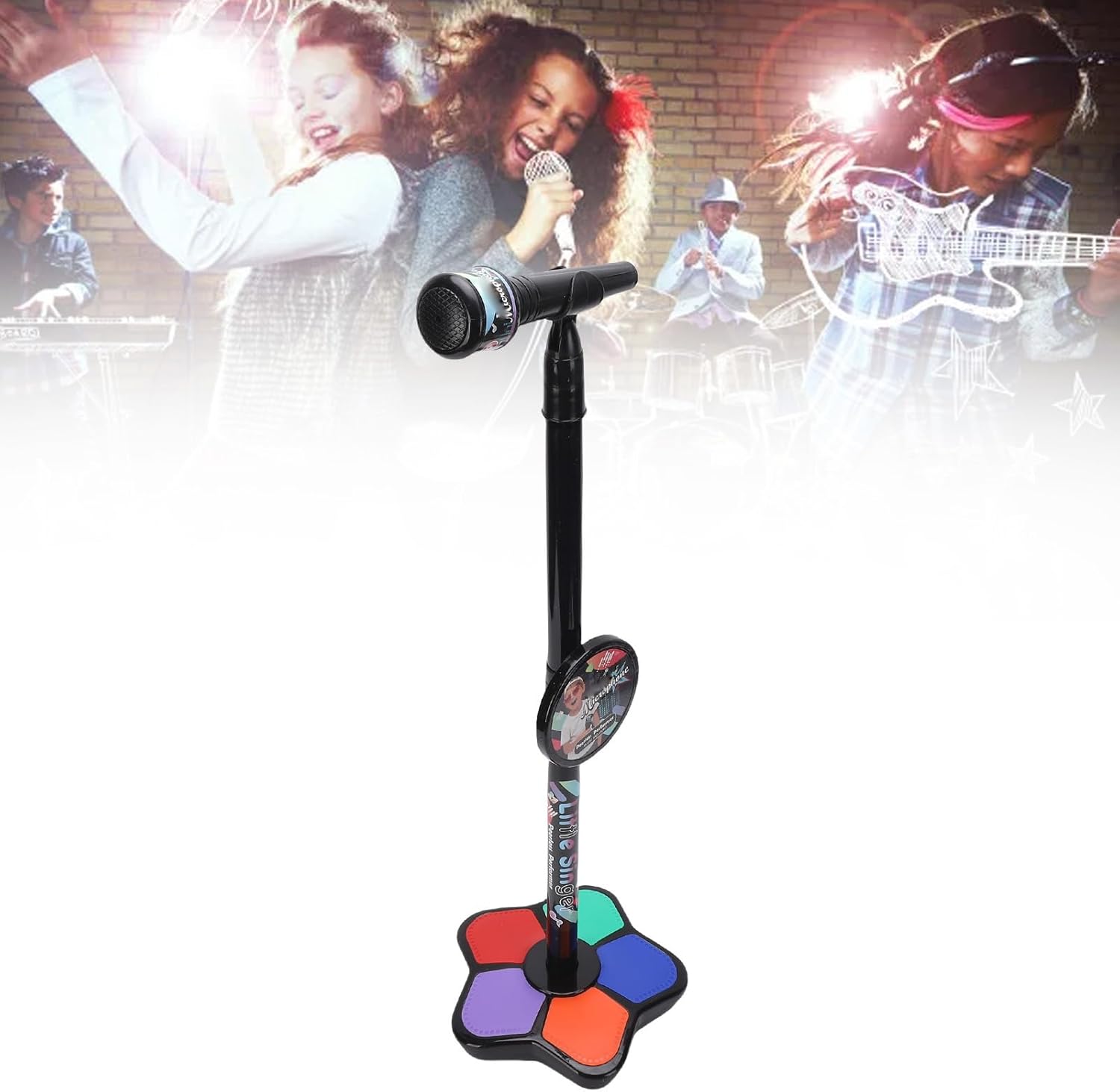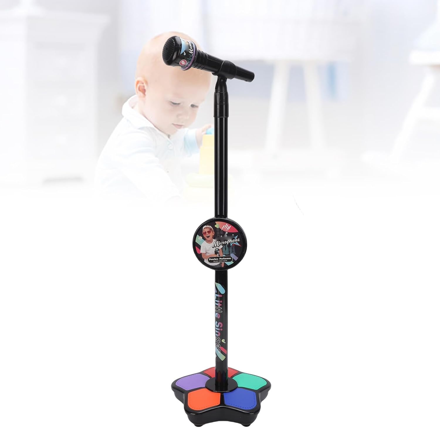 [Effetti di luce colorati] Questo microfono per bambini ha luci colorate lampeggianti che si sincronizzano con la musica, creando un'atmosfera coinvolgente. [Multifunzionalità] Dotato di canzoni integrate ed effetti sonori divertenti come gli applausi, ispira creatività e interesse musicale nei bambini. [Suono di alta qualità] Dispone di un altoparlante premium integrato per un suono chiaro, migliorando l'esperienza di e ascolto senza distorsioni. [Design ergonomico] Progettato su misura per le mani dei bambini, questo microfono è facile da impugnare, comodo da usare e realizzato in robusto materiale ABS antigoccia. [Funzionamento intuitivo] Semplice da utilizzare con i pulsanti per la selezione del brano, la regolazione del volume e il controllo della luce, perfetti per l'uso dei bambini.