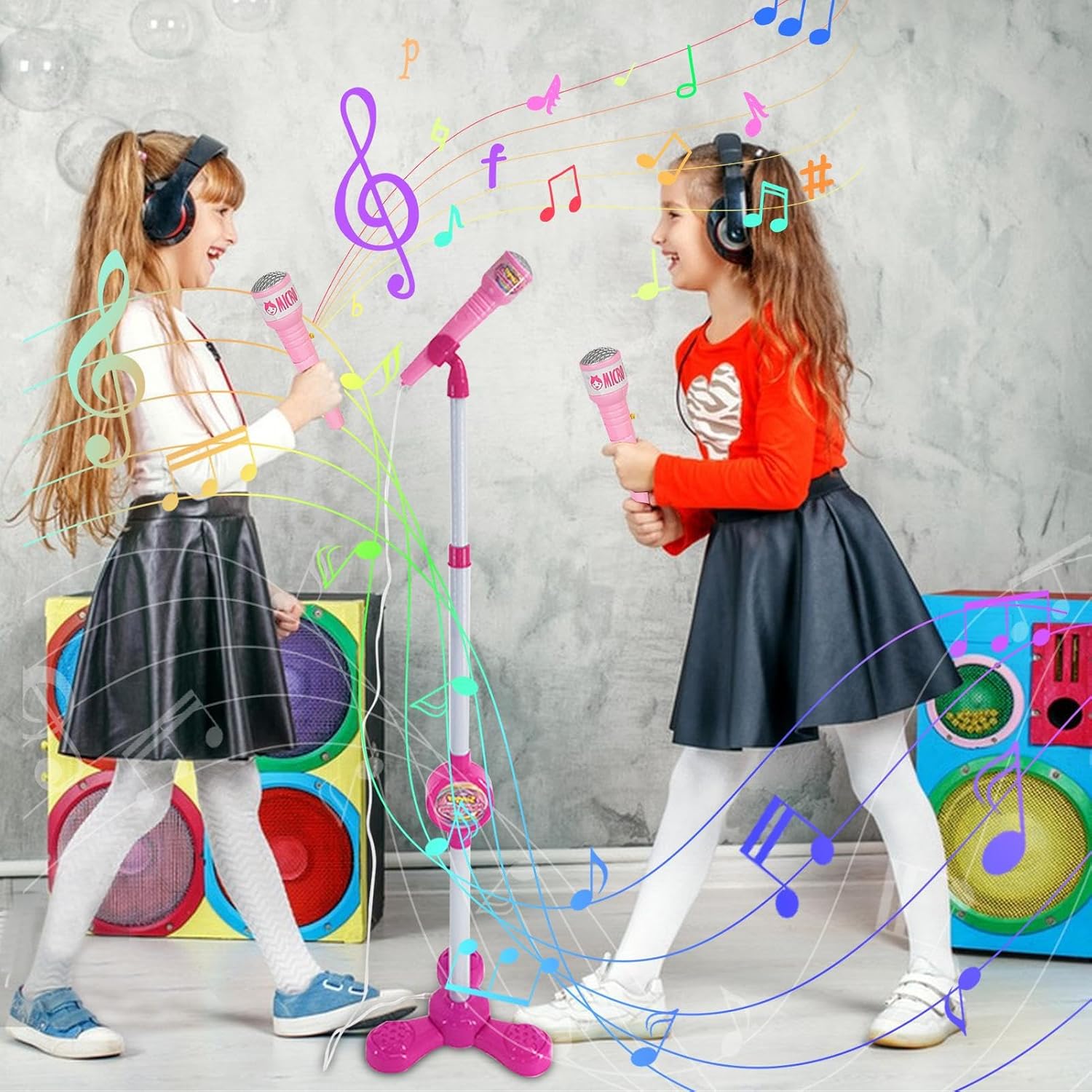 Raccolta di divertimento: con questo supporto per microfono meravigliosamente progettato per i bambini, puoi rendere memorabile ogni raccolta. È facile da allestire, assicura ore di gioco con gli amici ed è per coloro che amano cantare e ballare. L'aggiunta ideale a qualsiasi occasione speciale Funzione di collegamento: si collega al cellulare per espandere la selezione delle canzoni, consentendo ai bambini di cantare con canzoni preferite mentre una musica deliziosa senza limiti. connesso e canta all'aperto con la funzione di connettività del microfono Stand, perfetta per il viaggio e il gioco all'aperto Facile da usare: usa come palcoscenico per amplificare il gioco di canto di tuo figlio. Tenere o rimuovere dallo stand è facile per un'azione semplice e divertente che migliora il loro divertimento di canto. Rilascia la loro superstar interiore con questo supporto per microfono facile da usare Presente pratico: stimola l'immaginazione di tuo figlio con un supporto per microfono sonoro colorato e realistico, rendendolo un regalo per vacanze, Halloween, Natale e compleanni. Ideale per il gioco creativo, facile da usare e sicuro di sorprendere le bambine, è un ottimo modo per intrattenere i tuoi piccoli artisti Base robusta: i tuoi giovani artisti adoreranno l'affascinante design di questo microfono per bambini. Realizzato con colori vivaci e costruito con materiale PP robusto, fornisce un supporto divertente e stabile per le loro esibizioni, sostenuta da una costruzione robusta che può resistere a un uso regolare