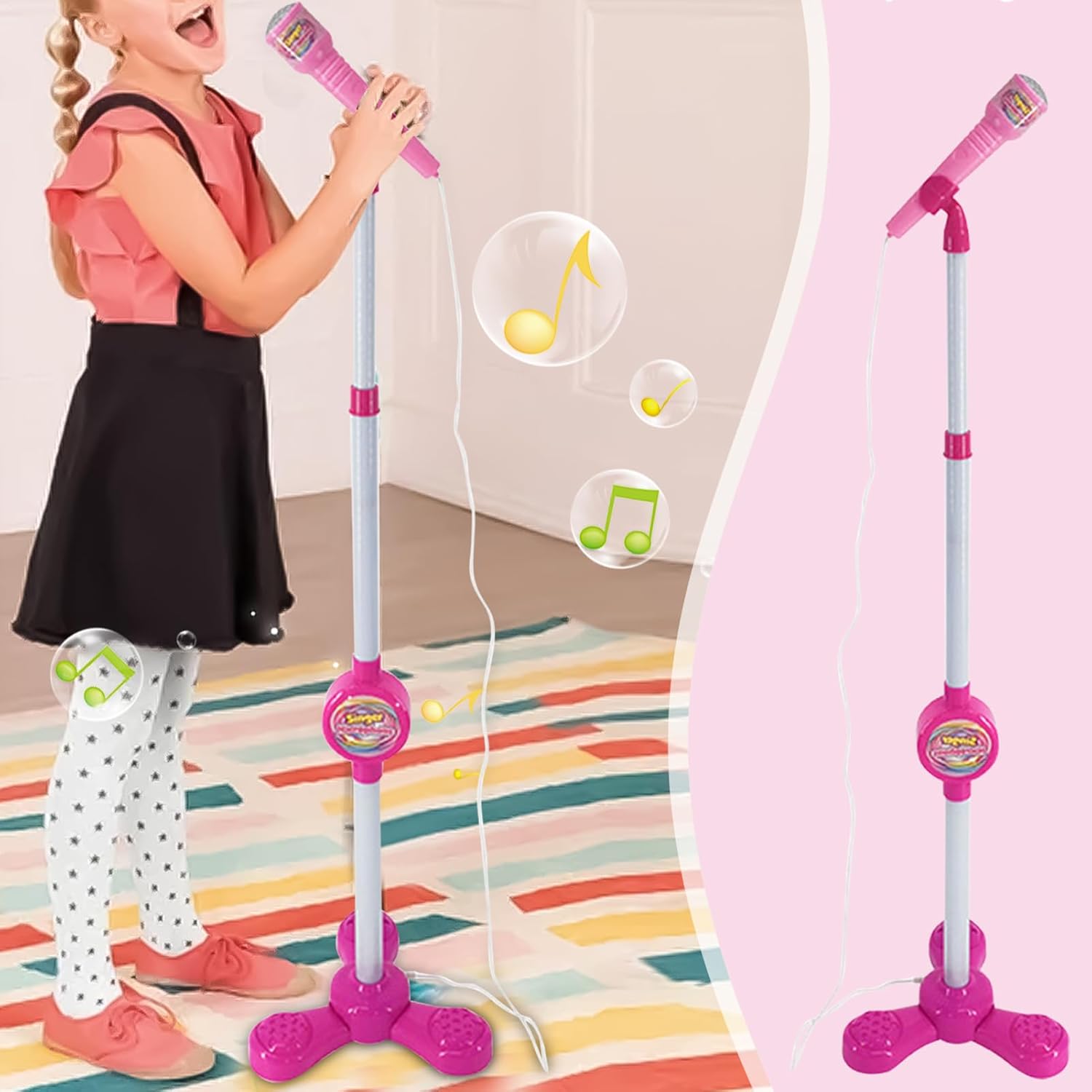 Raccogliere il passatempo: consenti ai tuoi bambini di divertirsi a cantare e ballare con gli amici. Questo supporto per microfono dal design meravigliosamente è facile da configurare e assicura ore di divertimento. L'accessorio per rendere memorabile ogni raccolta Capacità di allegato: espande la selezione delle canzoni di tuo figlio connettendosi al cellulare e ai dispositivi, permettendo loro di cantare con brani preferiti mentre la musica deliziosa al massimo. Stand per microfono intuitivo: aiuta tuo figlio a rilasciare la propria superstar interiore con questo microfono facile da usare per i bambini. Sia tenuti in mano o rimossa dallo stand, la semplice azione aggiunge una nuova dimensione alla loro esperienza di canto, trasformandola in una performance simile a un palcoscenico che è semplice e divertente. Presente premuroso: tuo figlio adorerà il suono realistico e il design colorato di questo supporto per i microfono per i bambini, rendendolo il regalo per vacanze, Halloween, Natale e compleanni. Facile da usare e ideale per il gioco creativo, è sicuro di farli intrattenere per ore e ore Costruzione robusta: questo microfono per bambini è realizzato con materiale PP robusto che garantisce durata e longevità. L'affascinante design presenta colori vivaci, che si aggiungono all'esperienza divertente per i giovani artisti, mentre la base robusta assicura ogni volta stand di prestazioni stabile