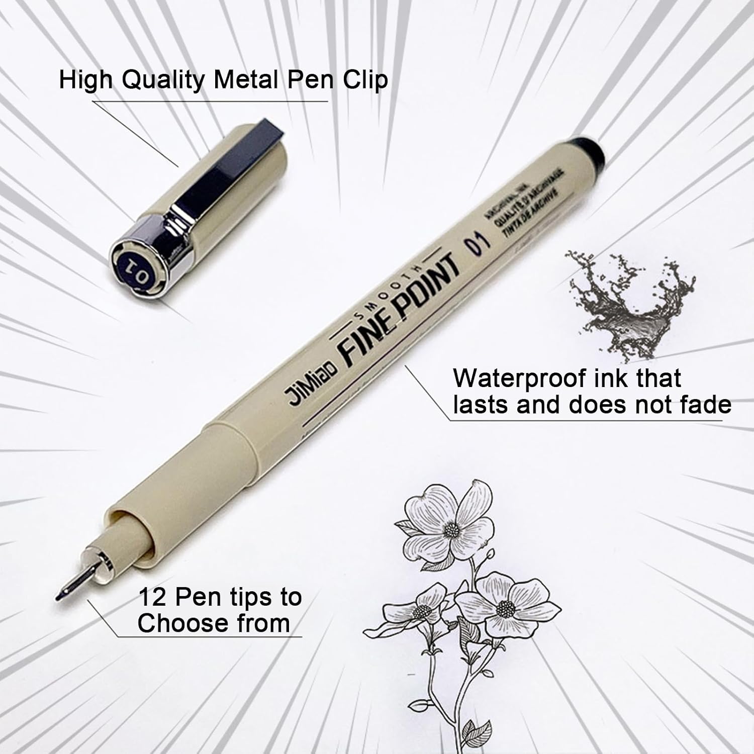 SET DI PENNE VERSATILI E UNICHE: set con 12 penne nere a punta fine in 12 diverse larghezze di tratto, tra cui 8 penne a stilo avanzate per il disegno fine (0,05 mm/0,1 mm/0,2 mm/0,3 mm/0,4 mm/0,5 mm/0,7 mm/0,8 mm), 3 pennarelli a punta fine per il contorno (1 mm/2 mm/3 mm) e 1 penna a pennello per la colorazione e la calligrafia. Pennello per colorare e calligrafare. IMPERMEABILE: queste penne sono state progettate per essere impermeabili, il che le rende ideali per i progetti di disegno che richiedono proprietà impermeabili. Ciò significa che le linee non verranno dissolte o sbavate dall'acqua quando si colora o si applicano gli acquerelli. PROGETTATA PER UNA SCRITTURA LISCIA: ogni penna fineliner Micron è stata accuratamente progettata per garantire che scivoli senza sforzo sulla carta e offra un'esperienza di scrittura eccellente. La punta miniaturizzata è realizzata in acciaio inossidabile di alta qualità, per garantire una scrittura scorrevole e senza interruzioni e una lunga durata su qualsiasi carta. QUALITÀ E SICUREZZA: ogni penna fineliner Micron è realizzata con cura per garantire all'utente un'esperienza eccellente durante l'uso. Il pennino è realizzato in acciaio inossidabile di alta qualità, che non si piega facilmente e consente una scrittura uniforme e liscia senza doversi preoccupare di spazi vuoti o irregolarità tra le linee. USO VERSATILE: I fineliner Micron sono versatili e adatti a tutti, sia in studio che a scuola o in ufficio. Queste penne non sono adatte solo per scrivere, disegnare, colorare, progettare e disegnare, ma anche per schizzi, cartooning e altri progetti creativi. La loro flessibilità e versatilità le rendono uno strumento completo per ogni esigenza di disegno.