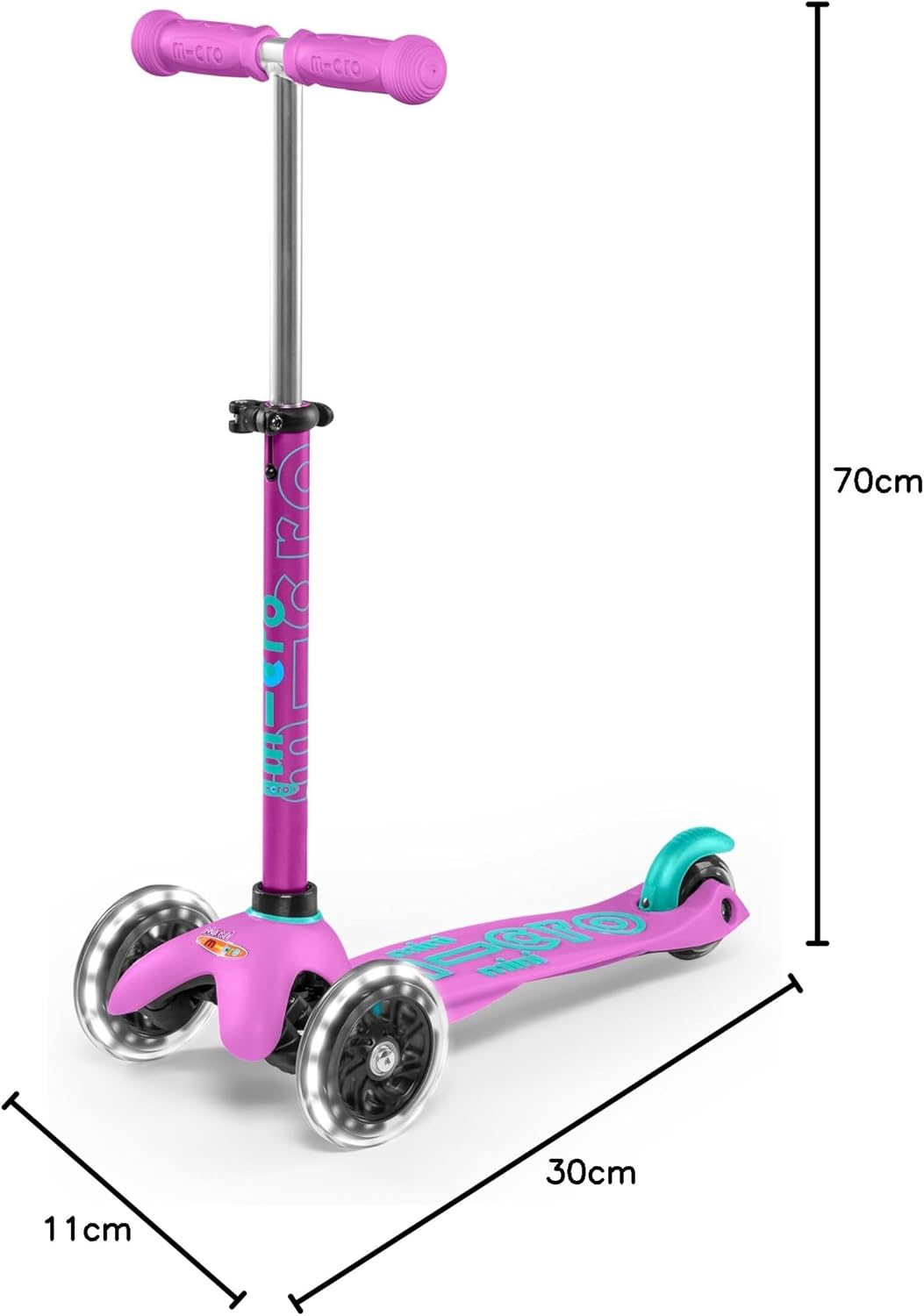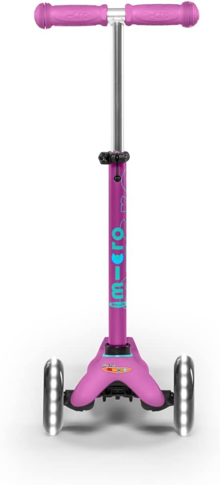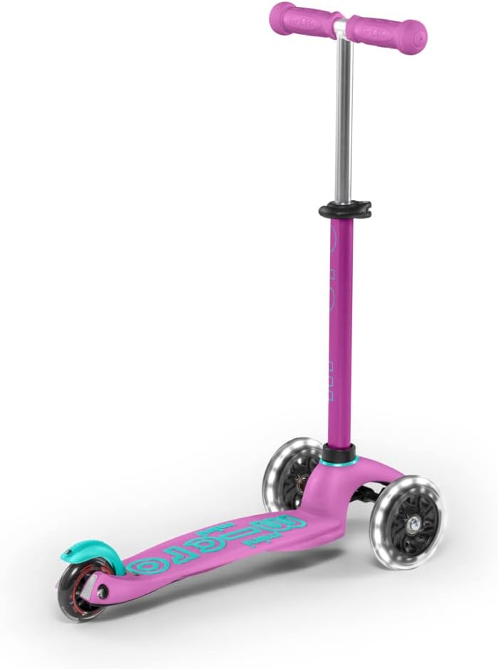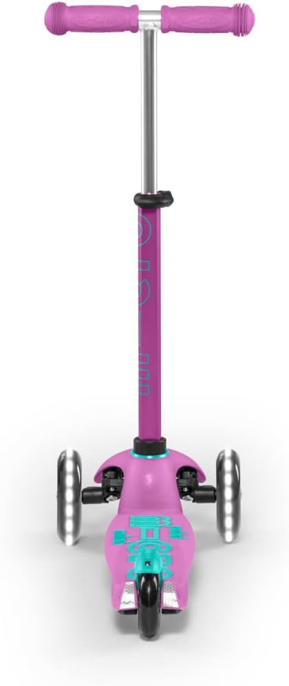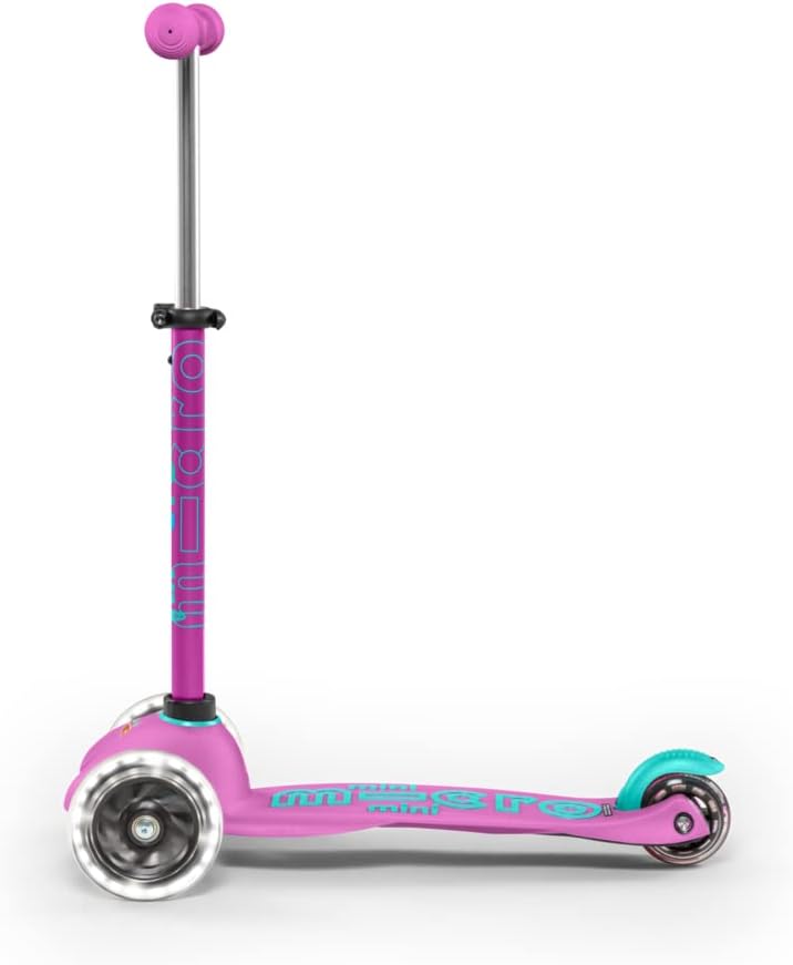 Mini Micro Deluxe, l'originale. Sviluppato da Micro in collaborazione con pediatri per sviluppare le capacità motorie del bambino durante il gioco e il divertimento. 2-5 anni Peso: 1,95 kg. Carico massimo: 50 kg. Altezza da 48 a 68 cm. Ruote anteriori con illuminazione LED bianca. La pedana antiscivolo è leggermente flessibile per assorbire parte degli urti della strada, tornando dopo l'uso alla posizione originale e, sebbene sia estremamente resistente, non lascia spigoli vivi in caso di rottura. I cuscinetti ABEC9 consentono allo scooter di scivolare meglio di tutti gli altri scooter per bambini, il che si traduce in maggiore sicurezza e divertimento. Il sistema brevettato "tilt and turn" girevole di Micro è progettato per rendere l'apprendimento più confortevole e intuitivo e guidare più sicuro. Impugnature antiscivolo di alta qualità (soft touch) con finitura arrotondata in materiali atossici. Il freno posteriore è progettato in modo che la ruota non si usura o si riscaldi evitando possibili ustioni e prolungandone la durata. Include due chiavi a brugola per la manutenzione. Garanzia 2 anni. Prodotto di lunga durata che resiste all'uso e al passare del tempo. Il produttore garantisce la disponibilità di tutti i tipi di pezzi di ricambio per almeno 10 anni dopo l'acquisto.